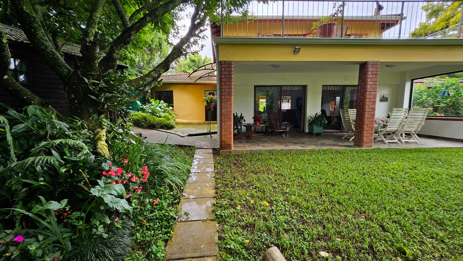 The oversized master bedroom on the upper level boasts a full en suite bathroom, lounge area, ample closet space, and a large open balcony with magnificent views of the parklike garden. On the lower level, you'll find the remaining bedrooms, one with an en suite bathroom.