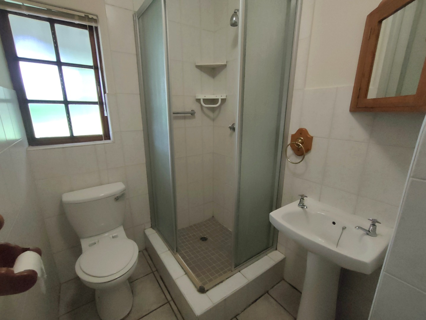 Featuring three bedrooms, all with built-in cupboards. The main bedroom includes an air conditioner, ceiling fan, and ensuite bathroom, while a second family bathroom serves the remaining bedrooms.
