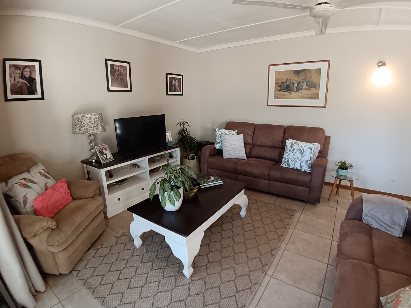 The heart of the home is a large open-plan lounge and dining area that flows effortlessly onto a sunny courtyard – a wonderful spot for relaxing. The kitchen, fitted with an eye-level oven and electric hob, is well-designed for everyday living and is supported by a handy storeroom and domestic loo.