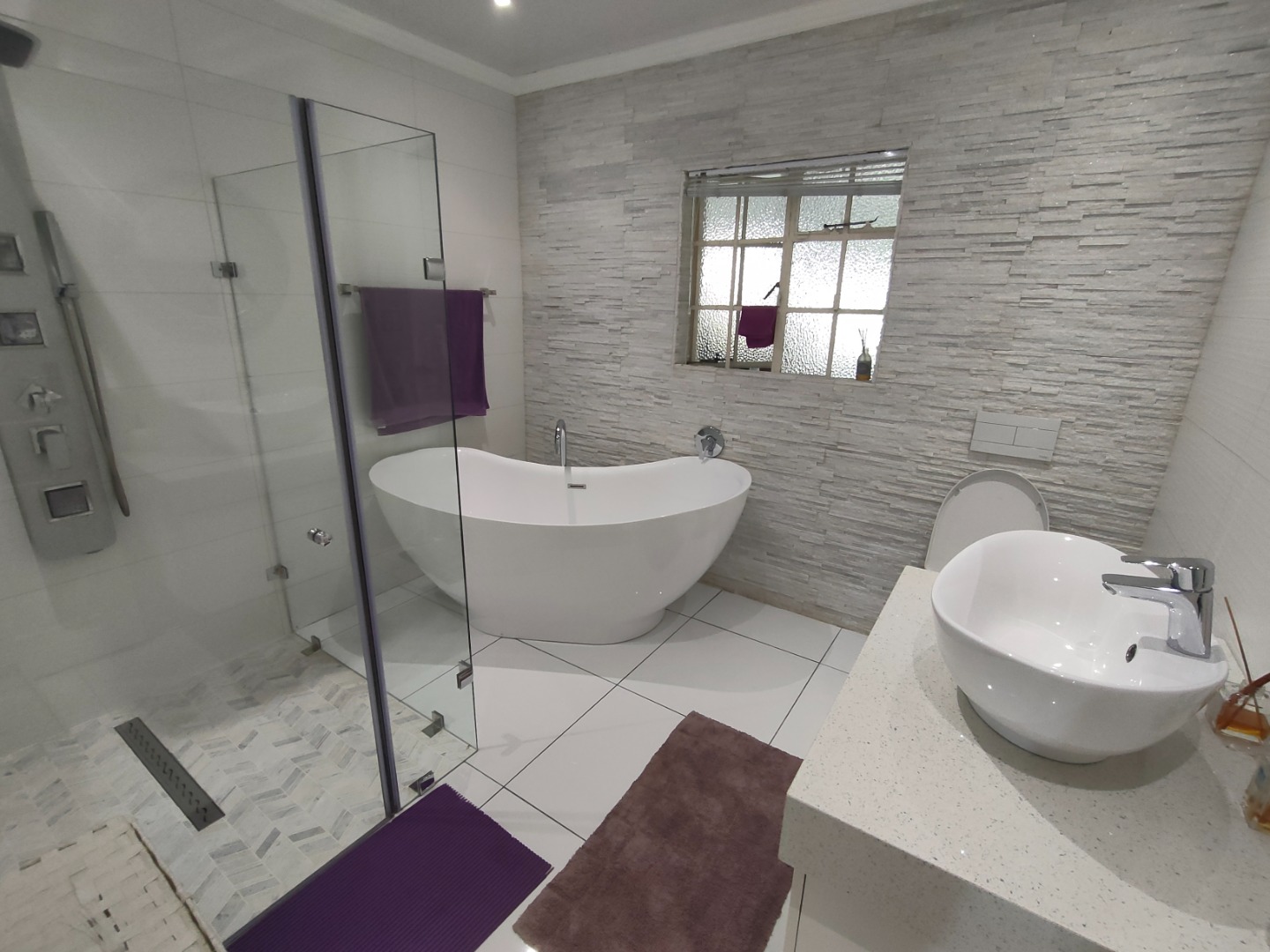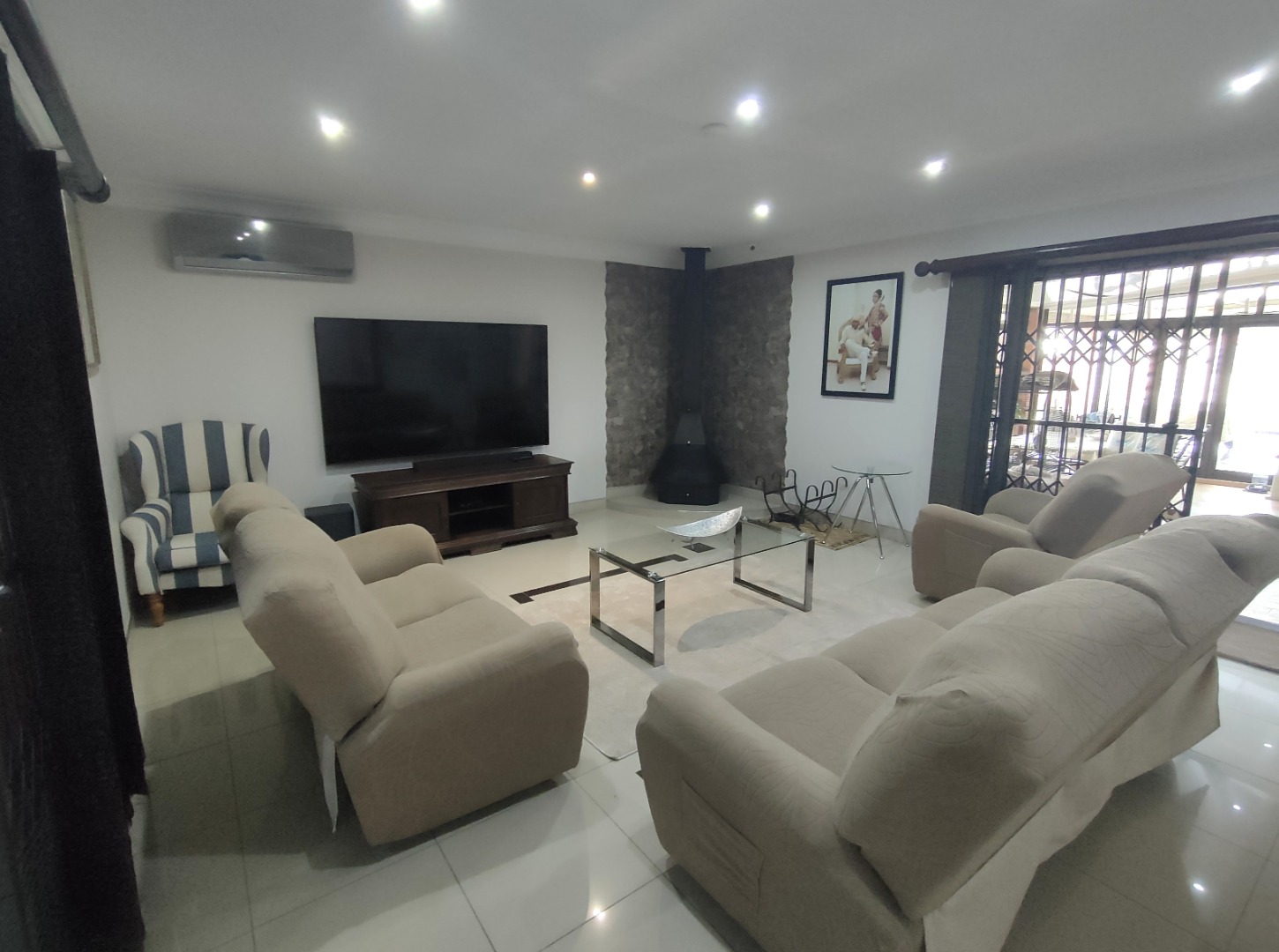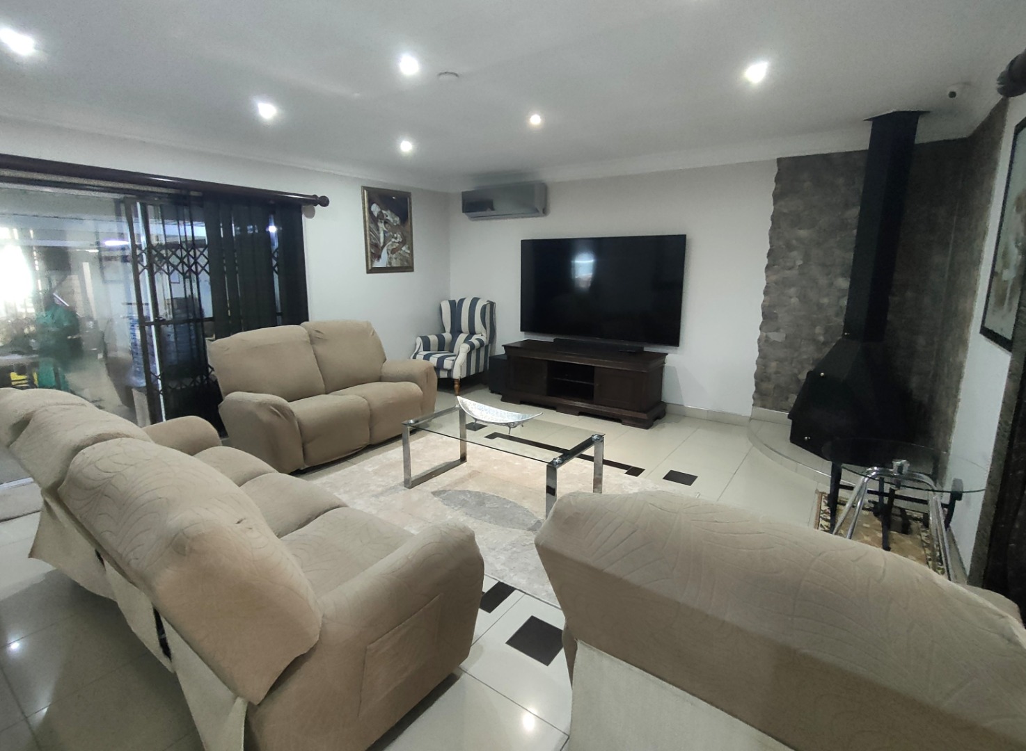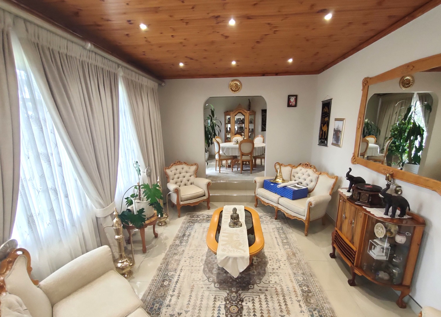 Living spaces include a formal tiled lounge, a separate dining room leading into an immaculate, well-appointed kitchen, and a spacious family room that forms the heart of the home, complete with a fireplace. This area flows onto a large enclosed veranda with a built-in braai, ideal for year-round entertaining.