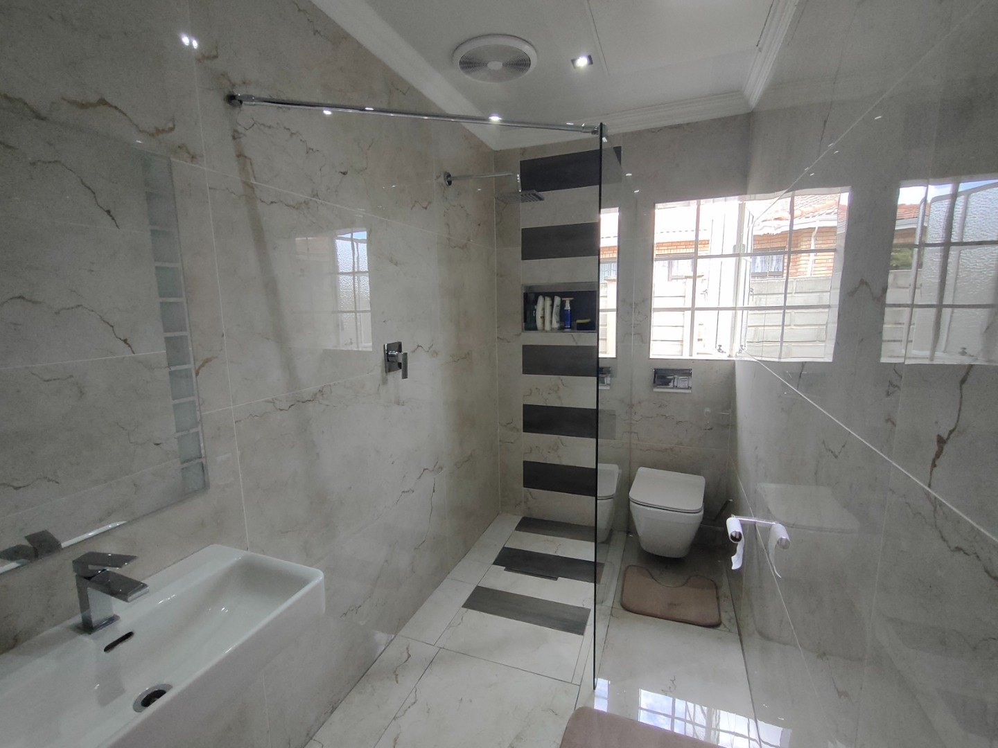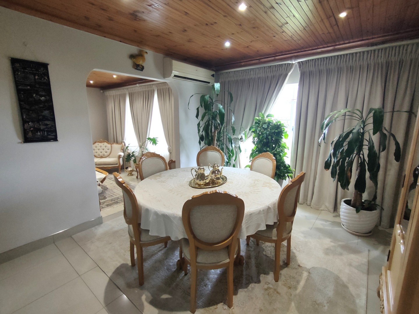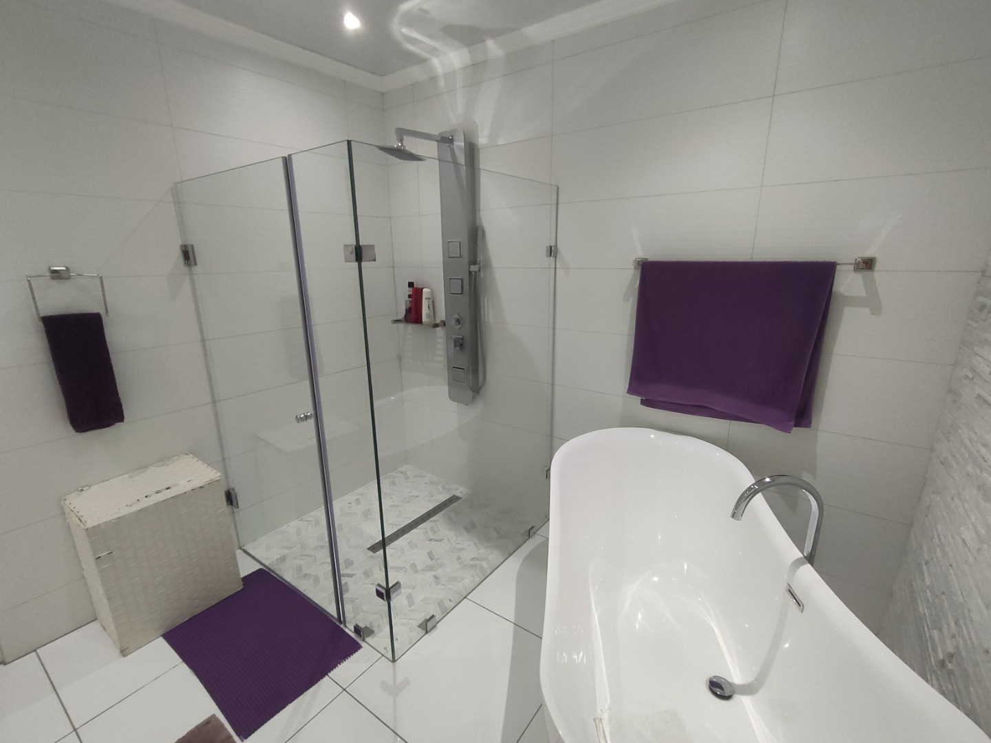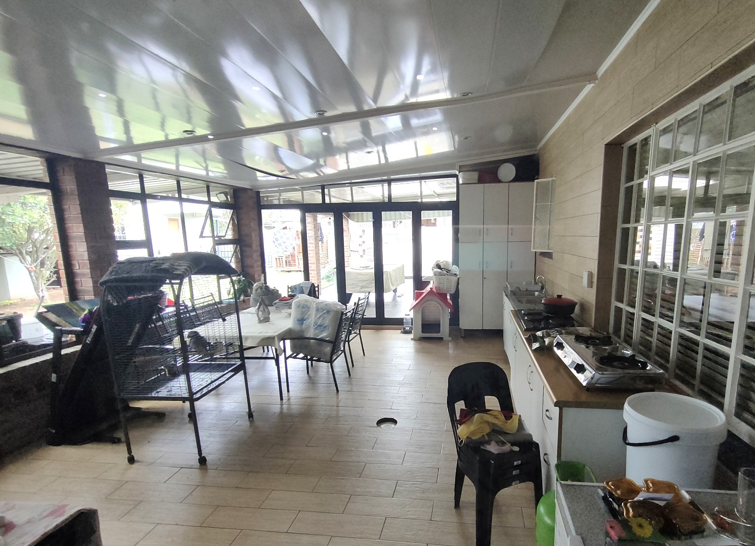Living spaces include a formal tiled lounge, a separate dining room leading into an immaculate, well-appointed kitchen, and a spacious family room that forms the heart of the home, complete with a fireplace. This area flows onto a large enclosed veranda with a built-in braai, ideal for year-round entertaining.