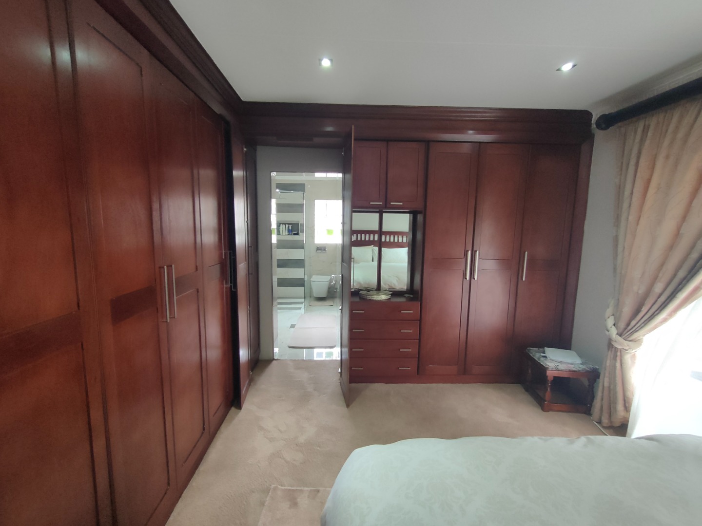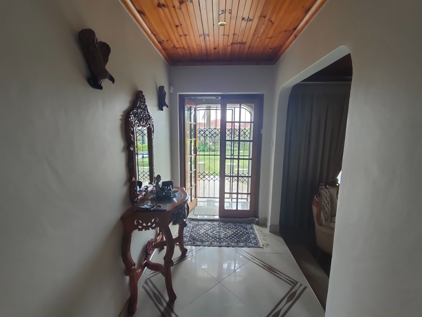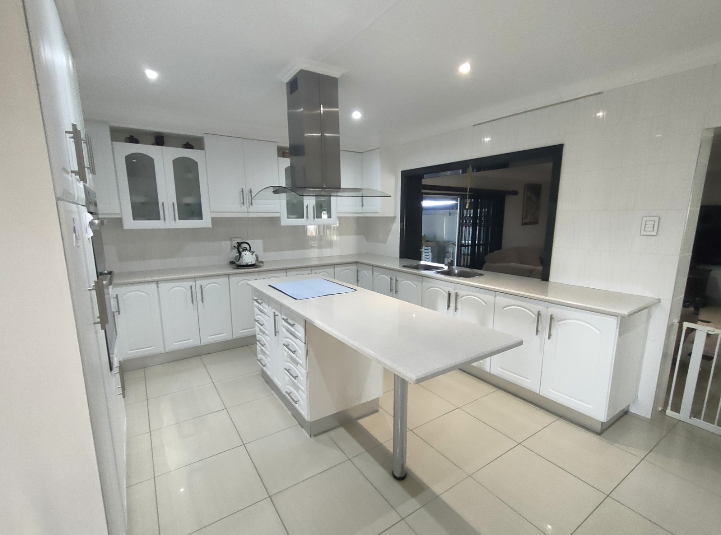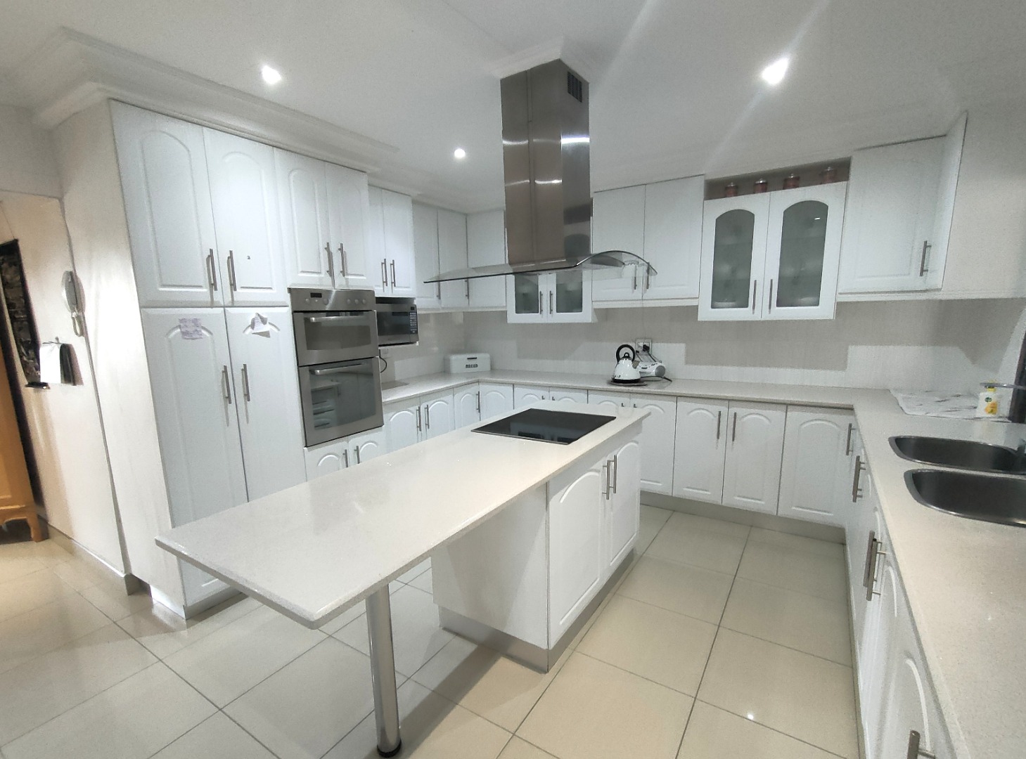 Living spaces include a formal tiled lounge, a separate dining room leading into an immaculate, well-appointed kitchen, and a spacious family room that forms the heart of the home, complete with a fireplace. This area flows onto a large enclosed veranda with a built-in braai, ideal for year-round entertaining.