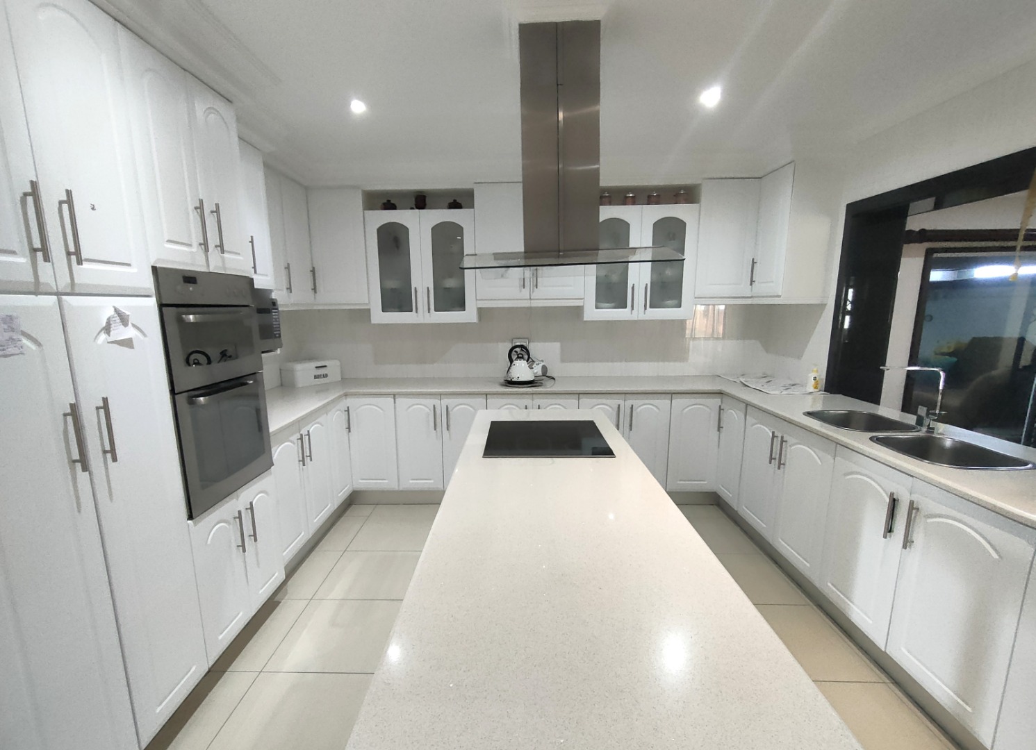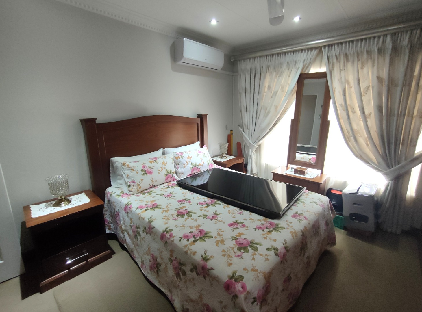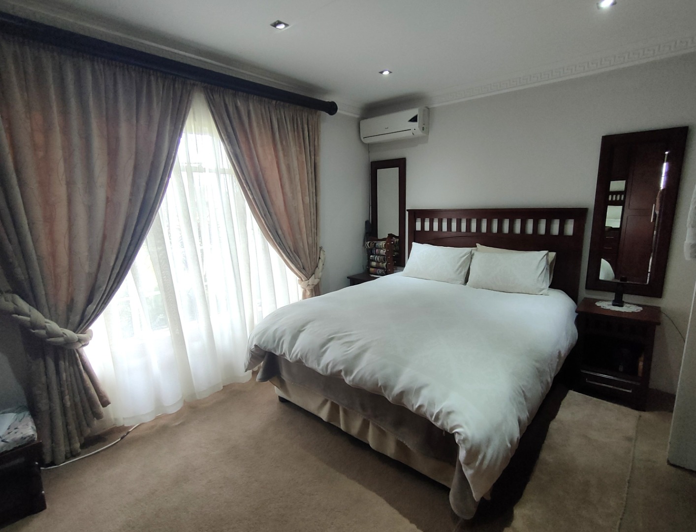 Inside, you’ll find three well-appointed bedrooms, each fitted with air-conditioning and generous built-in cupboards. The main bedroom includes its own ensuite bathroom, complemented by a separate family bathroom. A dedicated prayer room or study adds valuable flexibility.