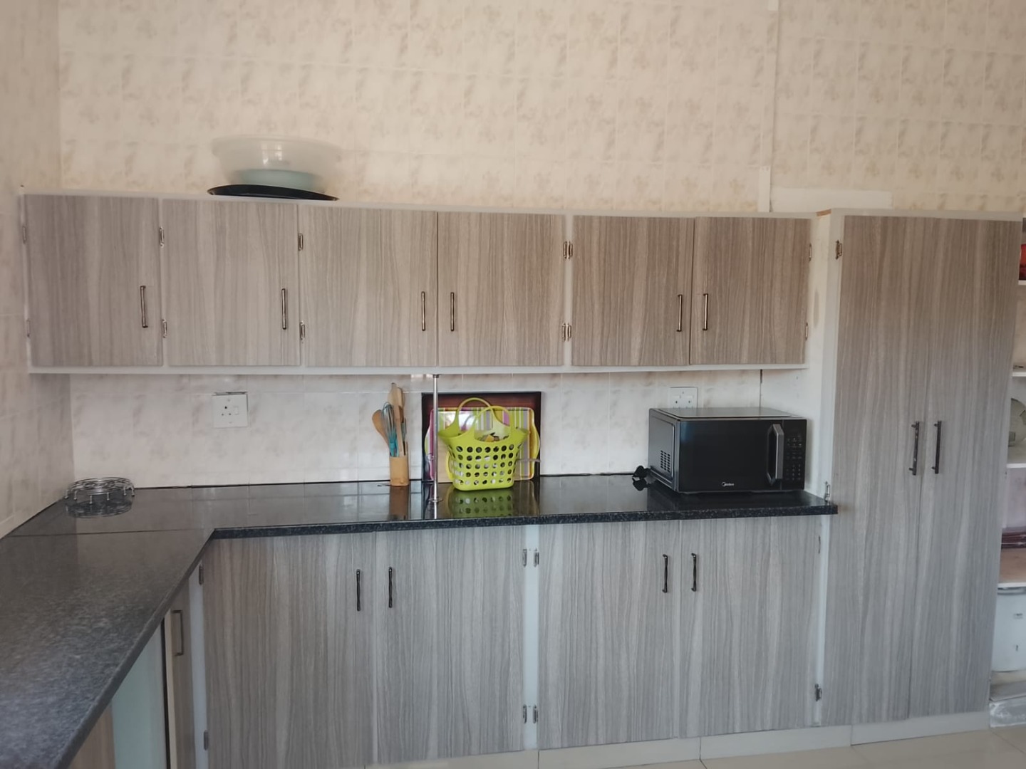 The property is neat and move-in ready, just waiting for its new owner to occupy it. The kitchen is generously sized and fitted with built-in cupboards all around, providing ample storage space for all your kitchen essentials.