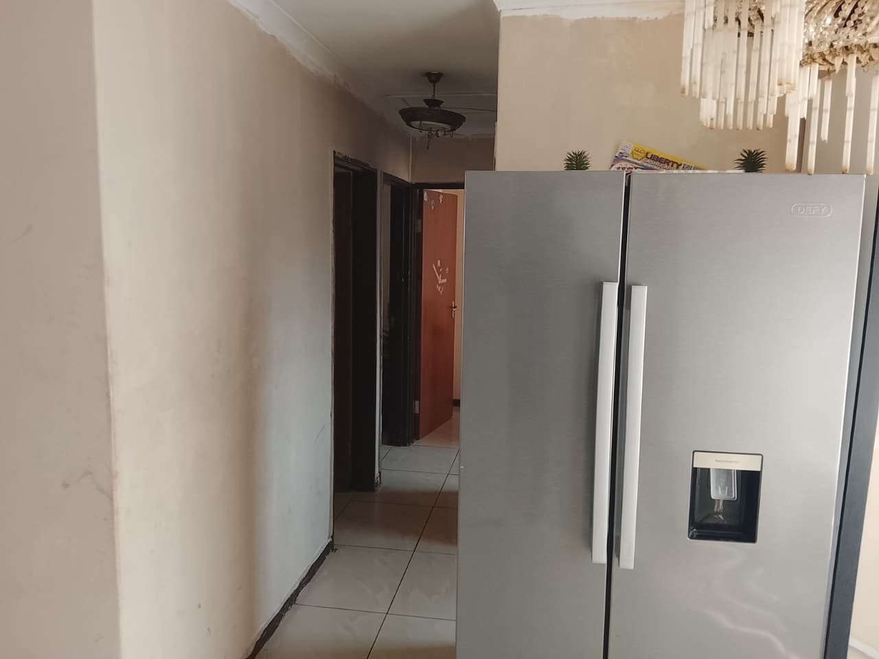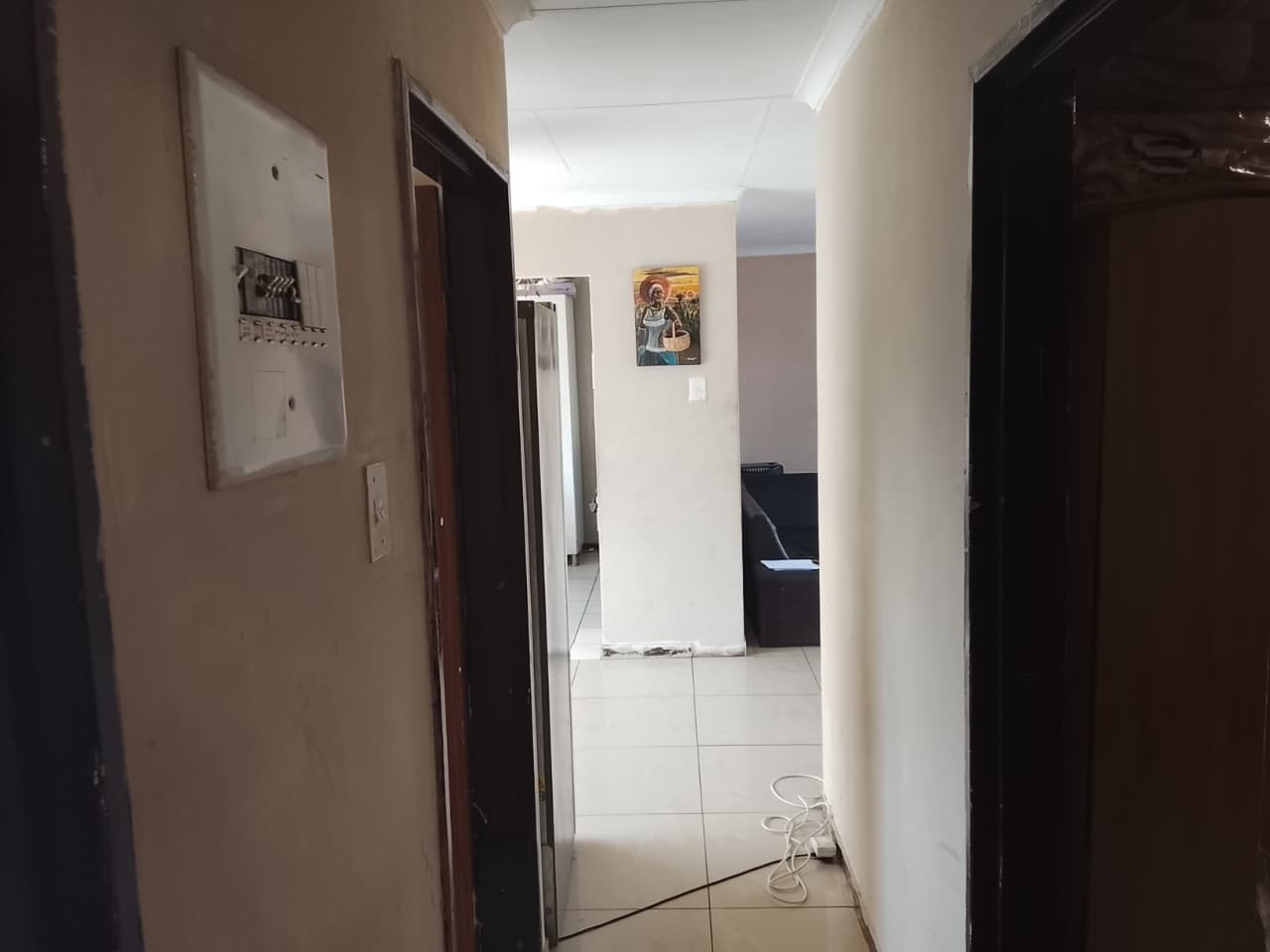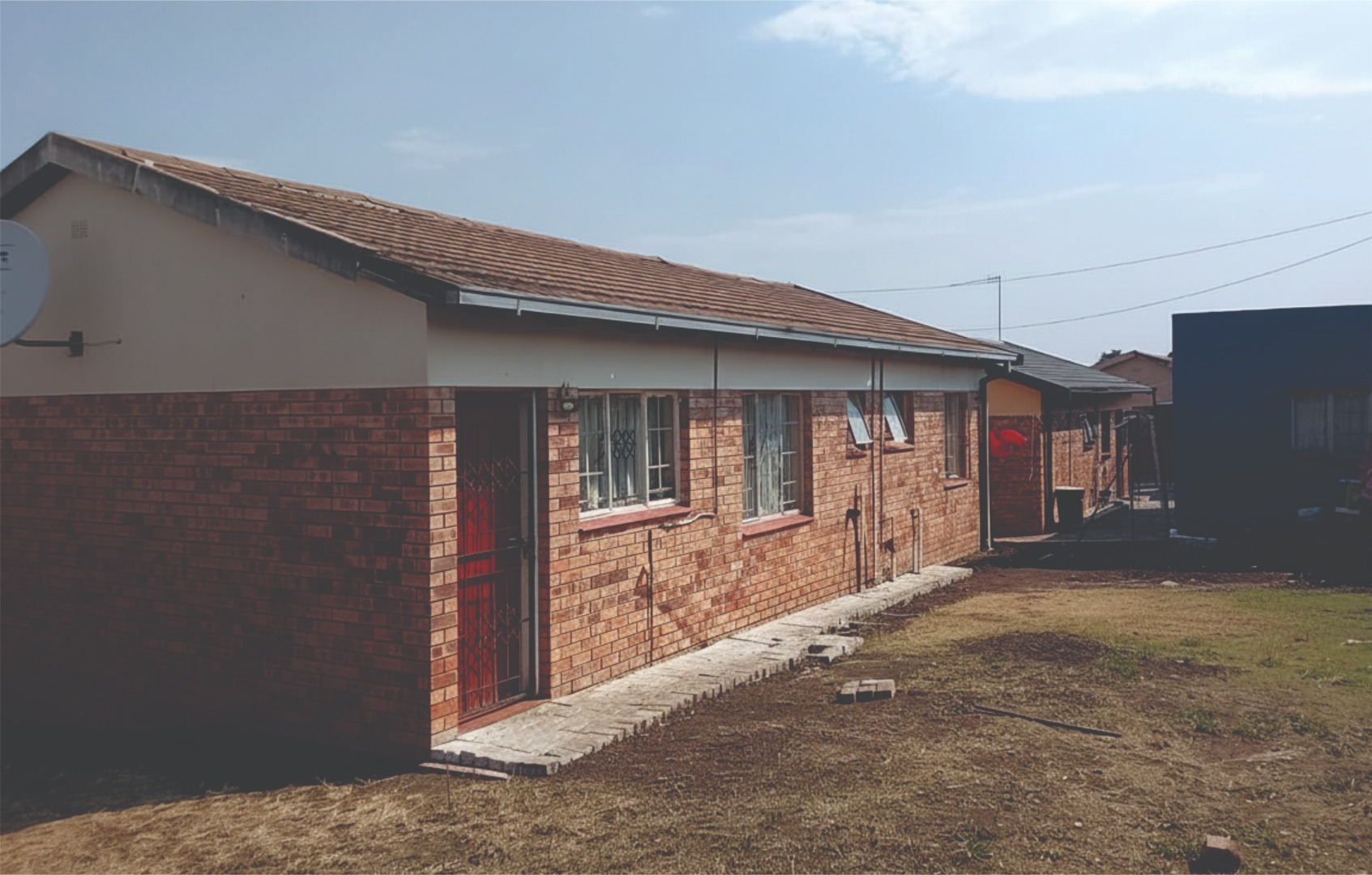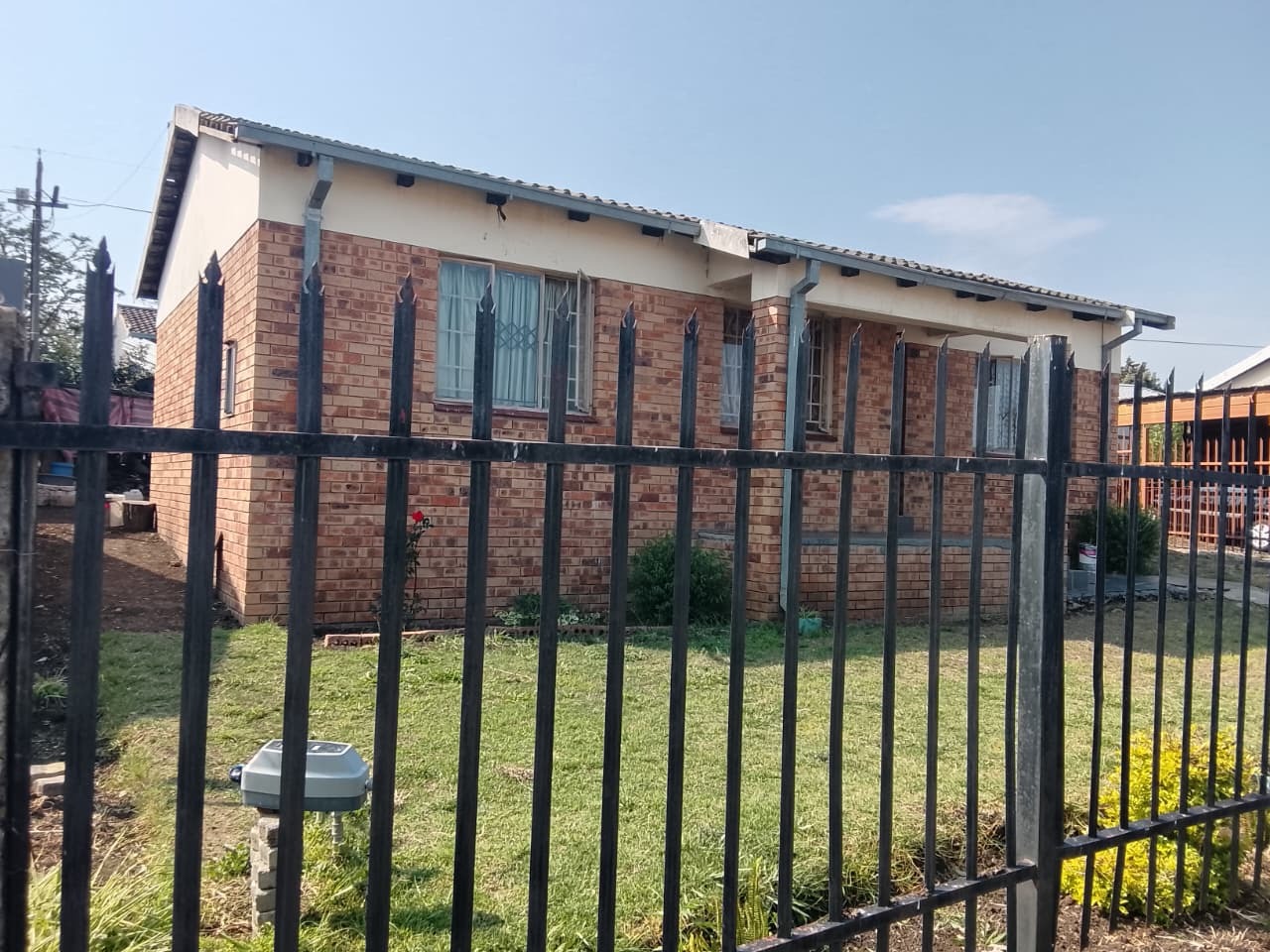 This charming home features 3 well-sized bedrooms, two with built-in cupboards, and a neatly tiled interior throughout. The fully fitted kitchen offers ample storage with built-in cupboards. Outside, the property boasts a spacious yard, a small vegetable garden at the back, and secure parking for up to 3 vehicles.