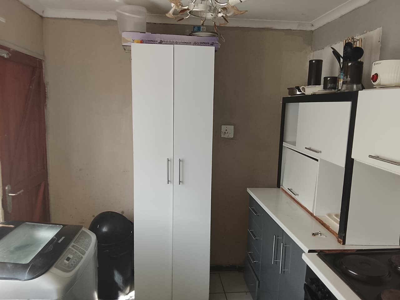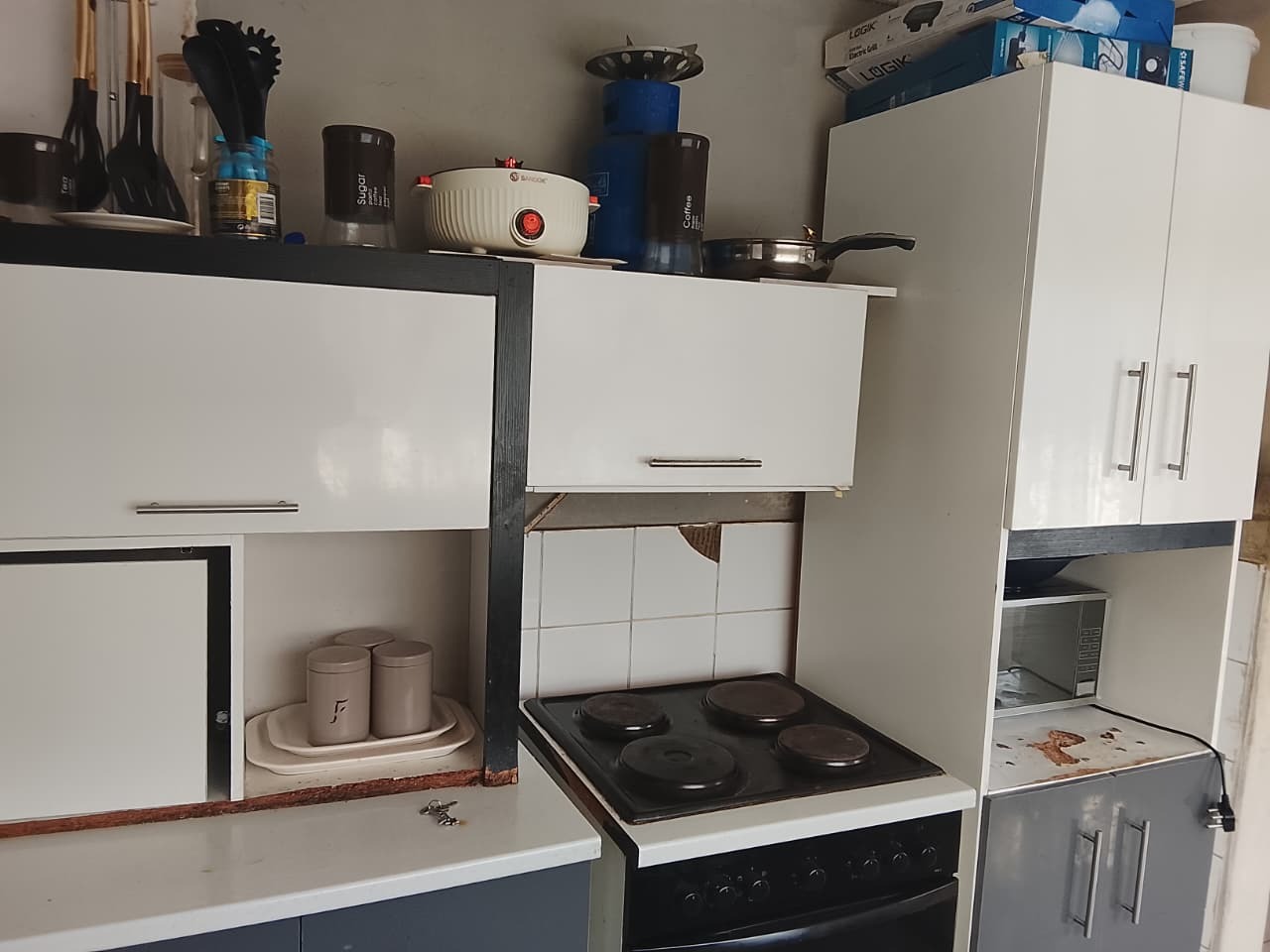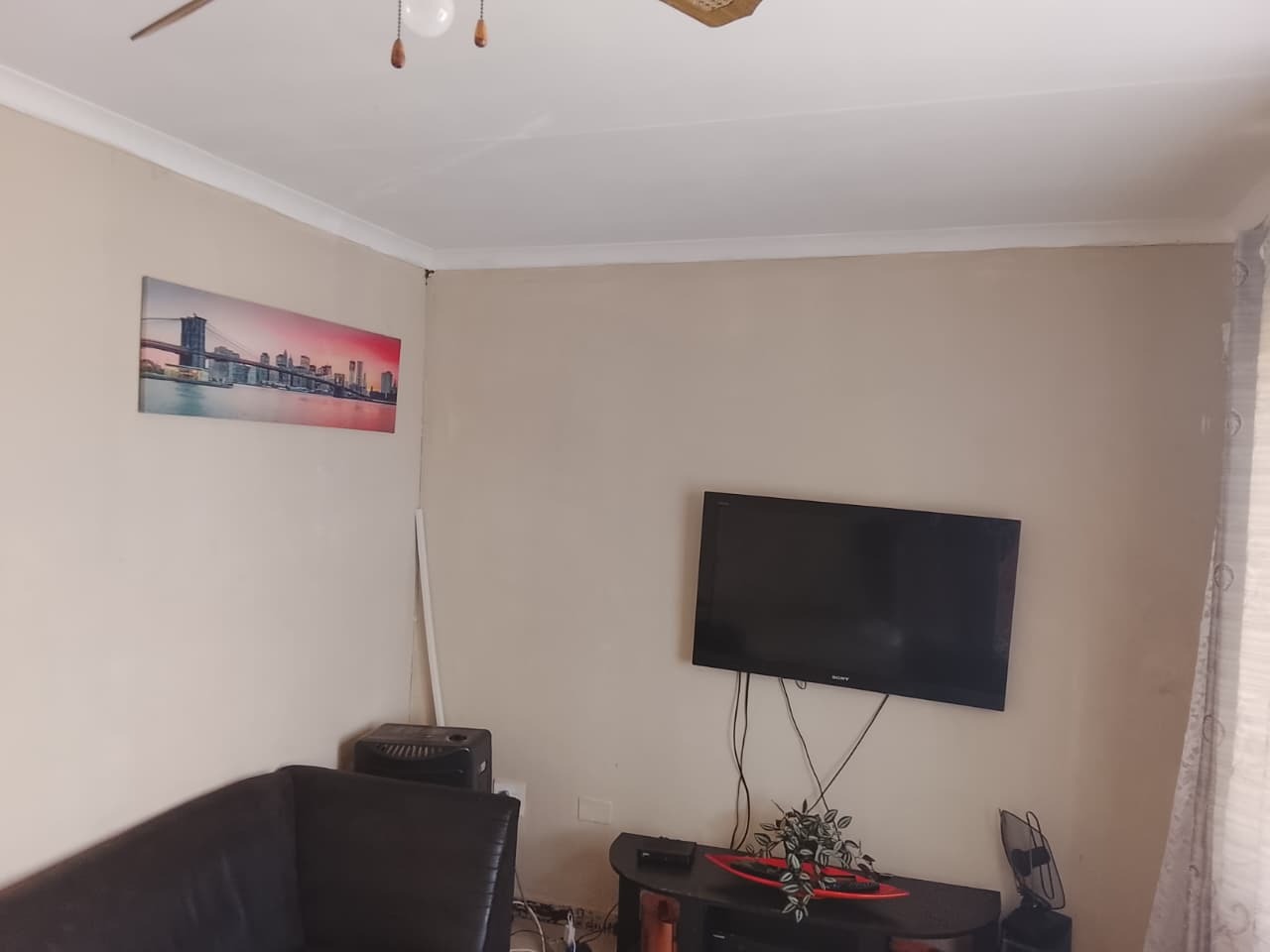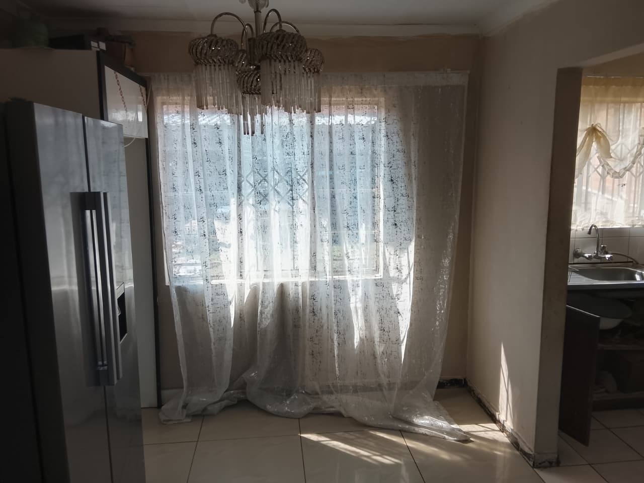 This charming home features 3 well-sized bedrooms, two with built-in cupboards, and a neatly tiled interior throughout. The fully fitted kitchen offers ample storage with built-in cupboards. Outside, the property boasts a spacious yard, a small vegetable garden at the back, and secure parking for up to 3 vehicles.