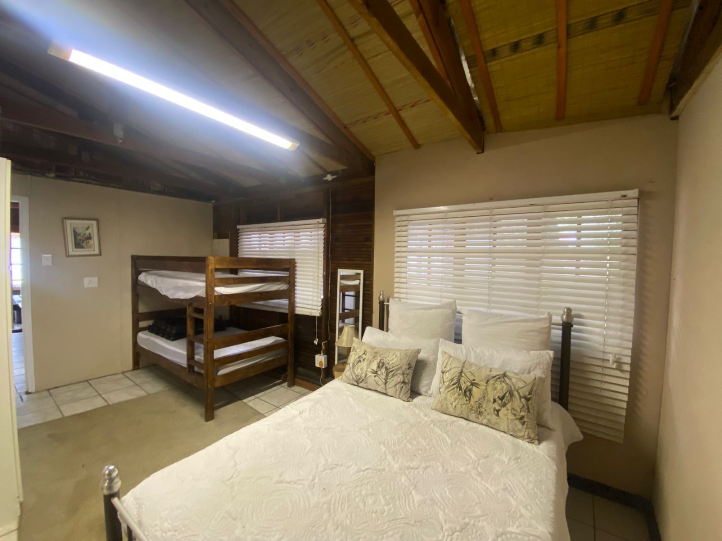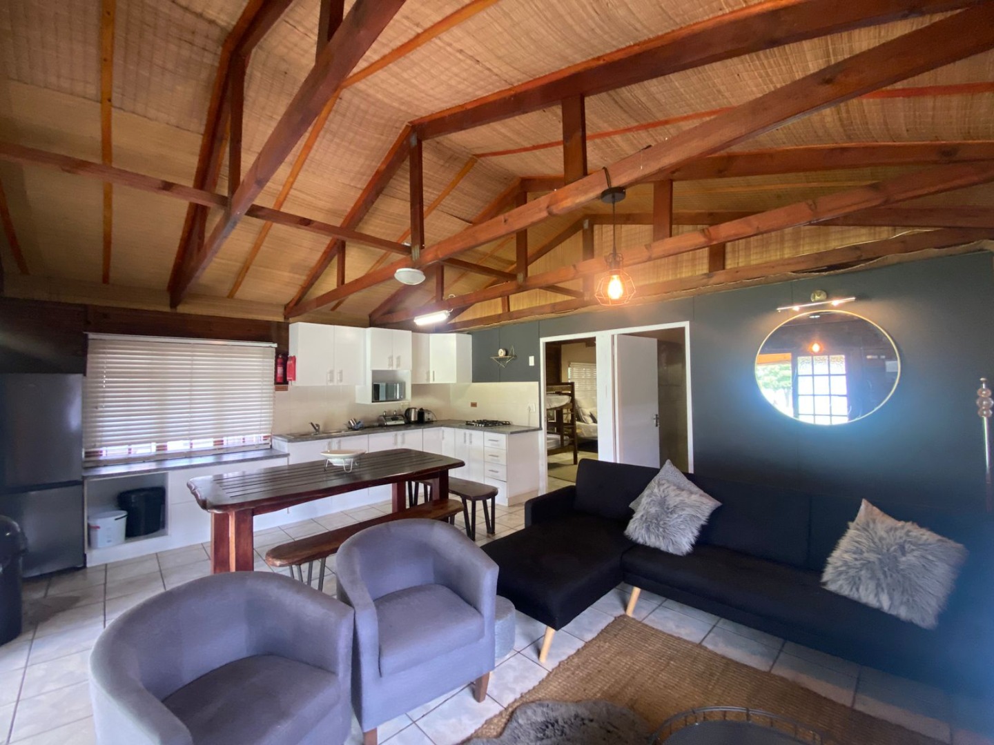 Step inside to a light-filled open-plan living area and brand-new modern kitchen, thoughtfully designed with stylish finishes and fully tiled floors for easy living. Exposed wooden rafters add warmth and character, creating an inviting space ideal for relaxing or entertaining. Furthermore, all furniture and décor is included in the purchase.