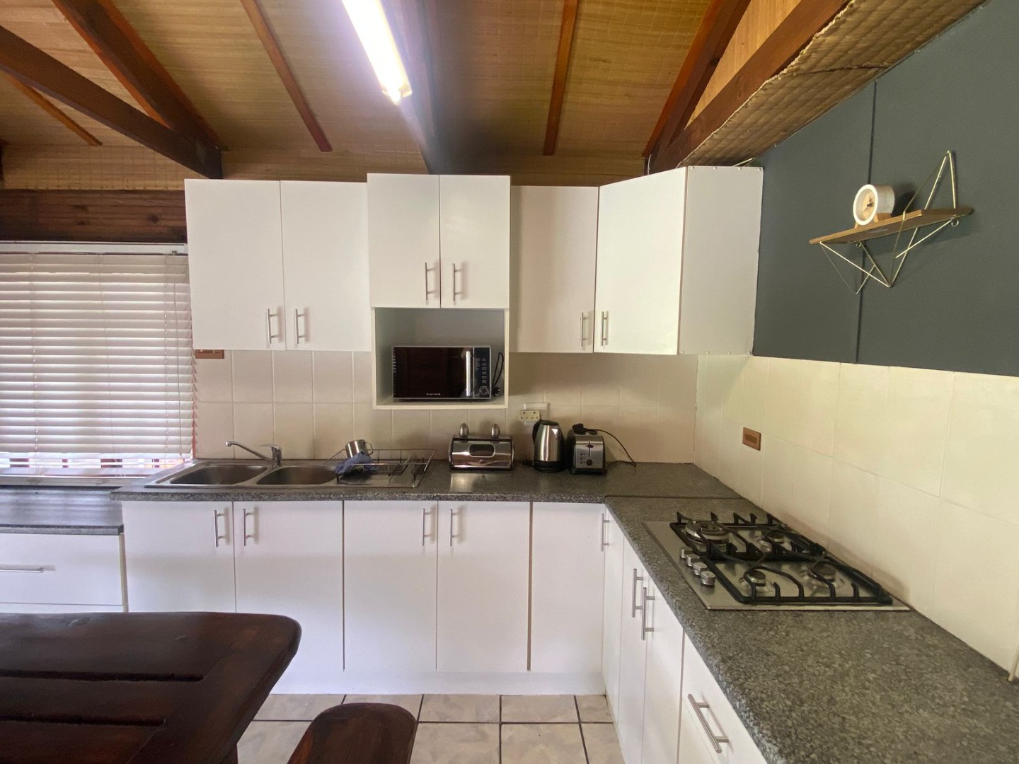 Step inside to a light-filled open-plan living area and brand-new modern kitchen, thoughtfully designed with stylish finishes and fully tiled floors for easy living. Exposed wooden rafters add warmth and character, creating an inviting space ideal for relaxing or entertaining. Furthermore, all furniture and décor is included in the purchase.