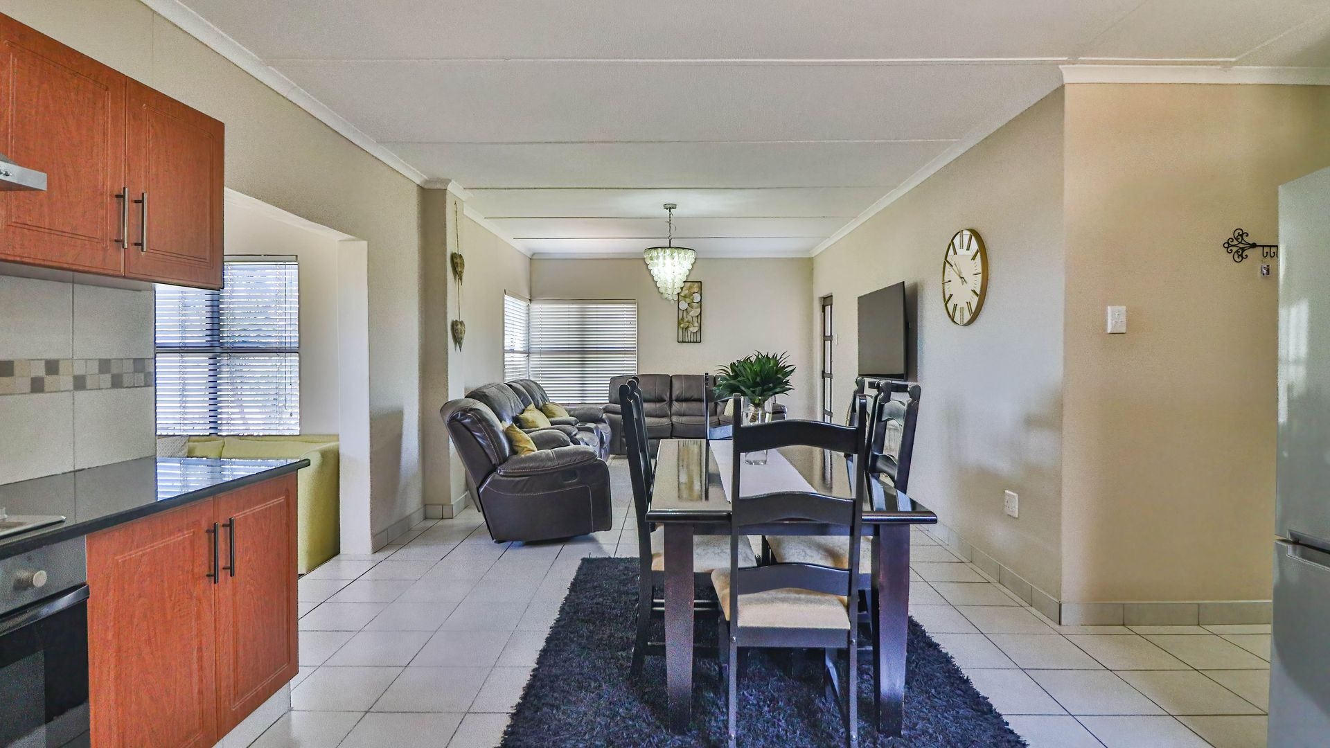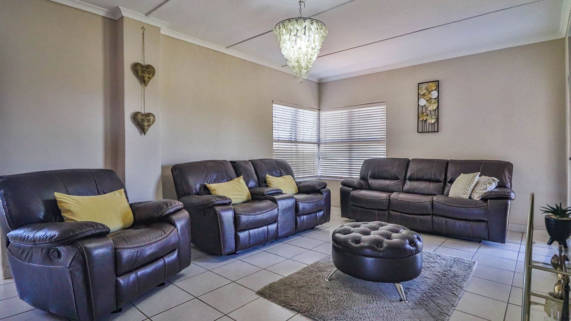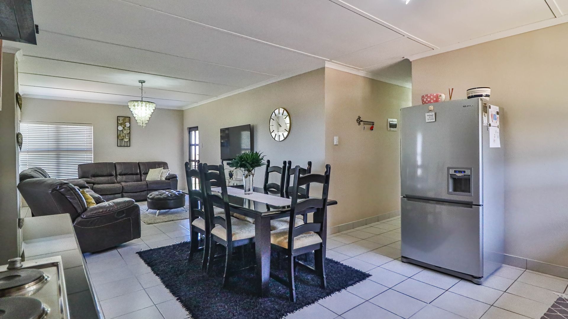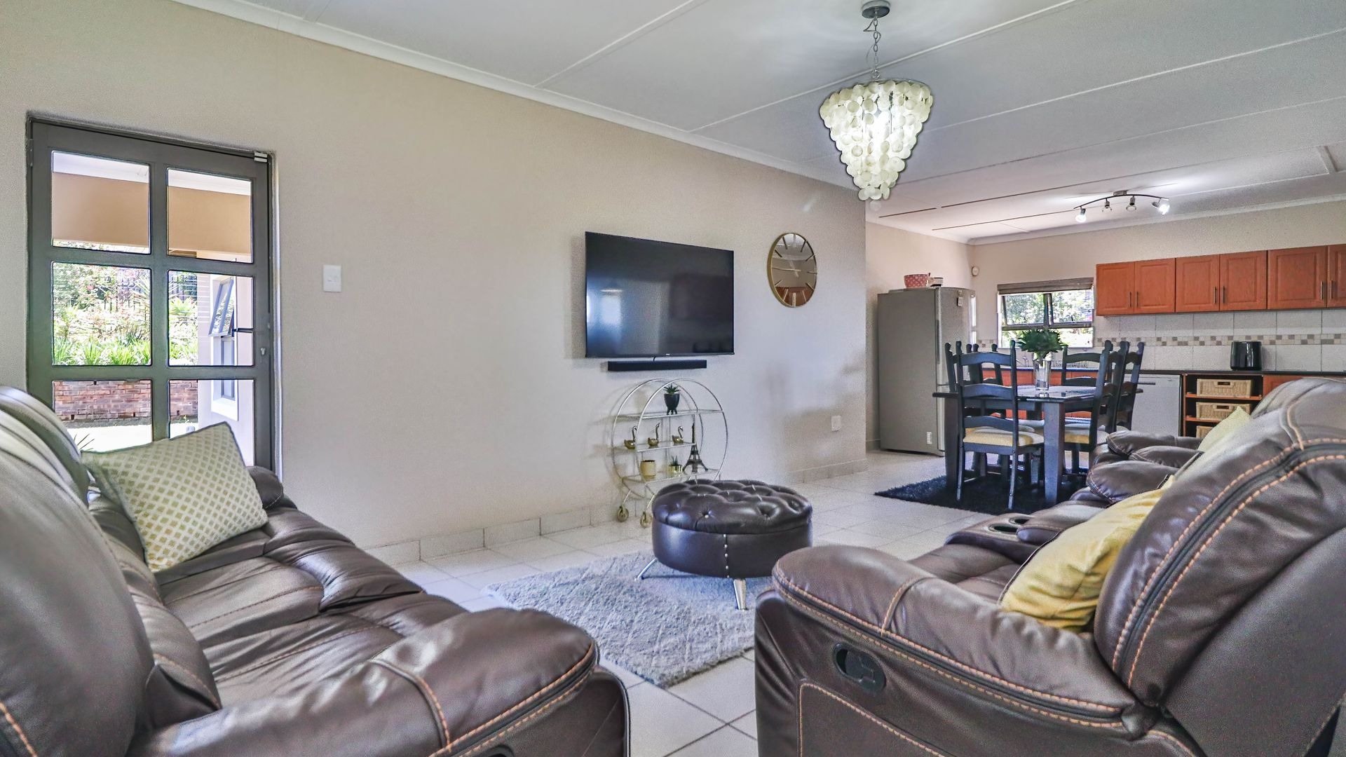 The home features built-in wardrobes in all bedrooms, an open-plan lounge and dining area, and a fully fitted kitchen complete with a scullery. The main bedroom includes an ensuite bathroom, while a stylish guest bathroom serves the rest of the home. Every detail has been tastefully finished, blending comfort with modern elegance.