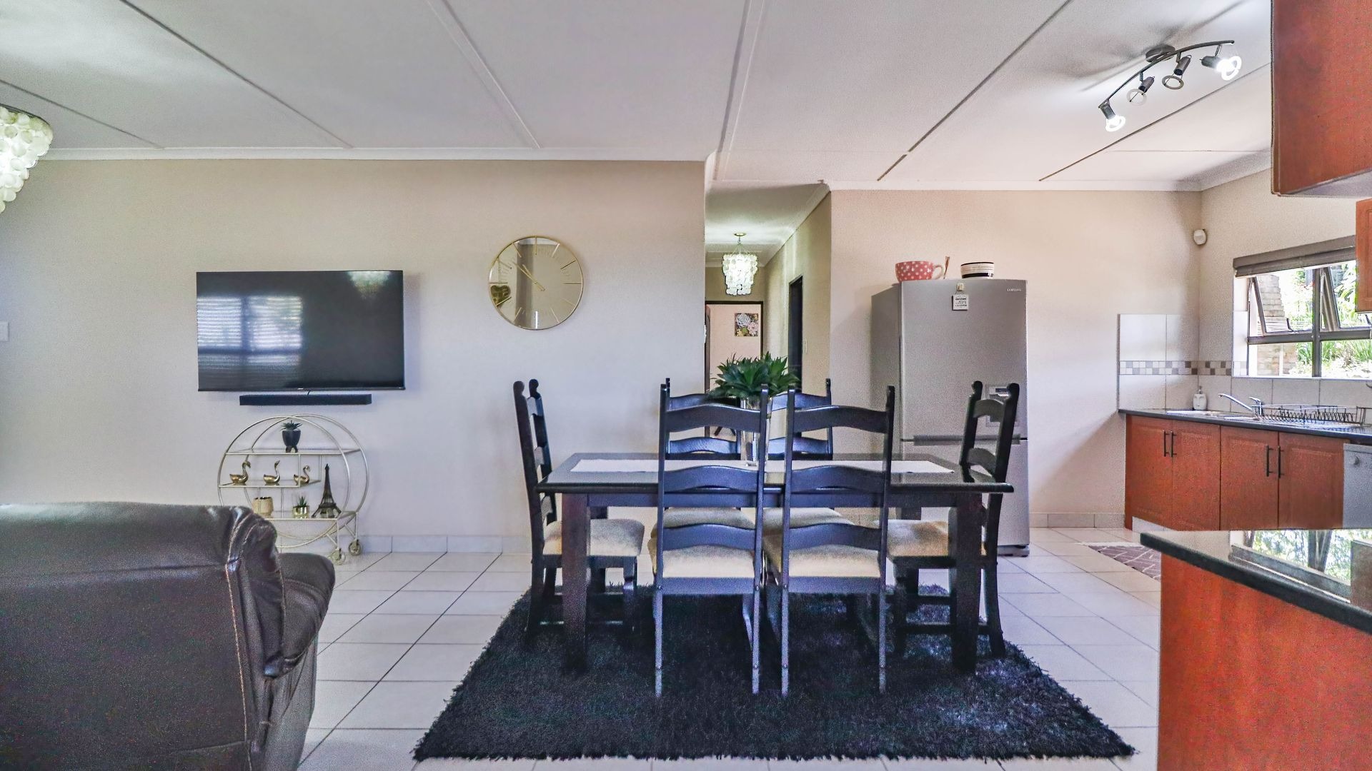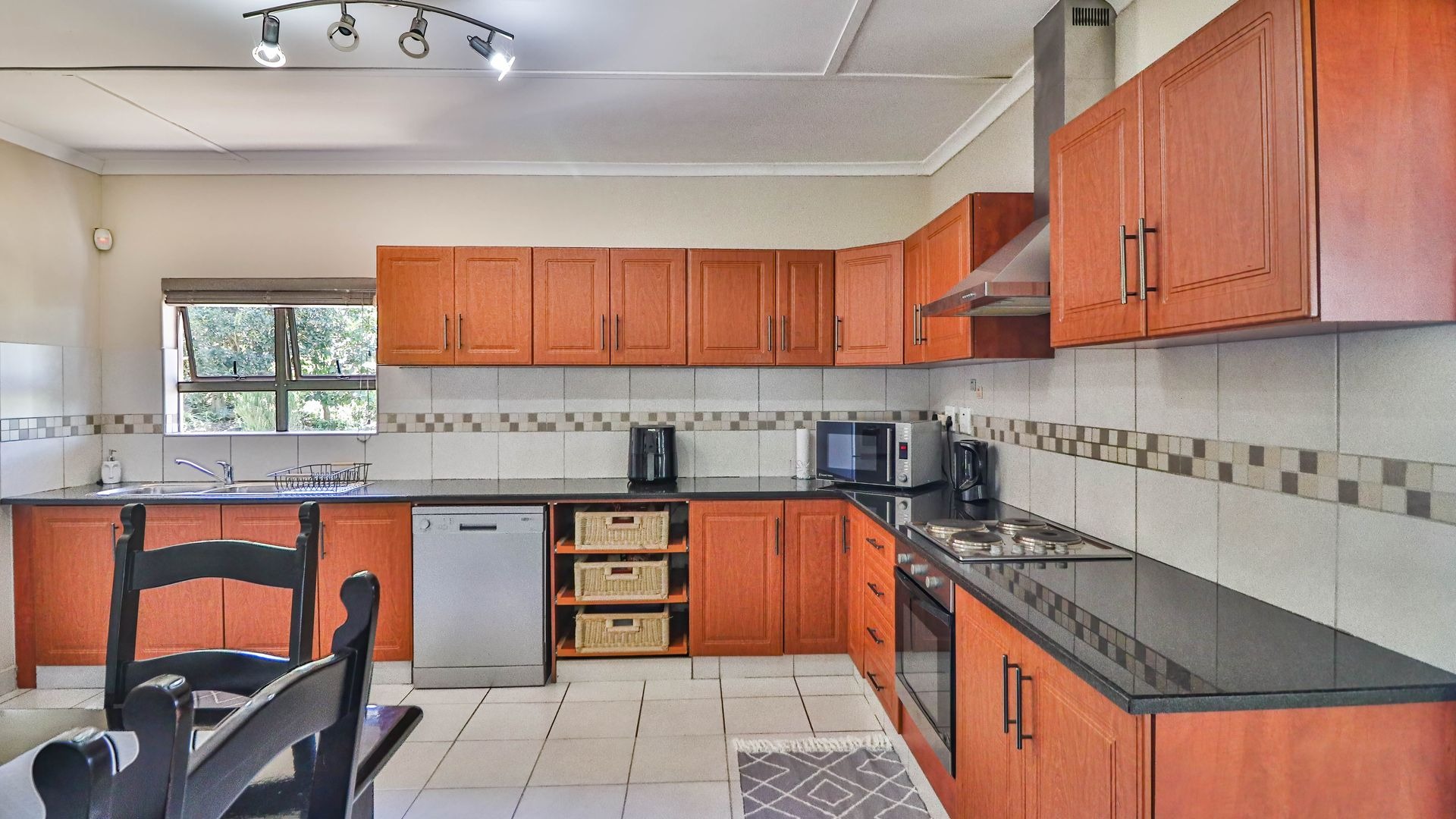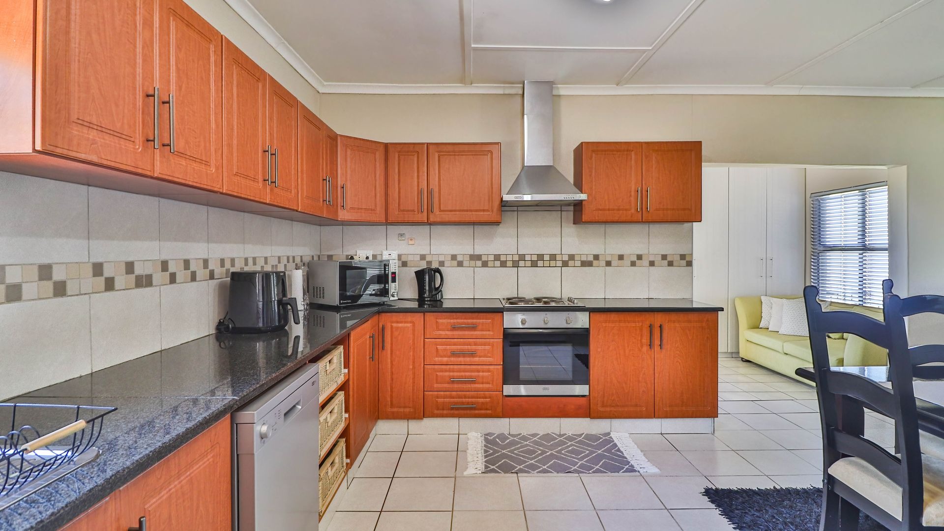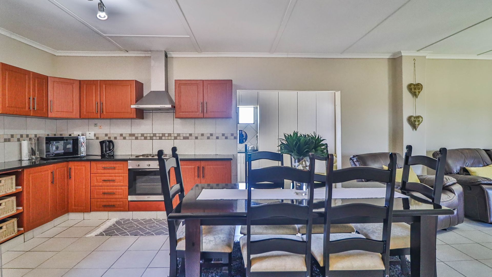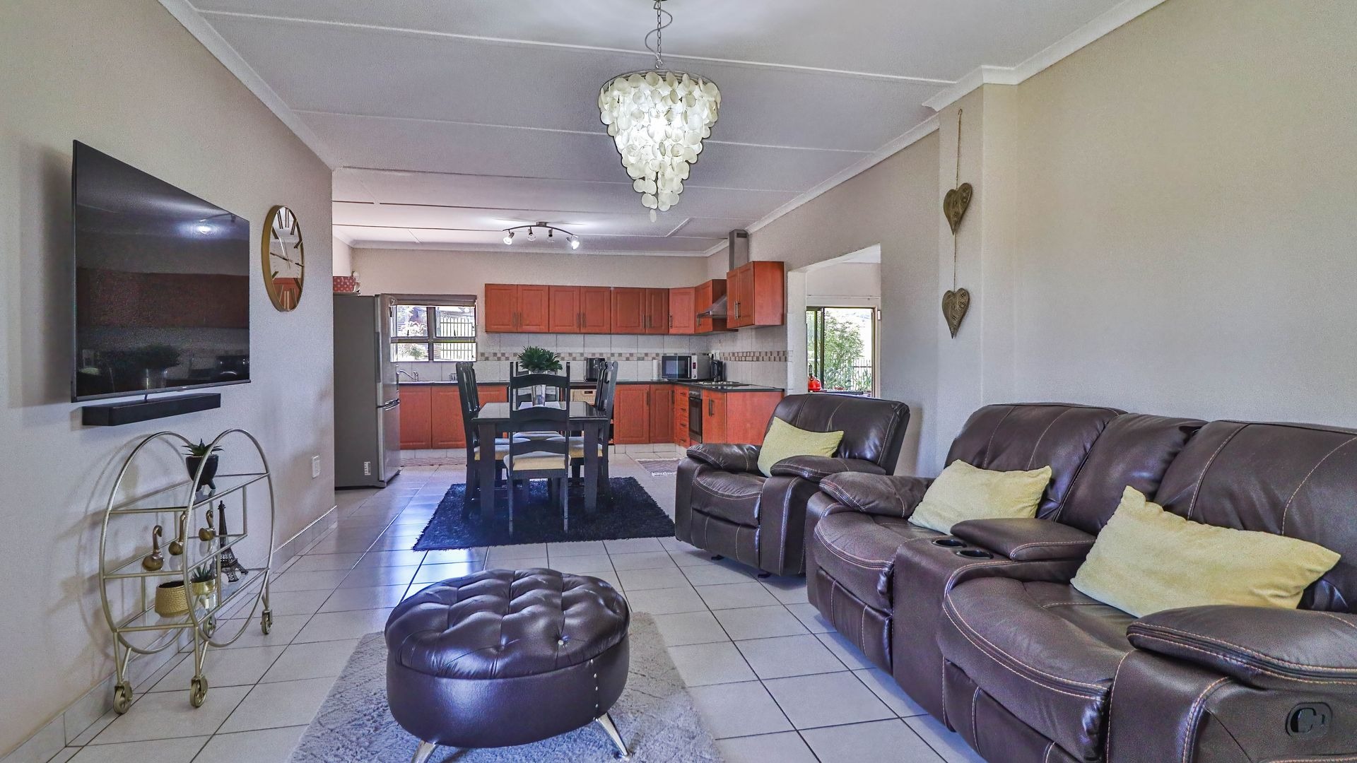 The home features built-in wardrobes in all bedrooms, an open-plan lounge and dining area, and a fully fitted kitchen complete with a scullery. The main bedroom includes an ensuite bathroom, while a stylish guest bathroom serves the rest of the home. Every detail has been tastefully finished, blending comfort with modern elegance.