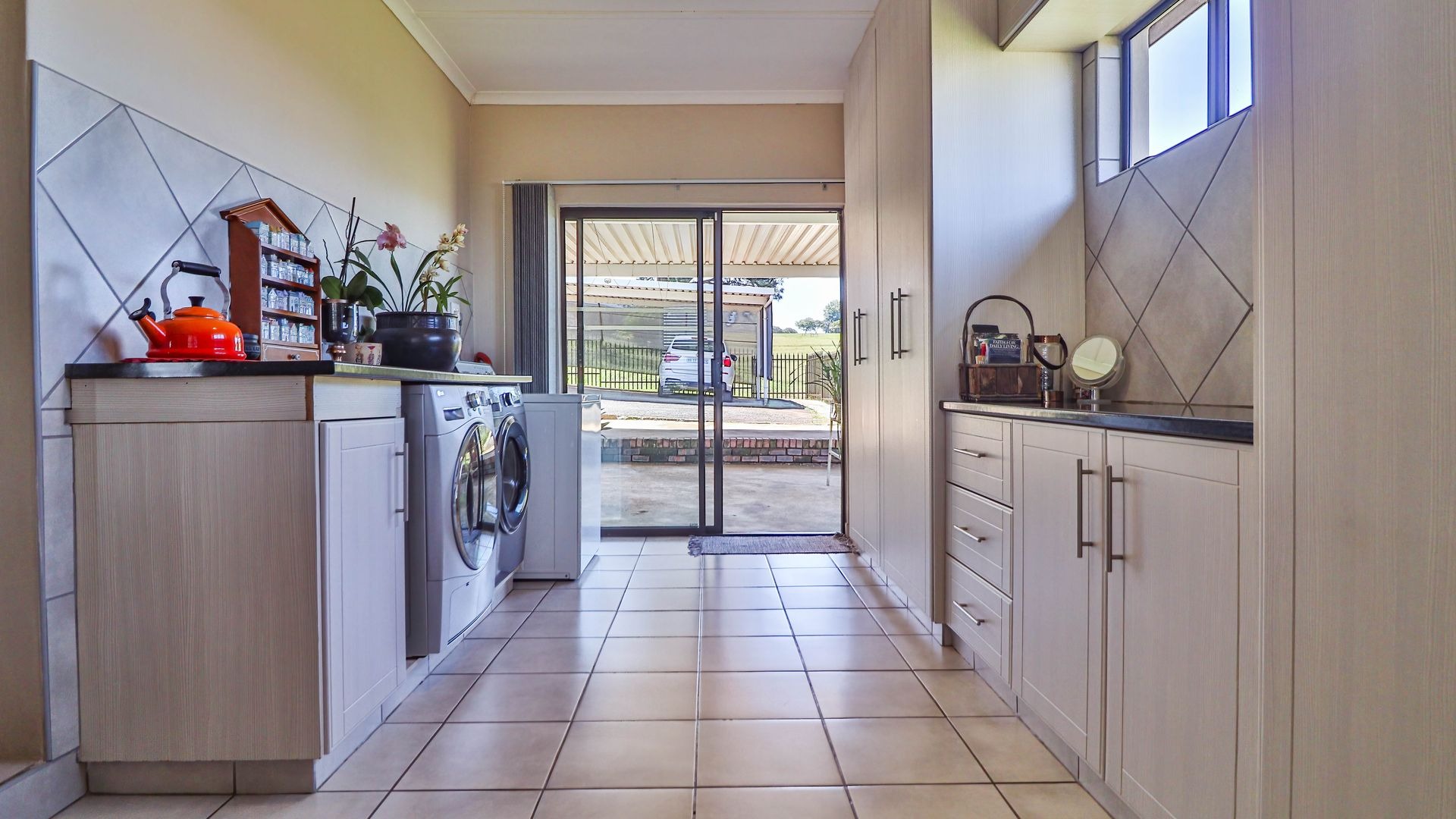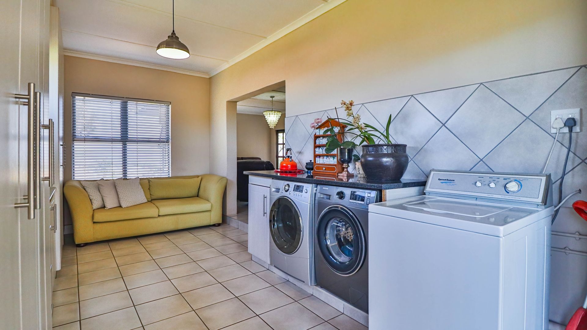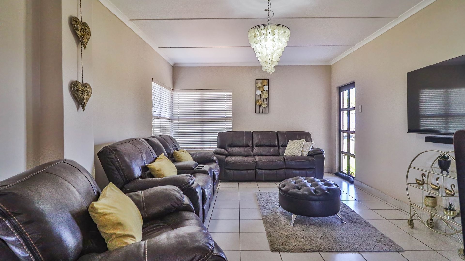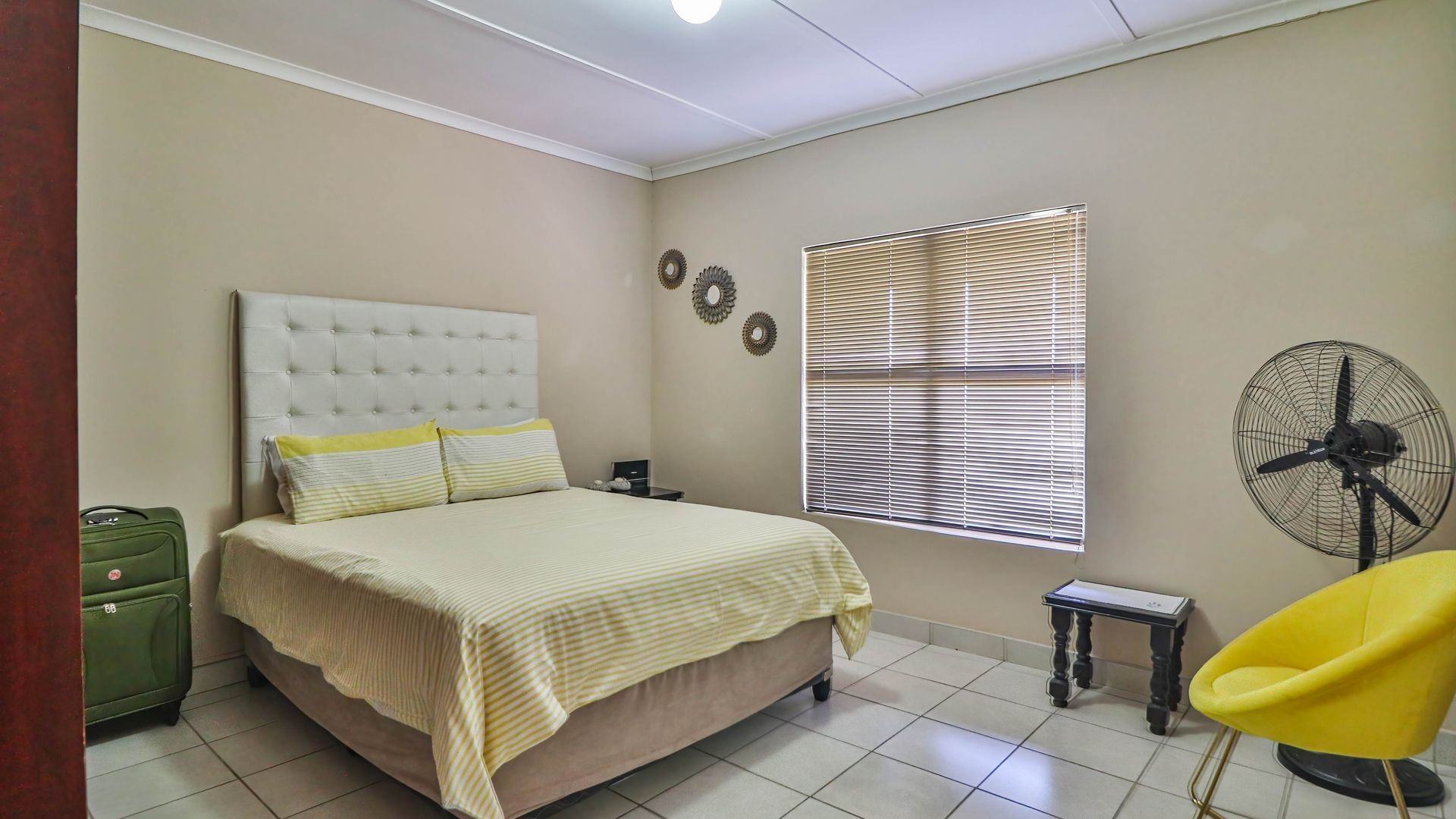 The home features built-in wardrobes in all bedrooms, an open-plan lounge and dining area, and a fully fitted kitchen complete with a scullery. The main bedroom includes an ensuite bathroom, while a stylish guest bathroom serves the rest of the home. Every detail has been tastefully finished, blending comfort with modern elegance.