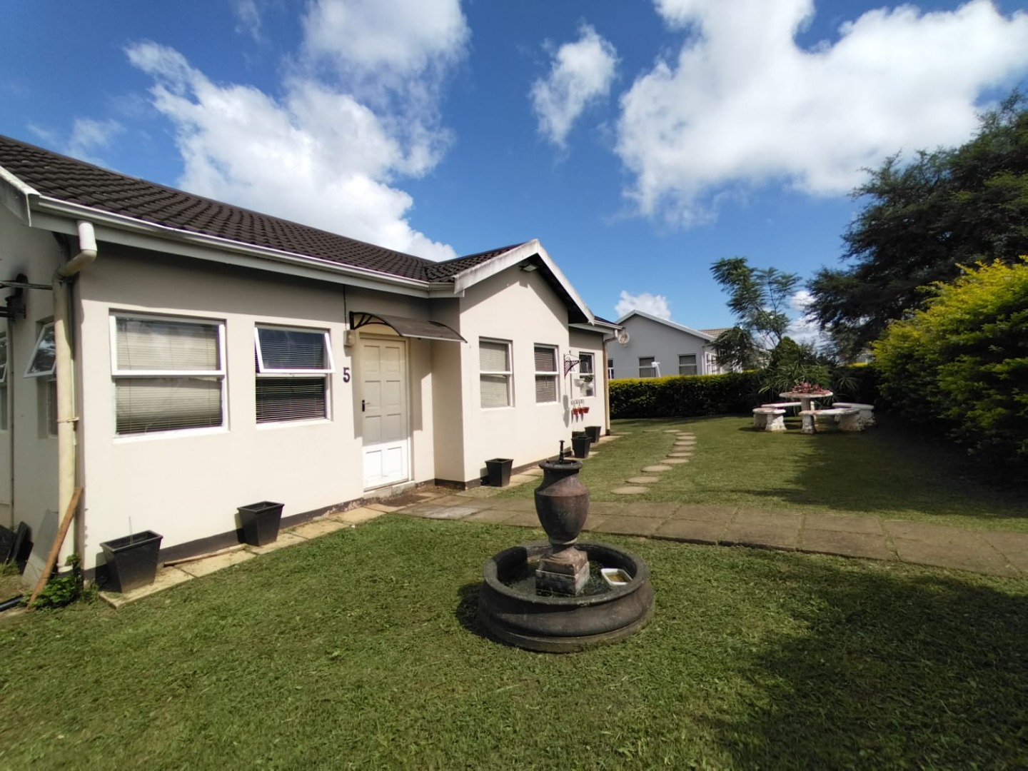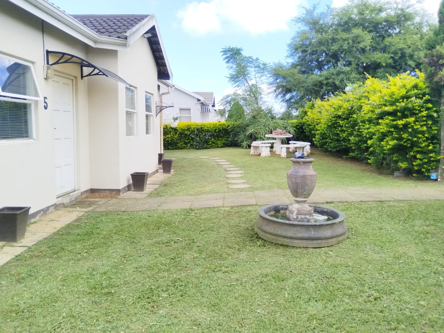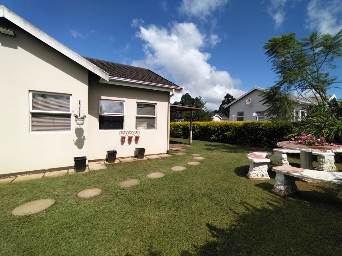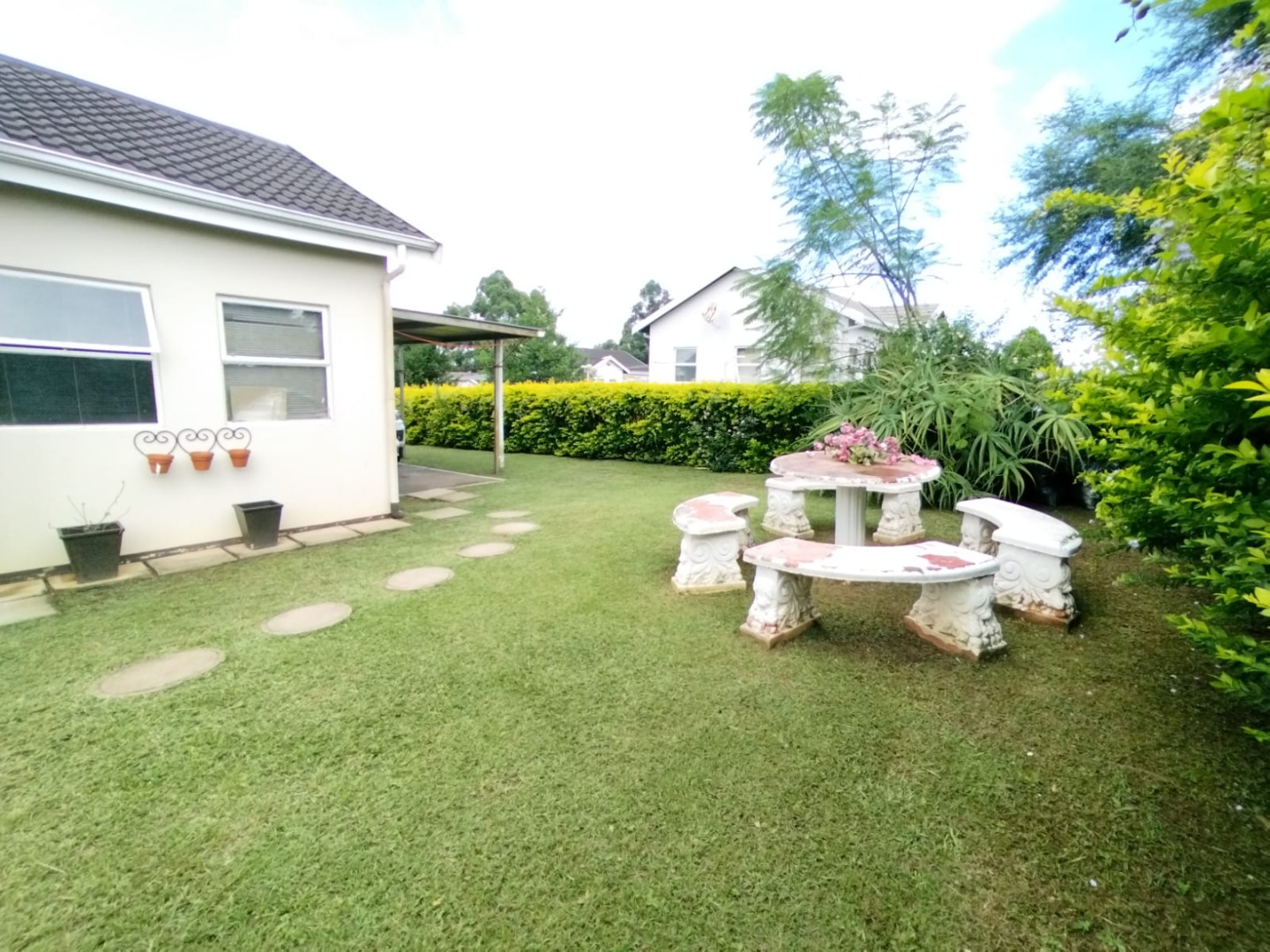 This garden is well maintained, and there is car port. There's ample yard for kids to play around, while they are very safe.