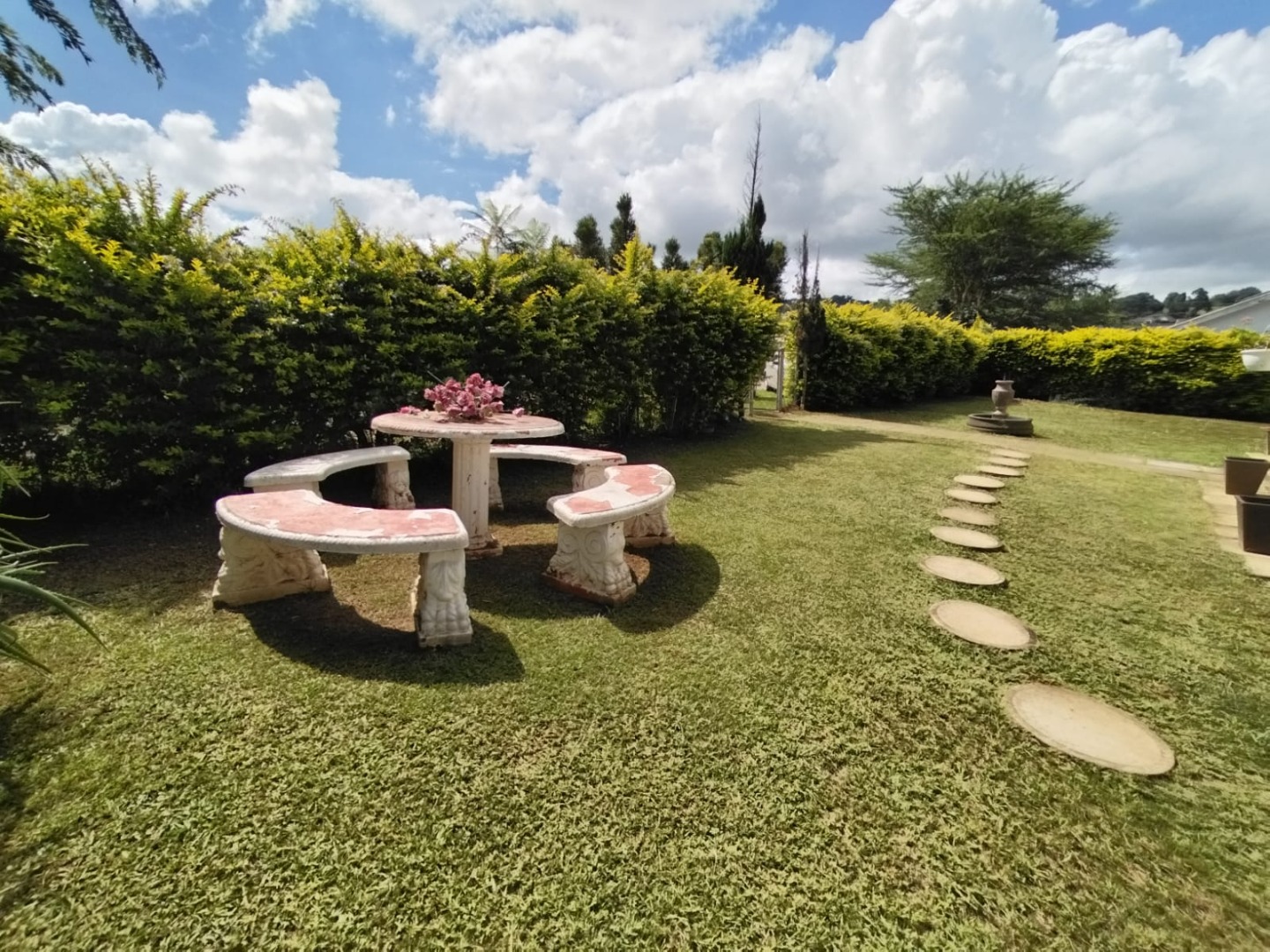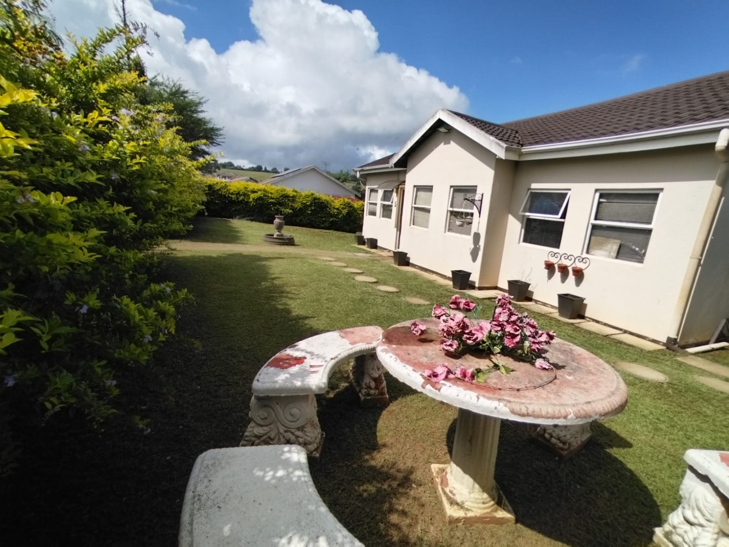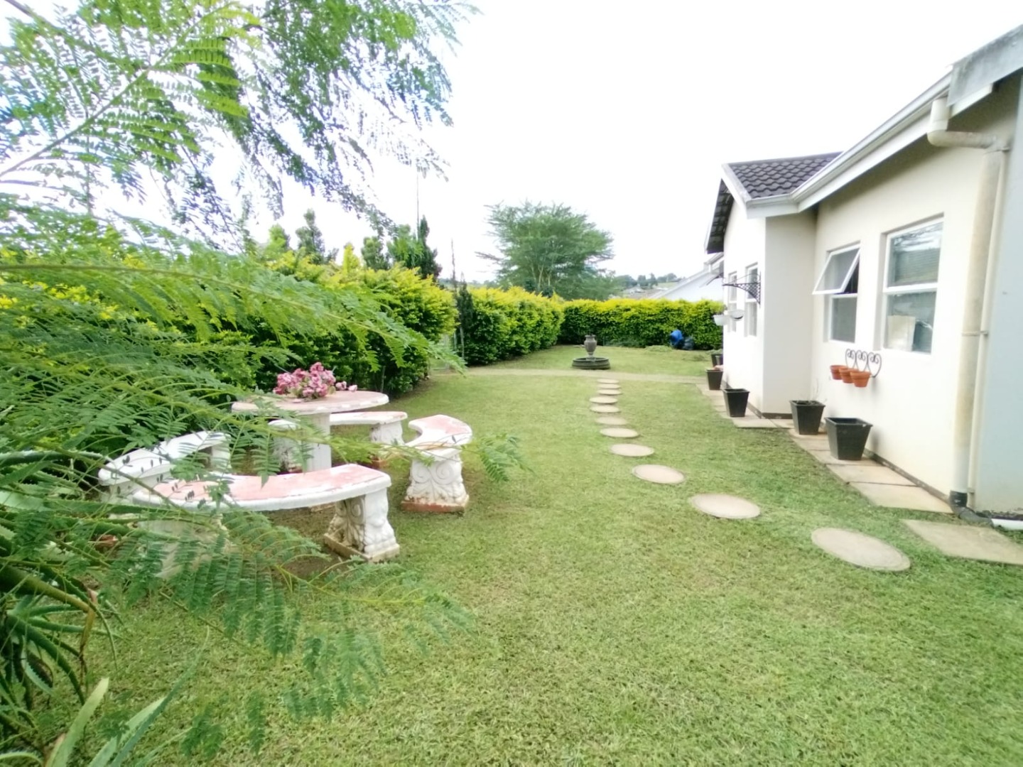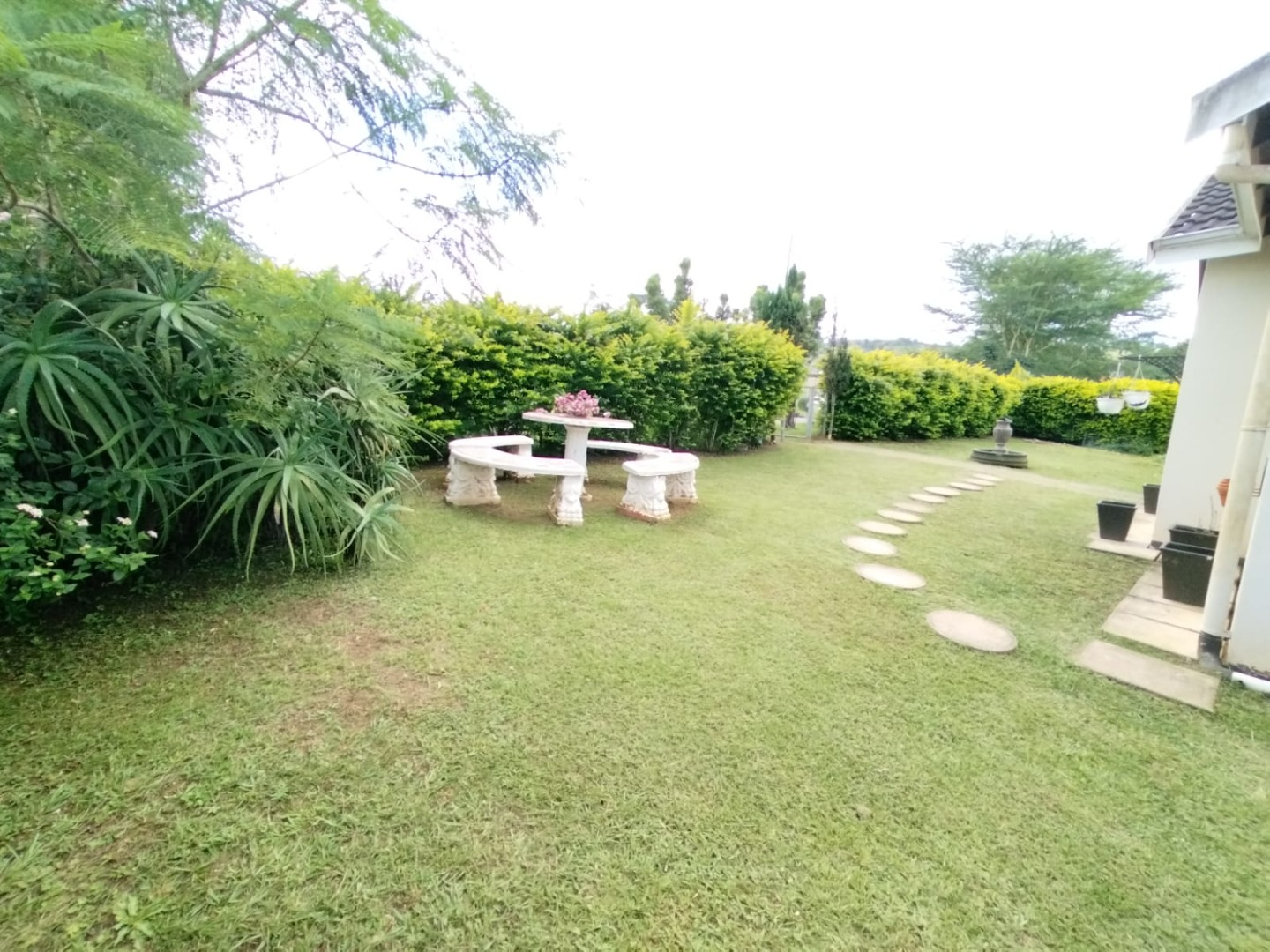 This garden is well maintained, and there is car port. There's ample yard for kids to play around, while they are very safe.