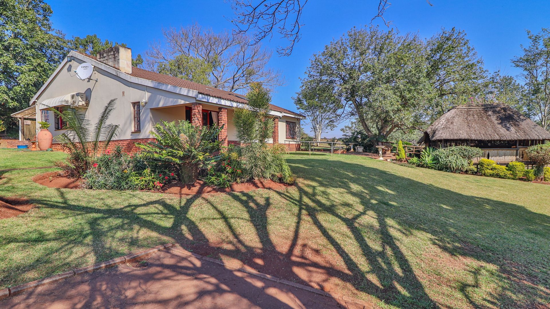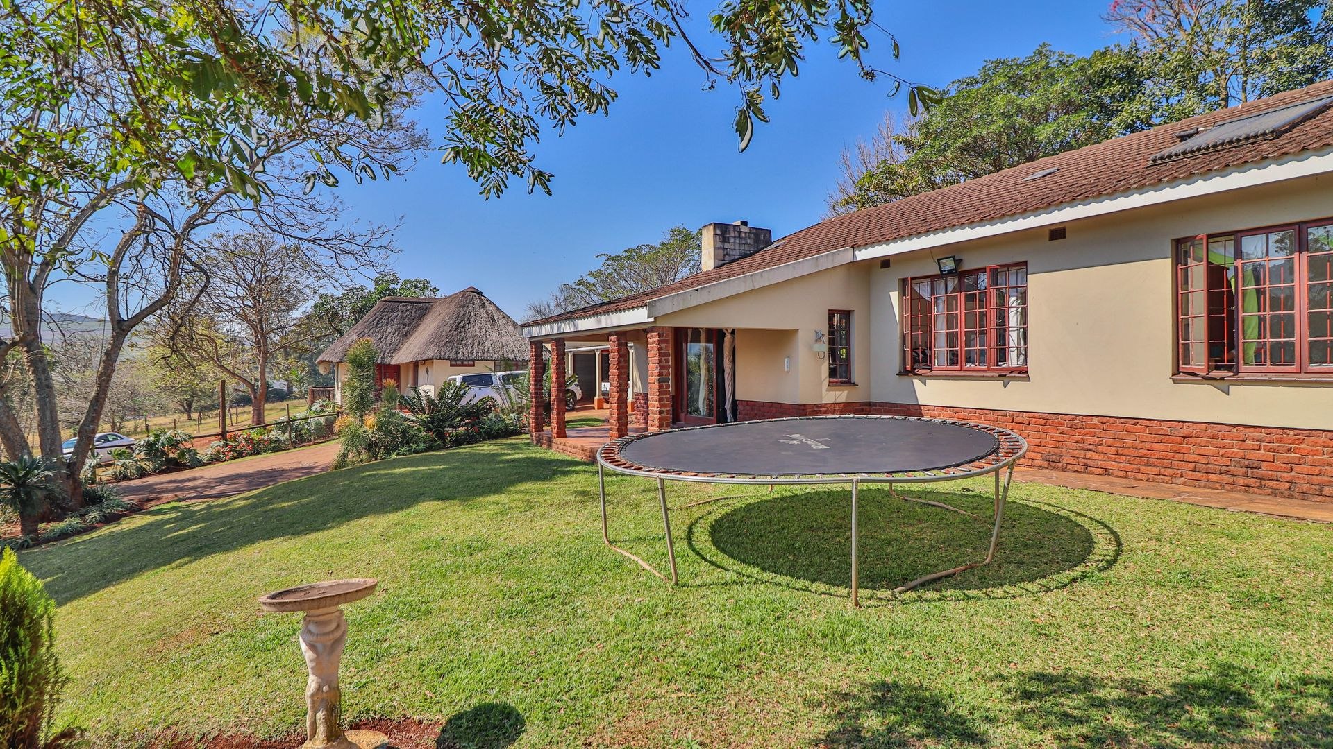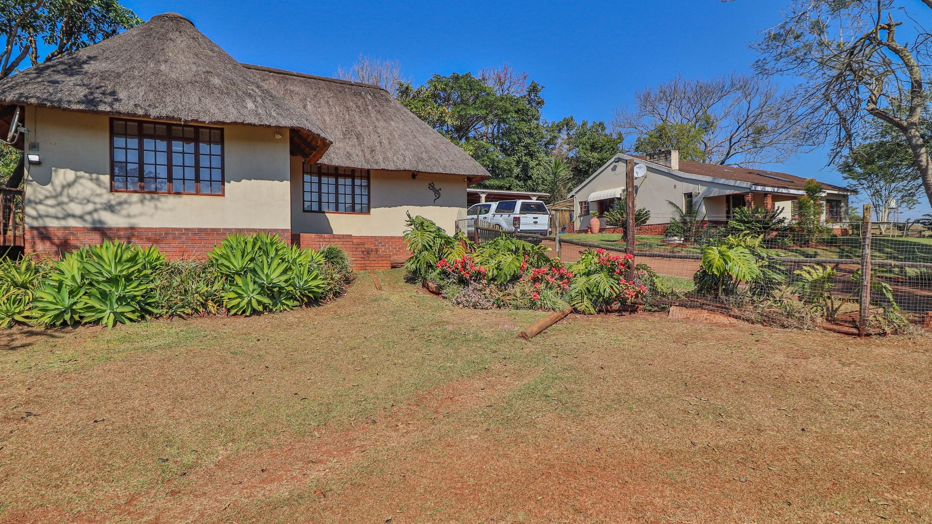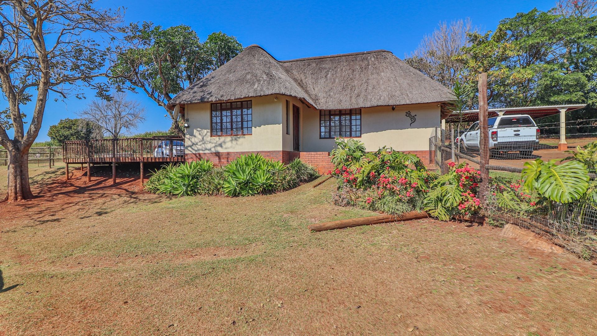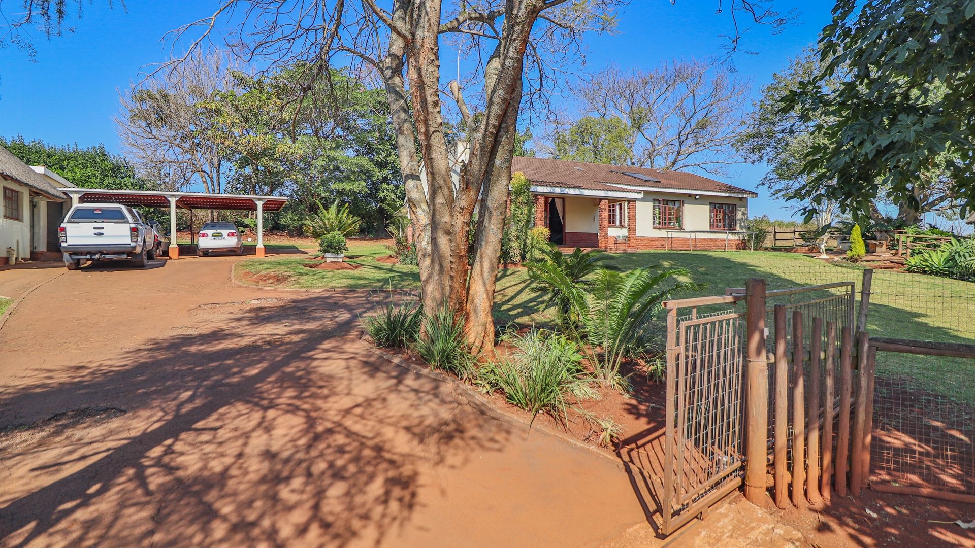 Beyond being a beautiful home, this property is also a thriving income-generating smallholding with its own vegetable production. The expansive yard is well-maintained, and a man-made dam ensures a water supply, supported by two boreholes (which may require some attention). Municipal water and electricity services are also available for added convenience.