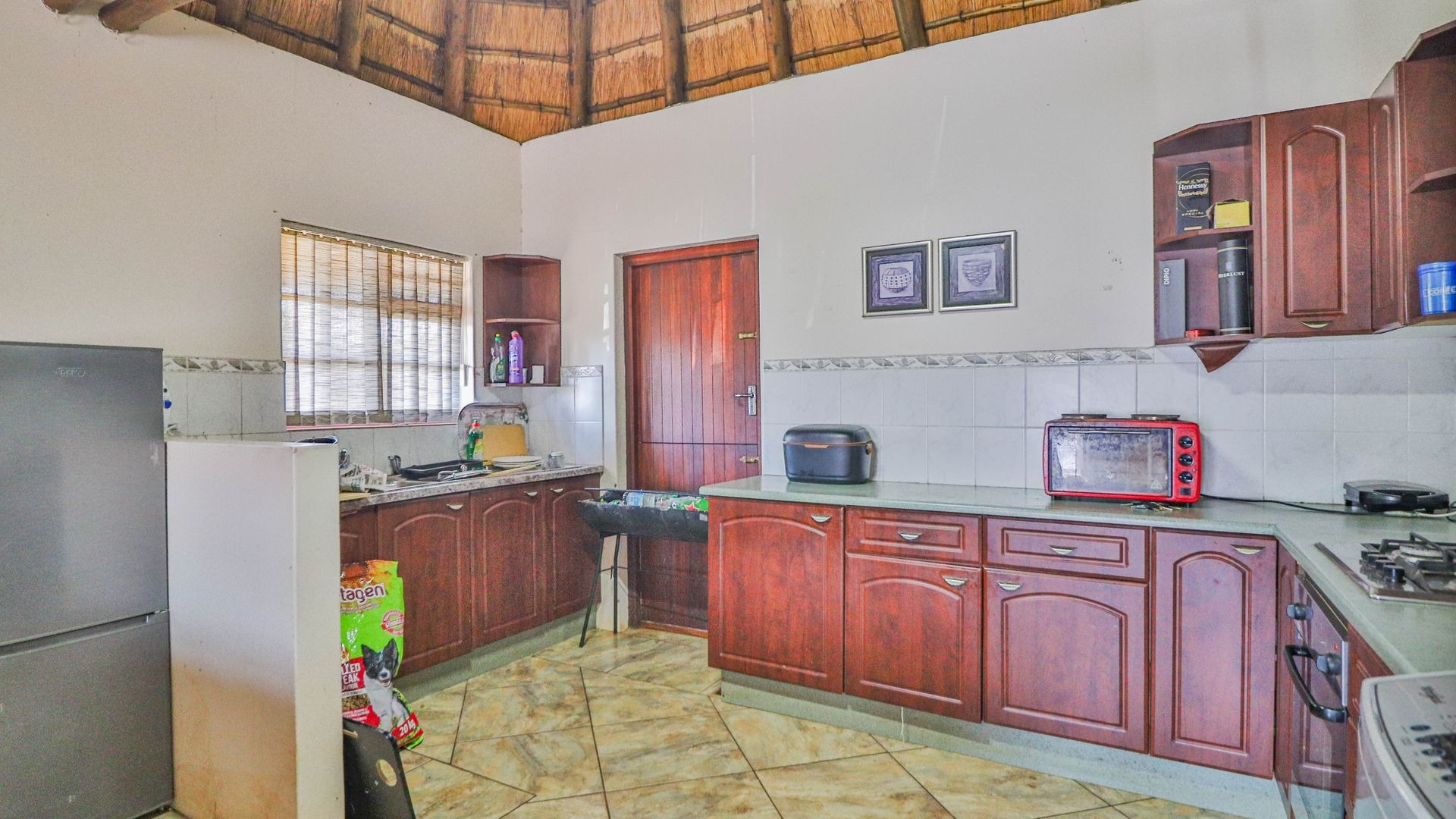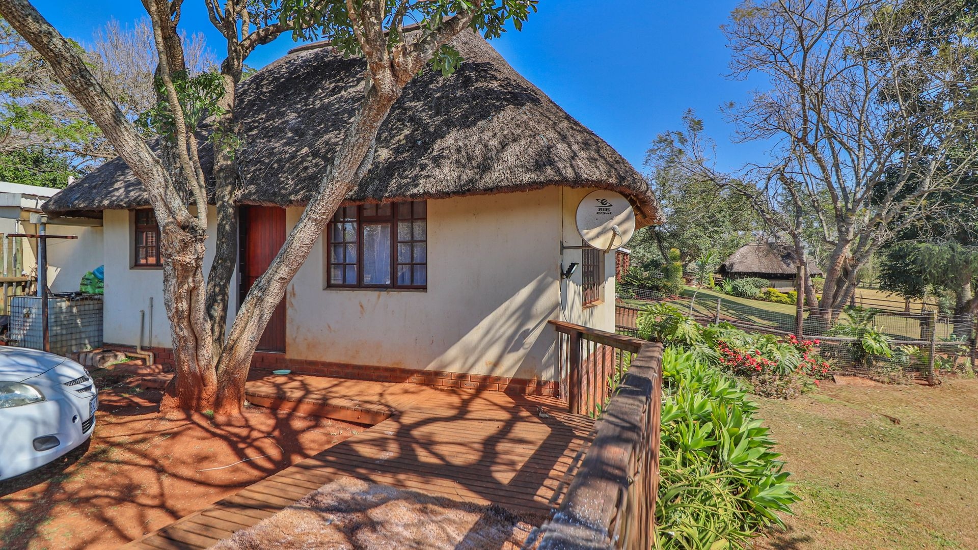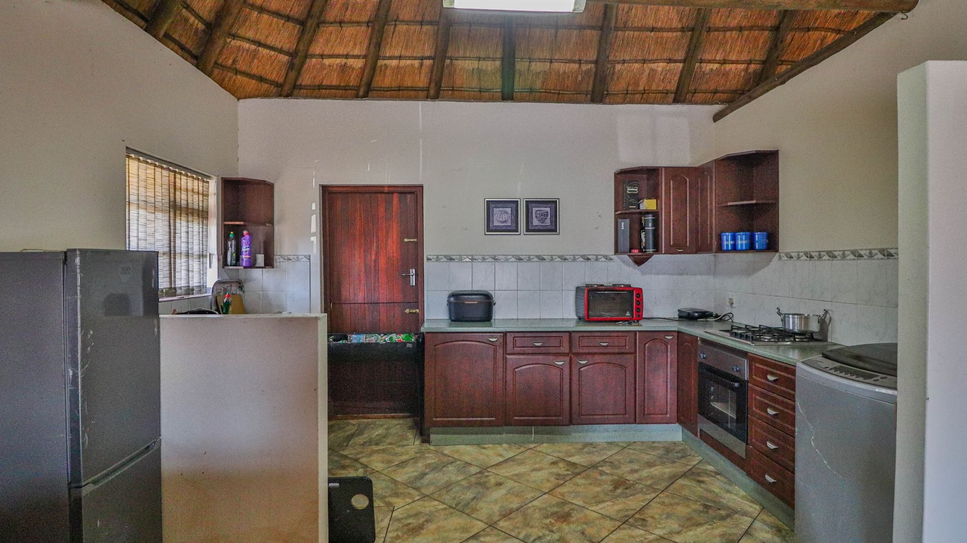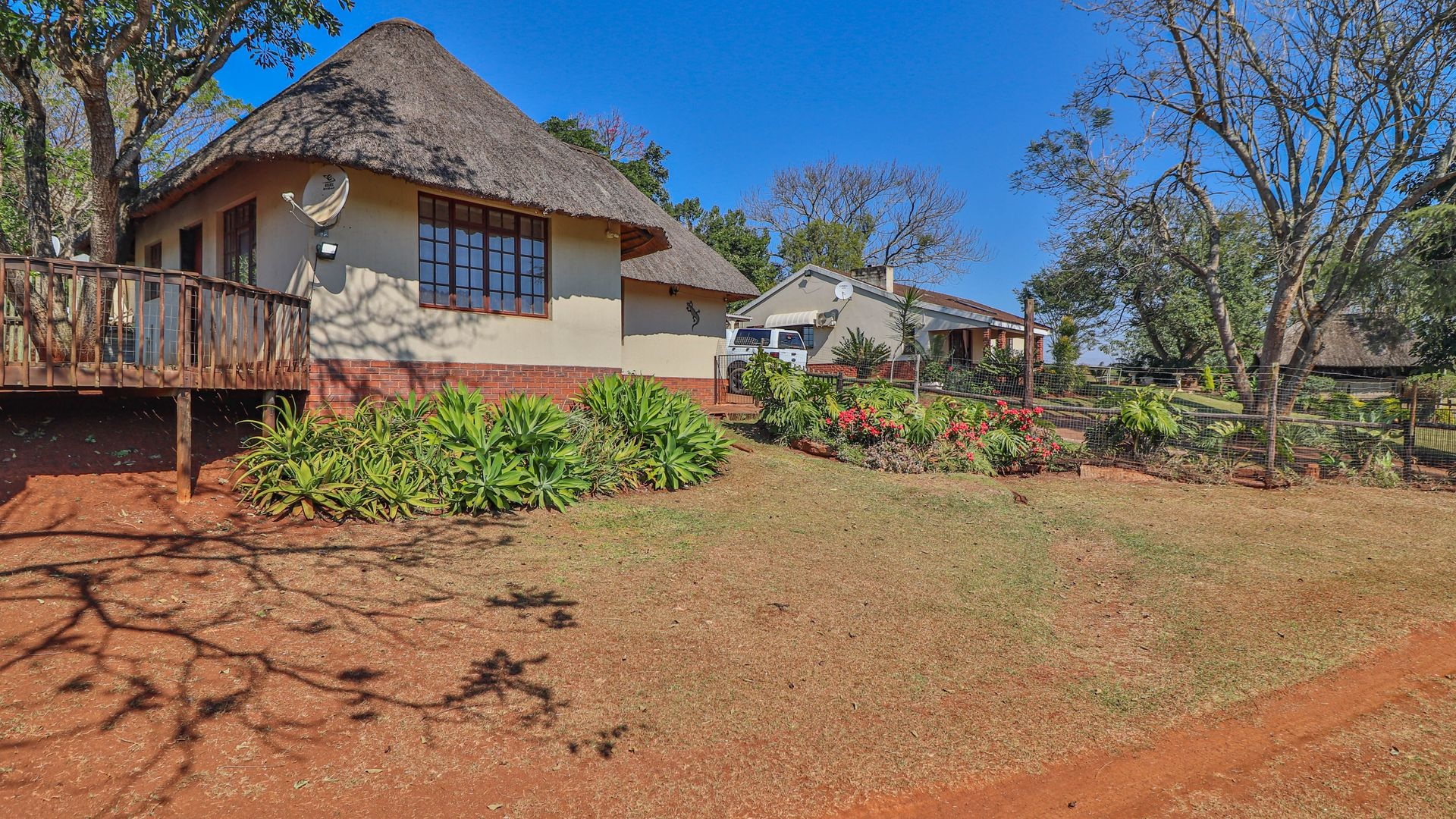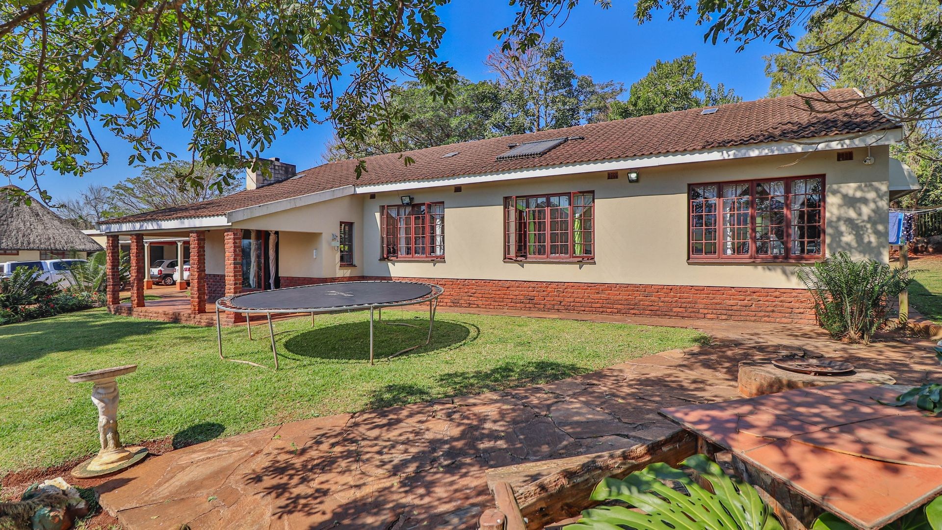 Beyond being a beautiful home, this property is also a thriving income-generating smallholding with its own vegetable production. The expansive yard is well-maintained, and a man-made dam ensures a water supply, supported by two boreholes (which may require some attention). Municipal water and electricity services are also available for added convenience.