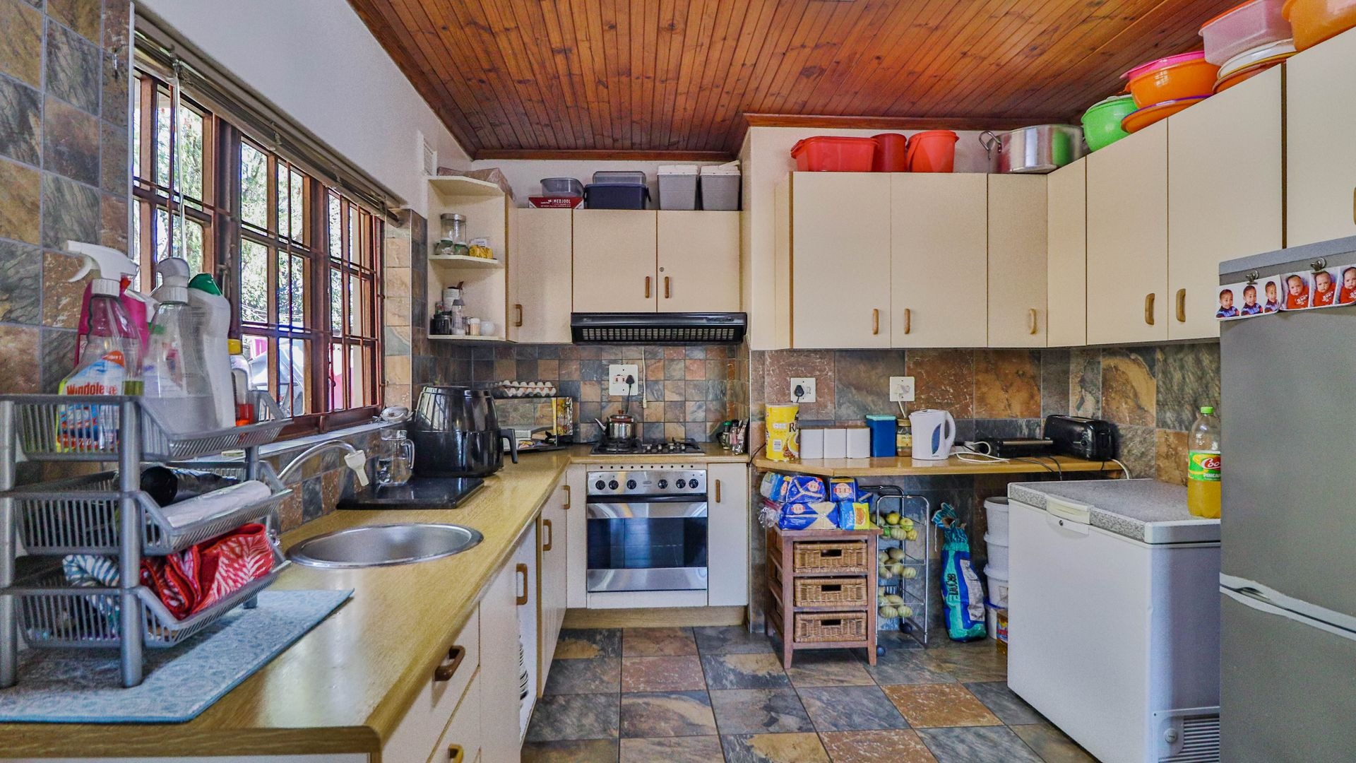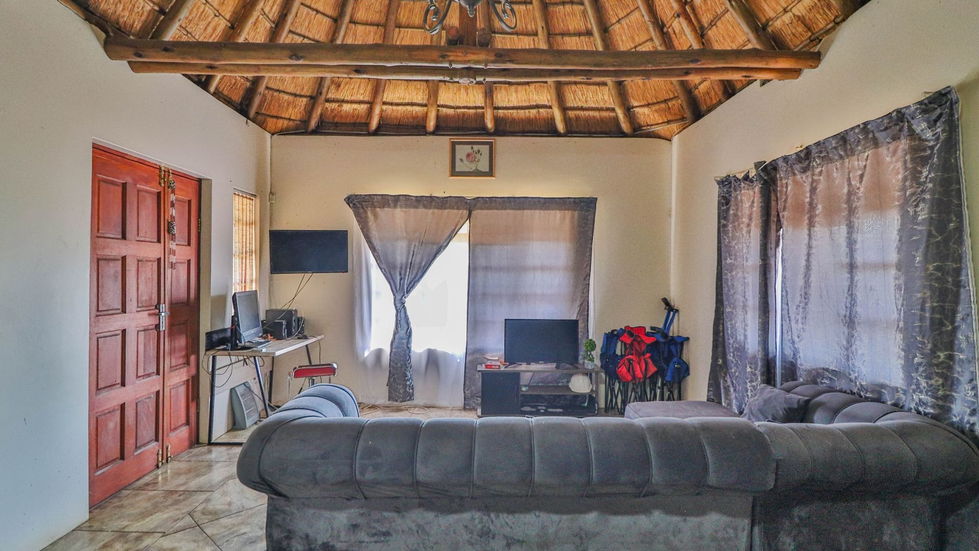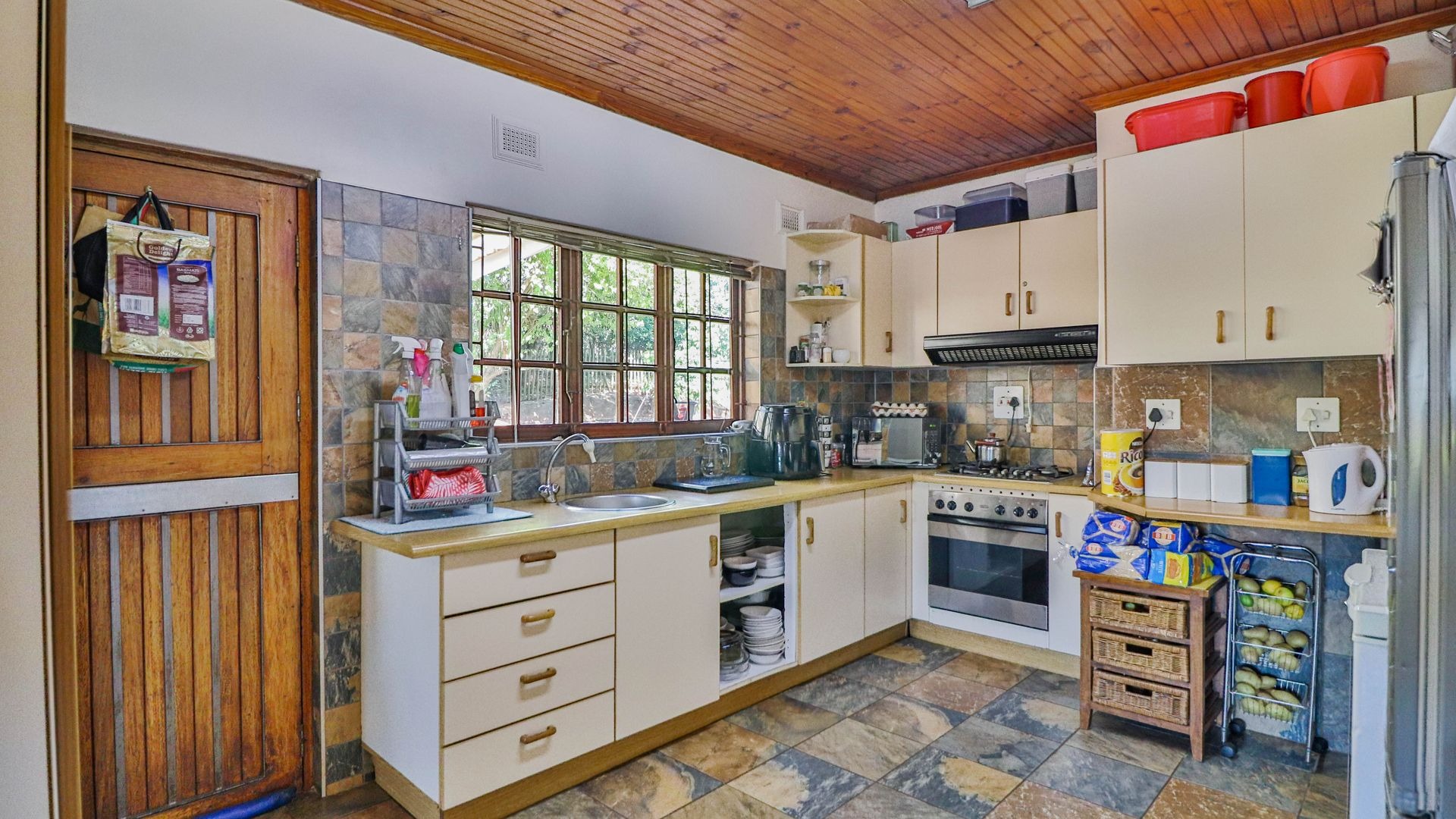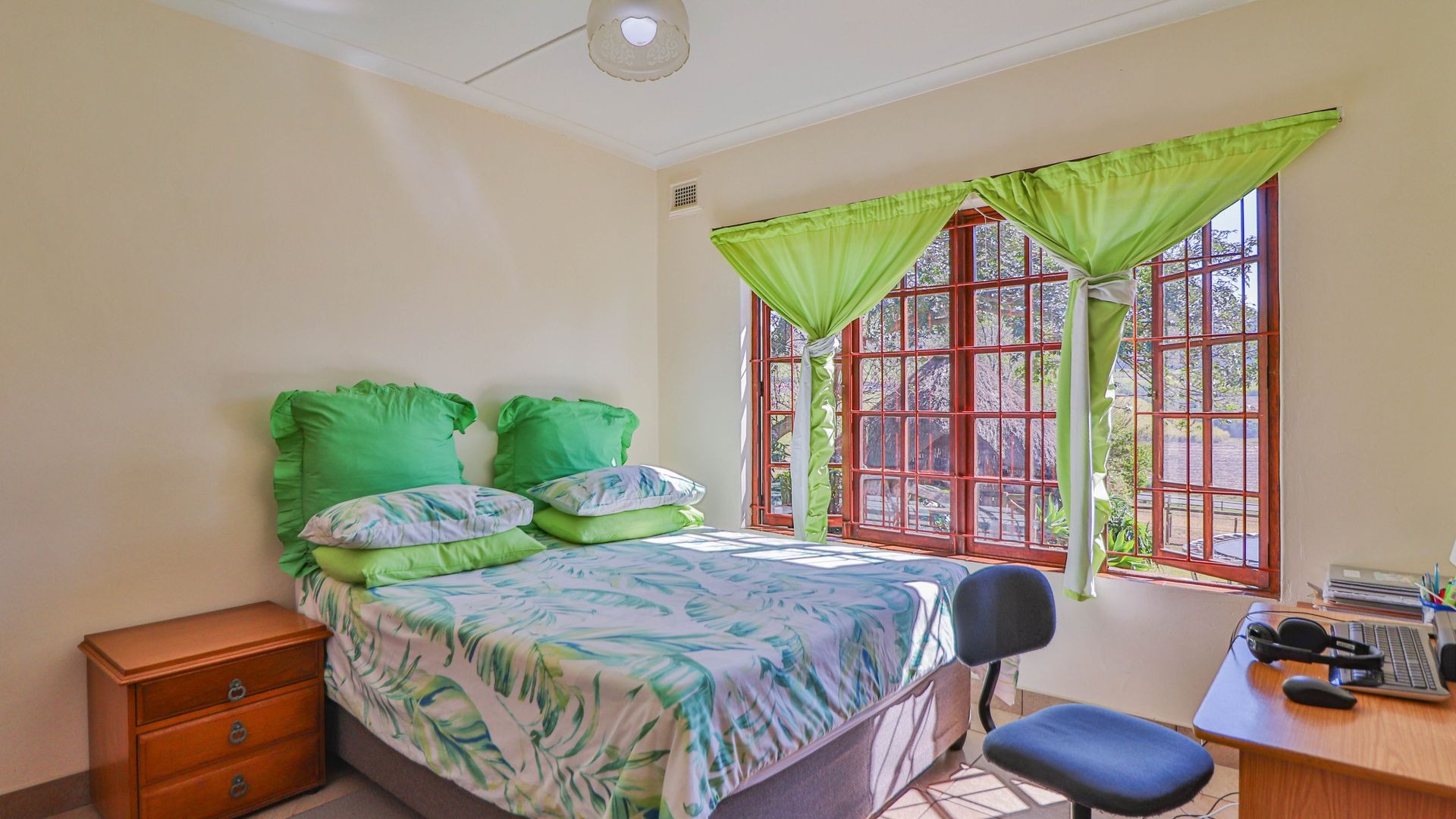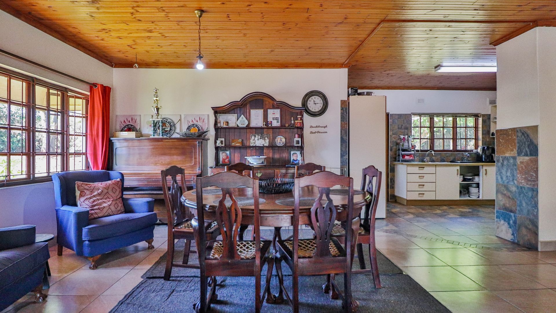 Beyond being a beautiful home, this property is also a thriving income-generating smallholding with its own vegetable production. The expansive yard is well-maintained, and a man-made dam ensures a water supply, supported by two boreholes (which may require some attention). Municipal water and electricity services are also available for added convenience.