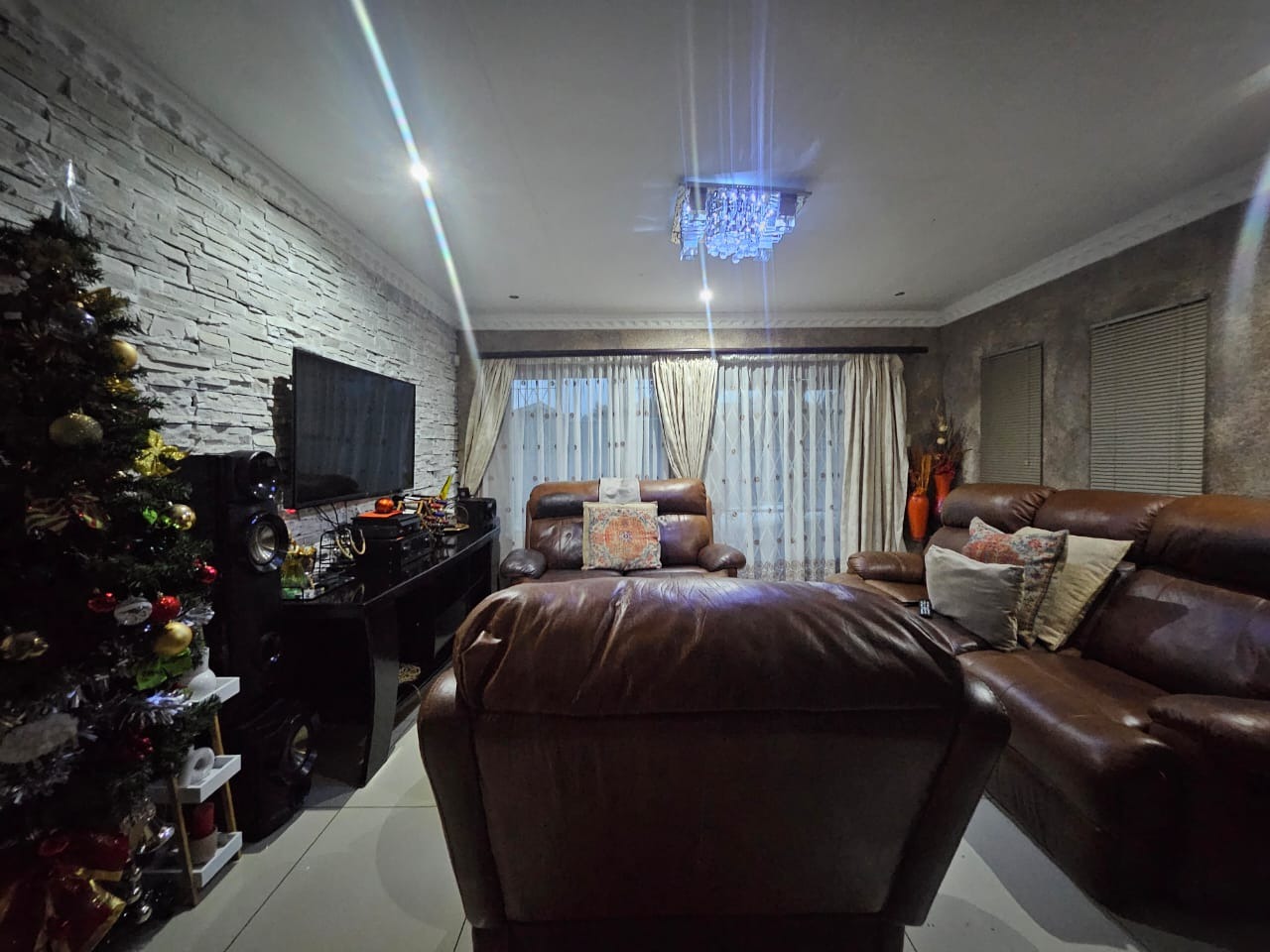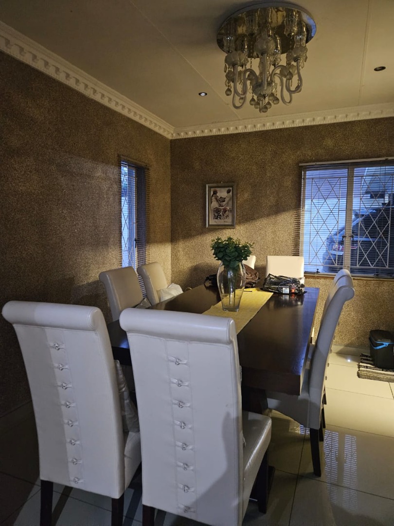 Step outside to enjoy a private garden, pet-friendly space, and a refreshing swimming pool - your own outdoor retreat. Parking is convenient with a single garage and extra parking, while security features including fencing, access gate, burglar bars, and a security gate provide peace of mind.