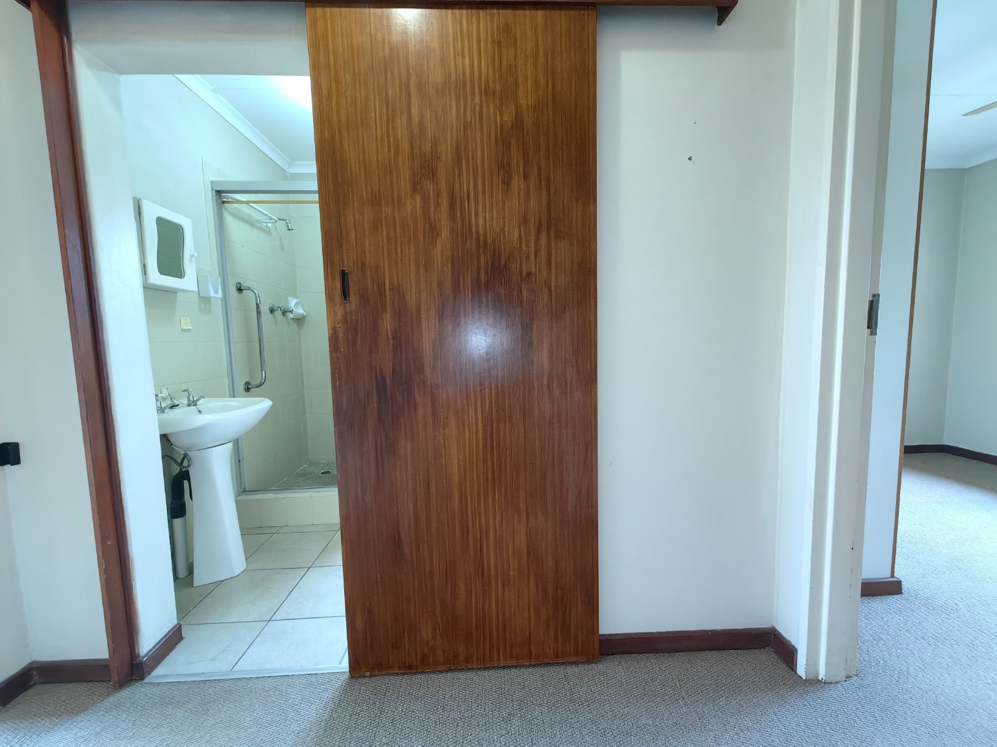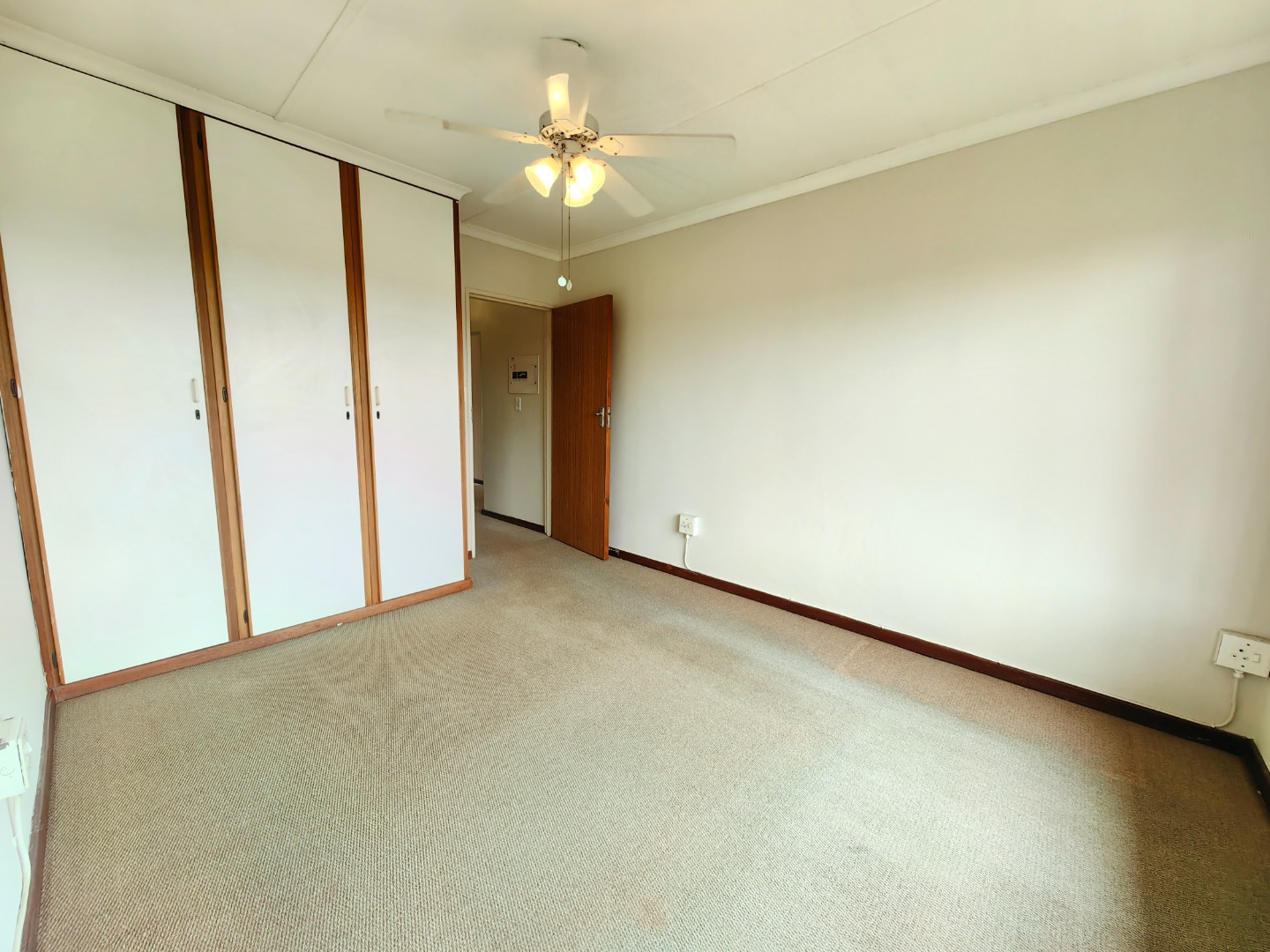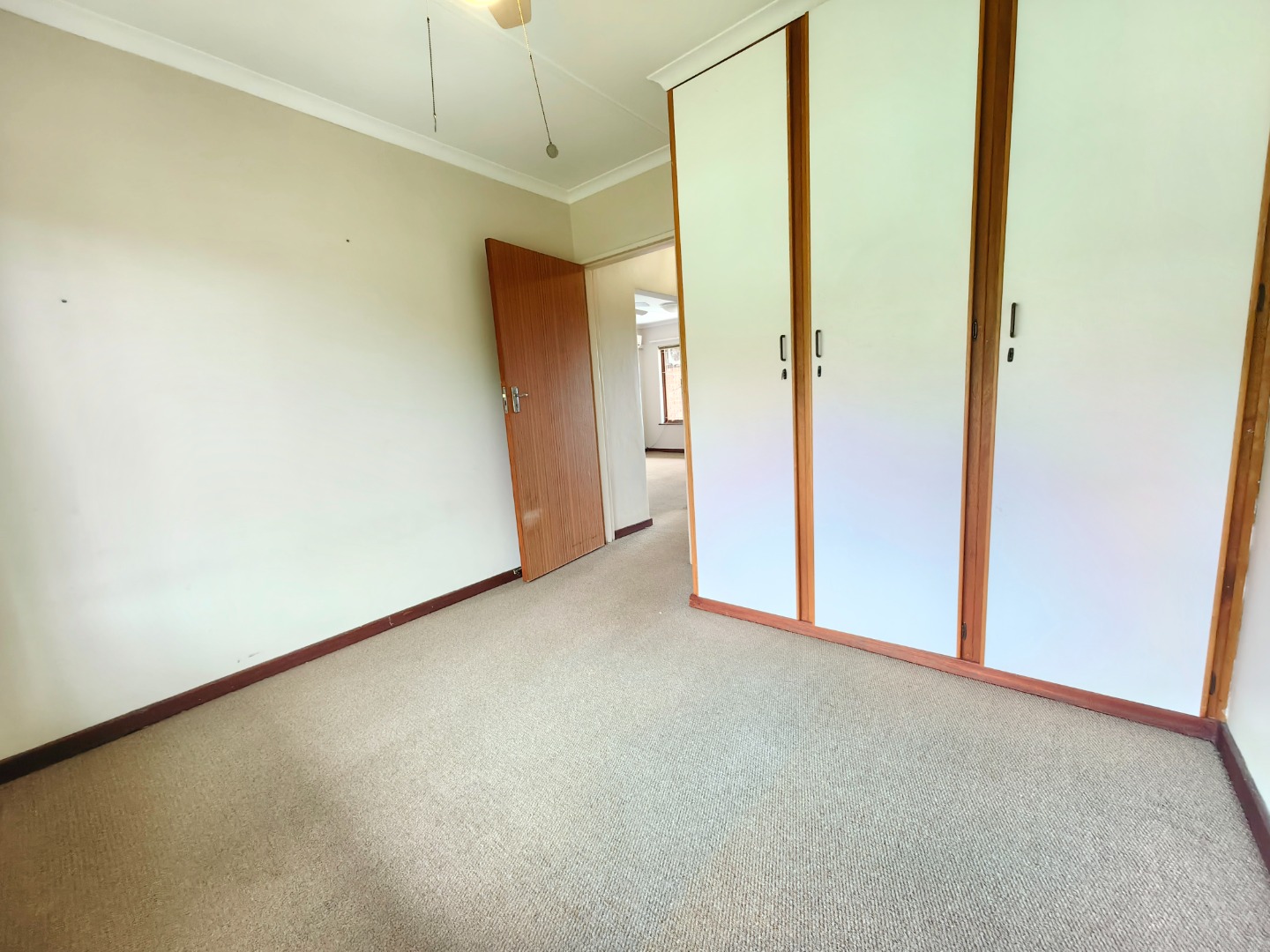 Both bedrooms are fitted with built-in cupboards, and the bathroom is well-appointed with both a bath and shower.