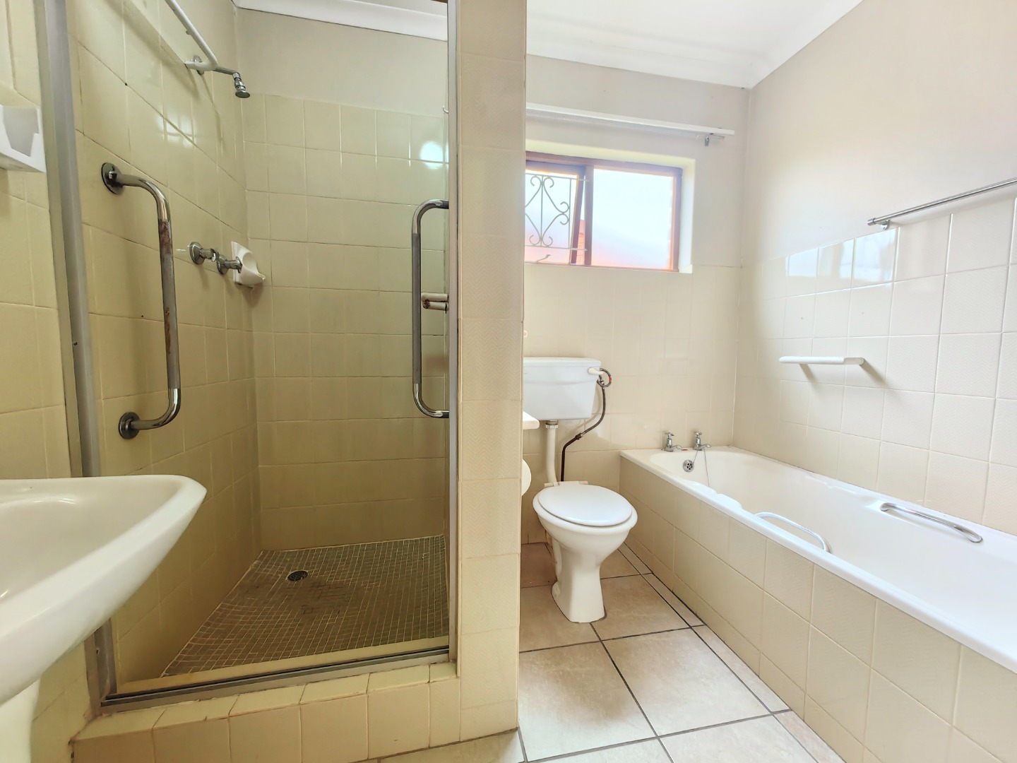 Both bedrooms are fitted with built-in cupboards, and the bathroom is well-appointed with both a bath and shower.