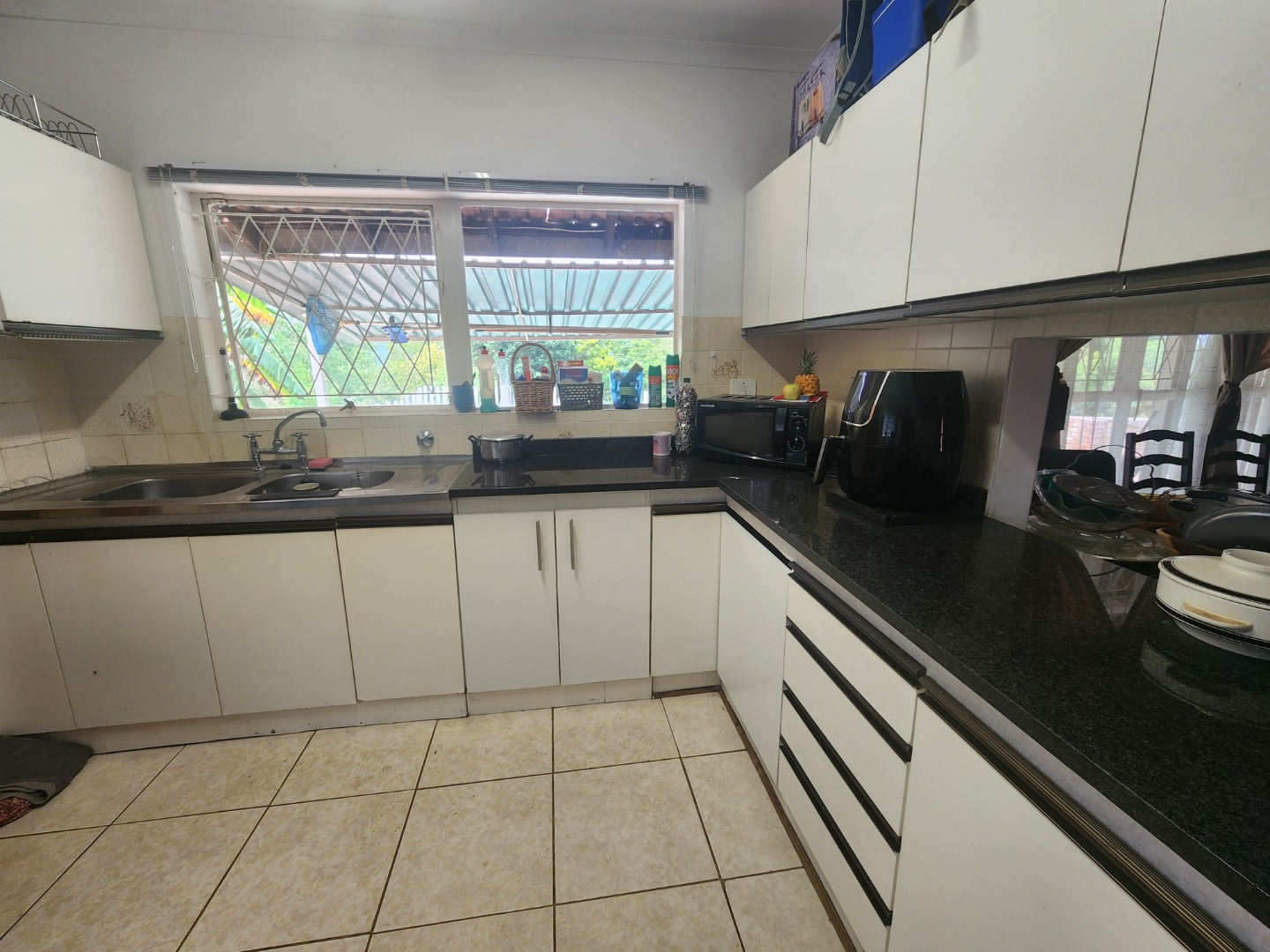 The kitchen, boasting granite countertops, a walk-in pantry, and a scullery, is a culinary paradise. Three comfortable bedrooms and two bathrooms, including a luxurious master en-suite, offer ample accommodation, with a versatile study or potential fourth bedroom.