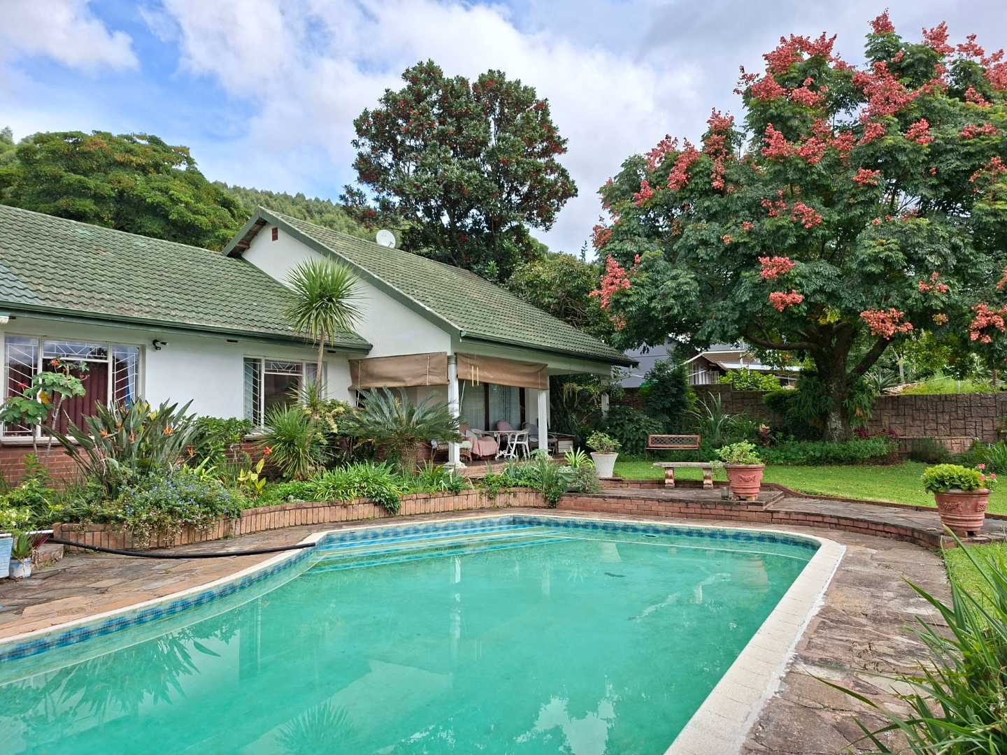 Step outside to a beautifully maintained, lush garden, complete with a large swimming pool—perfect for relaxing summer days and hosting guests.