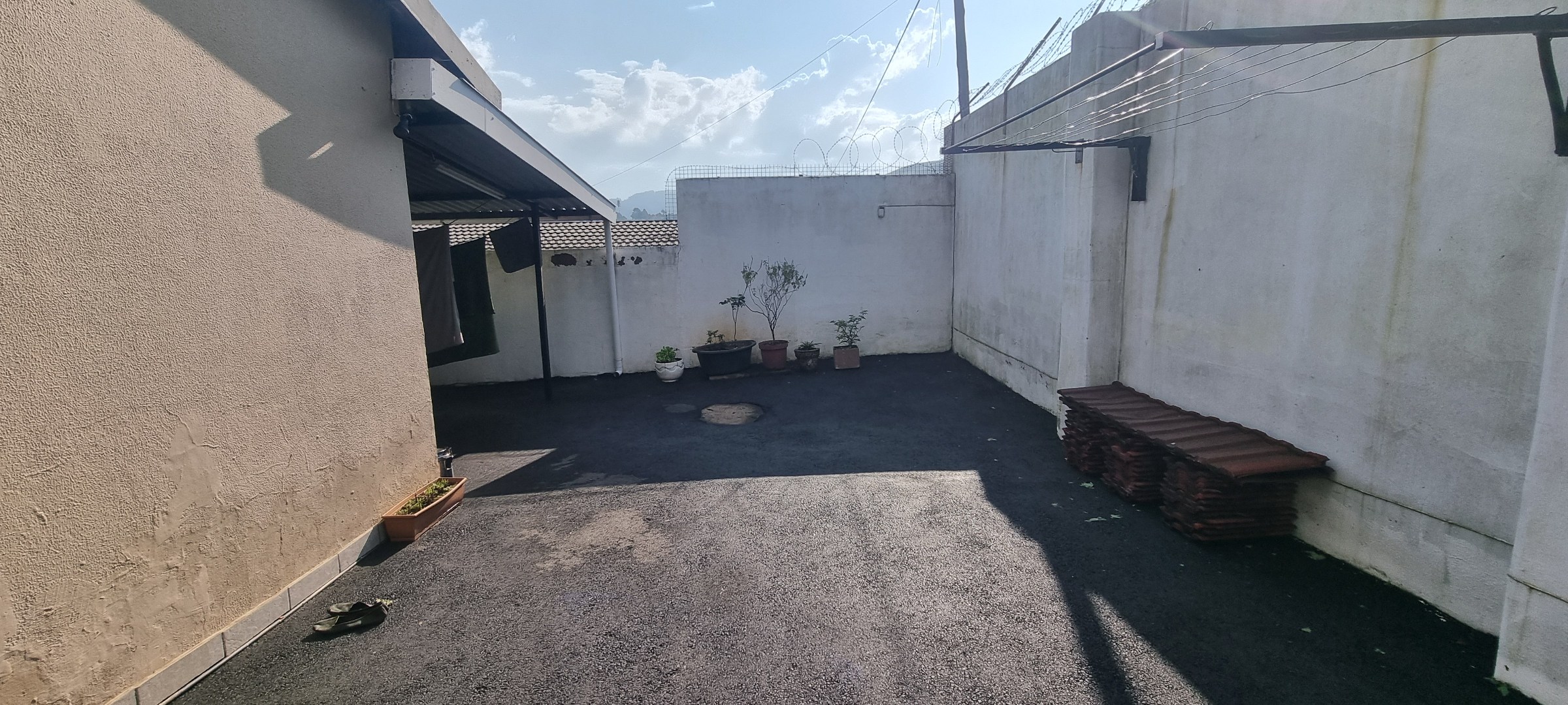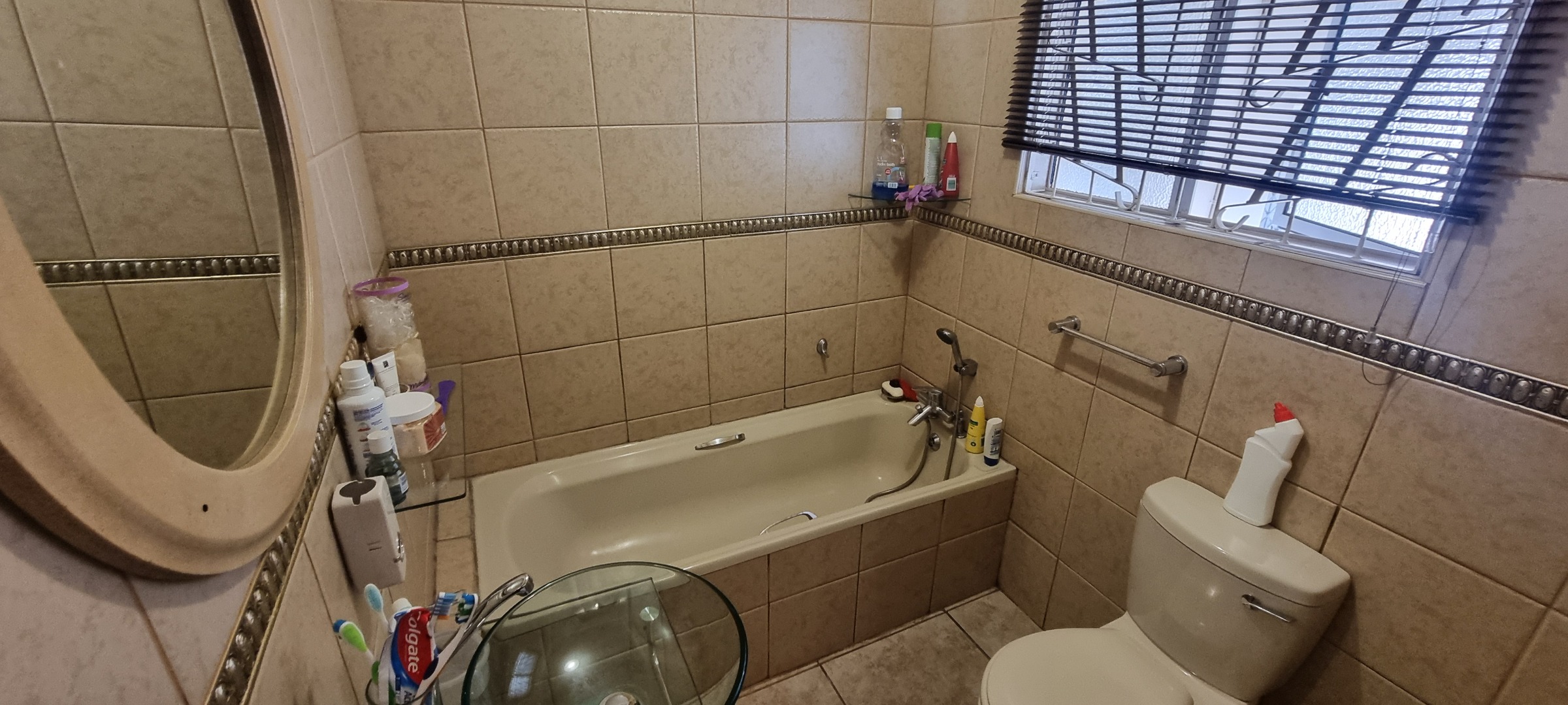The modern kitchen boasts stylish built-in cupboards, an oven, hob, and extractor, plus a pantry for extra storage. The home is fully tiled throughout for easy maintenance.