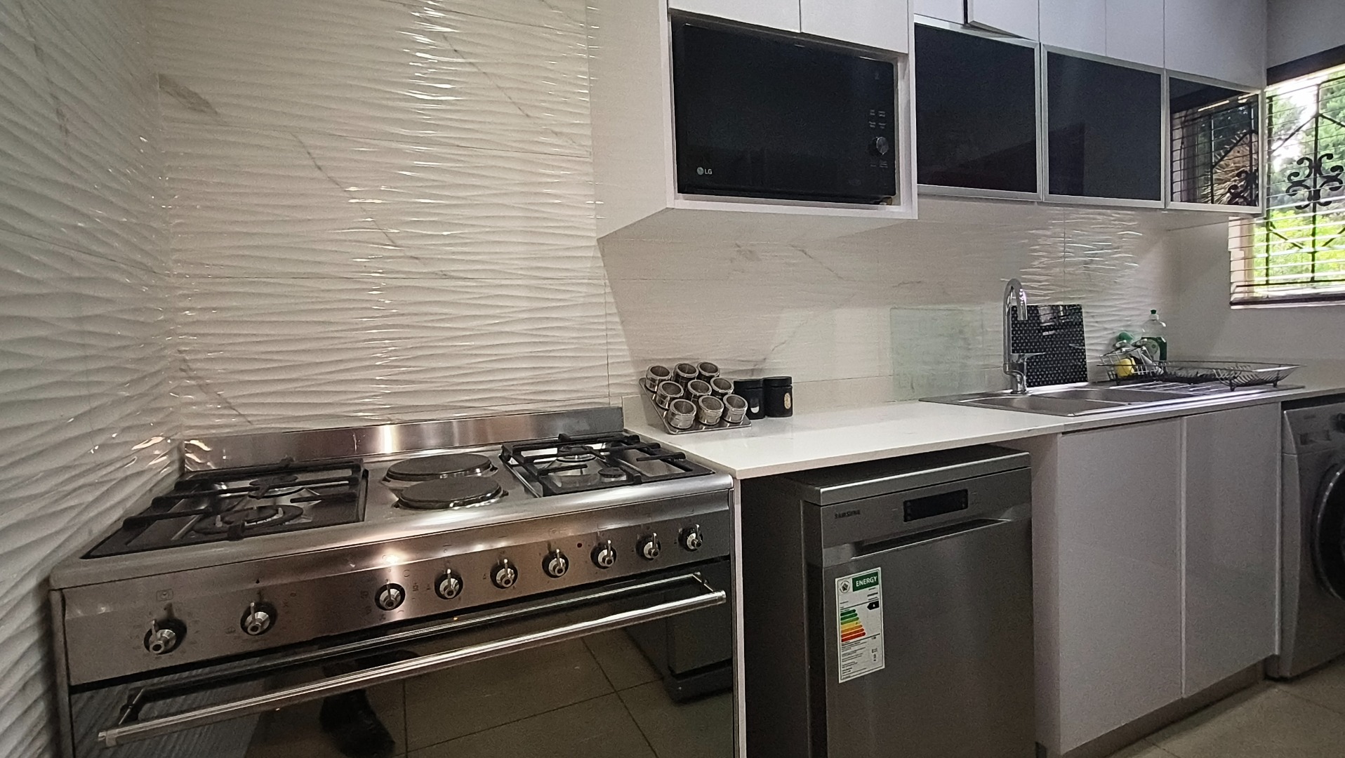 Impeccably designed for modern living, this 4 bedroom family home boasts a fully fitted kitchen, spacious lounge, and TV lounge. The property features modern ensuite and general bathrooms, ideal for family living. With a fantastic entertainment area complete with a lapa, this home is perfect for hosting gatherings.
