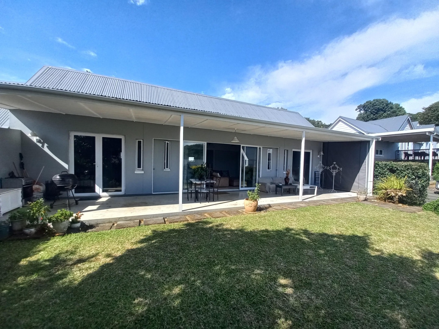 This sophisticated and secure simplex boasts modern amenities including 24-hour security, two bedrooms with individual en-suite bathrooms, an open-plan kitchen and living area, and high ceilings throughout. The bedrooms and living space seamlessly connect to a front veranda and private fenced garden. Additionally, the property features a scullery with a spacious walk-in pantry and an automated lock-up garage. Embrace a refined lifestyle in this elegantly designed home with top-notch security measures in place.
