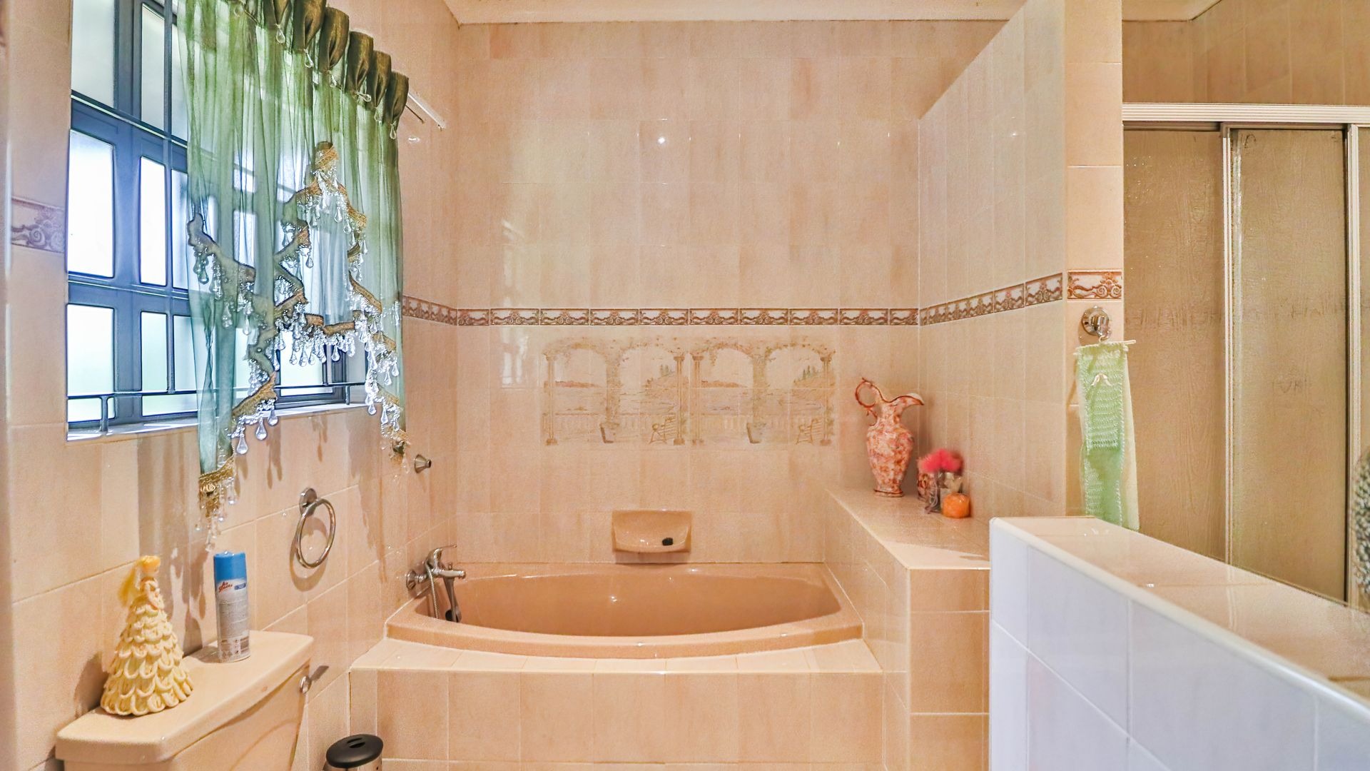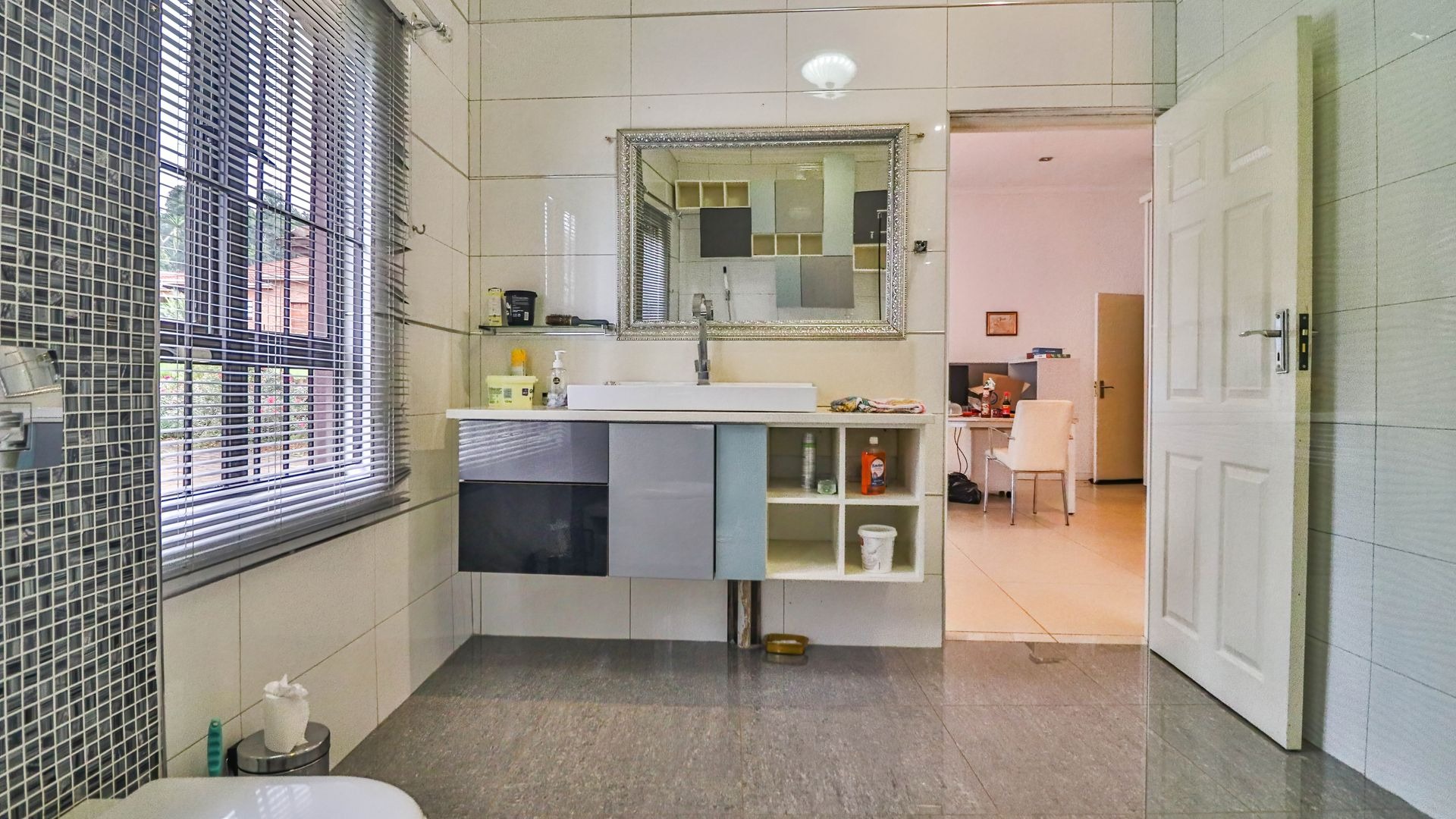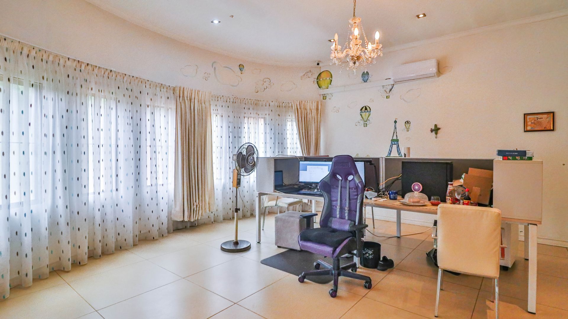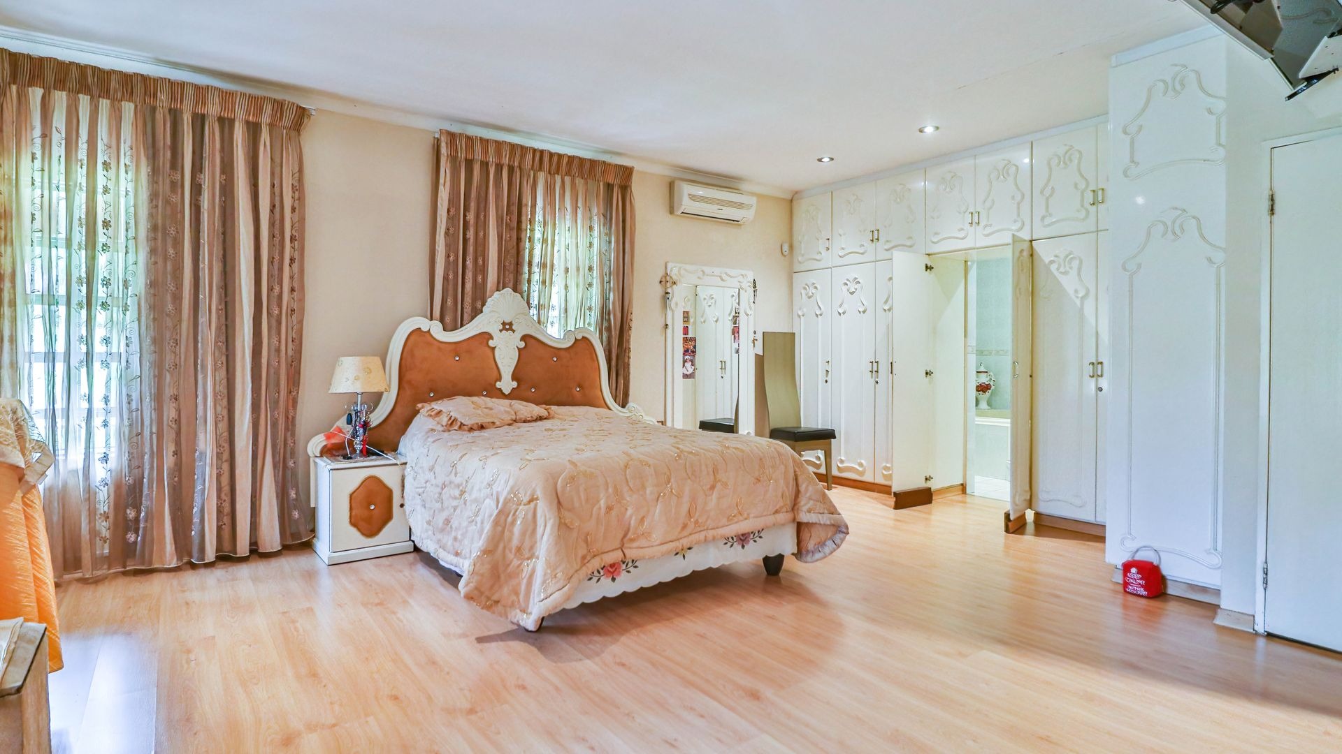 The main home features five impressive double-volume bedrooms, including two with en-suite bathrooms. The master suite boasts a luxurious Jacuzzi for added indulgence. A common bathroom and guest toilet provide convenience for family and guests.