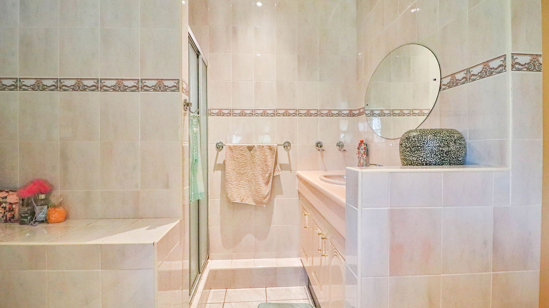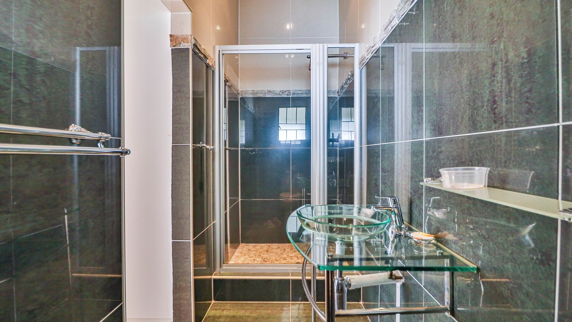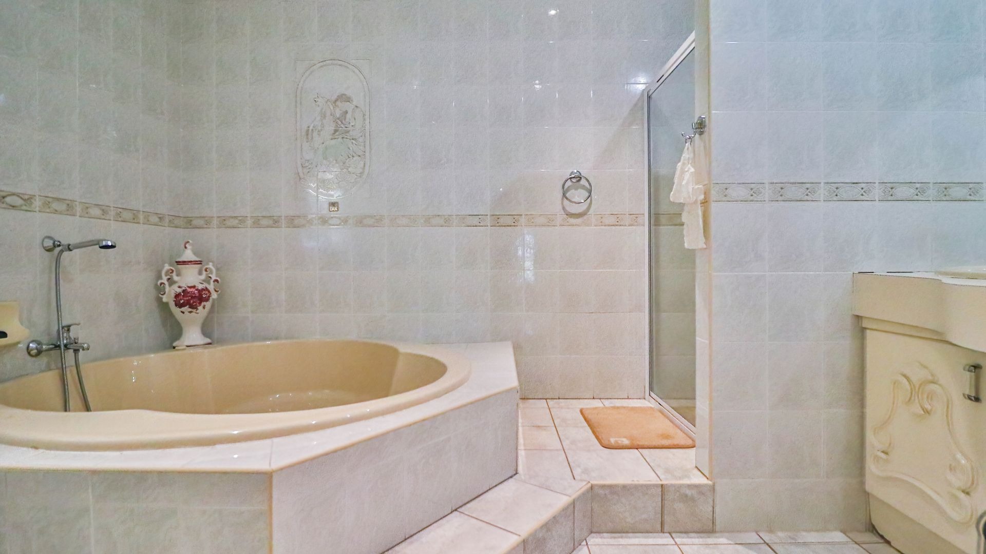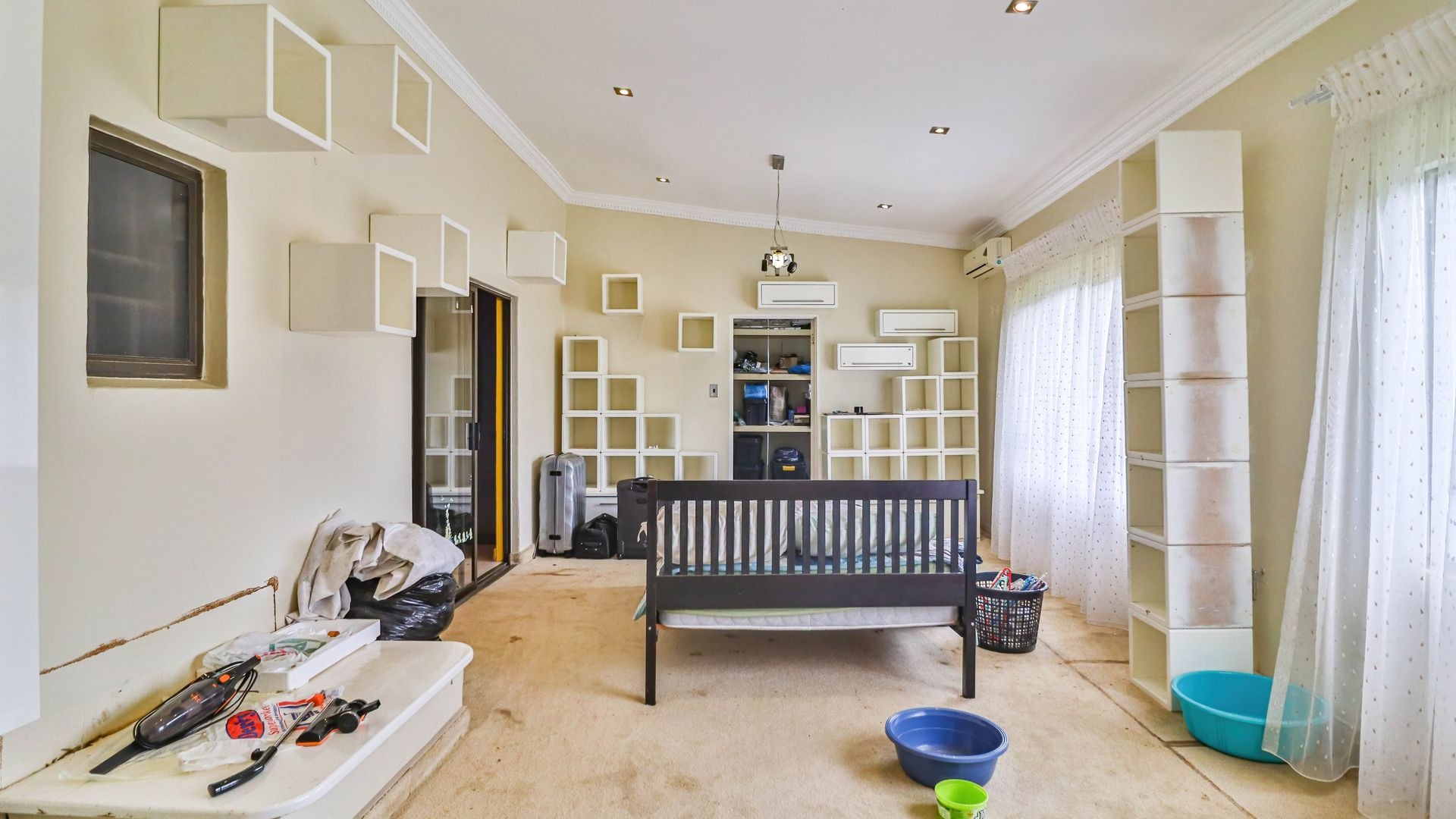 The main home features five impressive double-volume bedrooms, including two with en-suite bathrooms. The master suite boasts a luxurious Jacuzzi for added indulgence. A common bathroom and guest toilet provide convenience for family and guests.