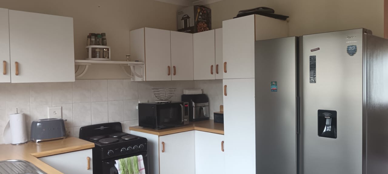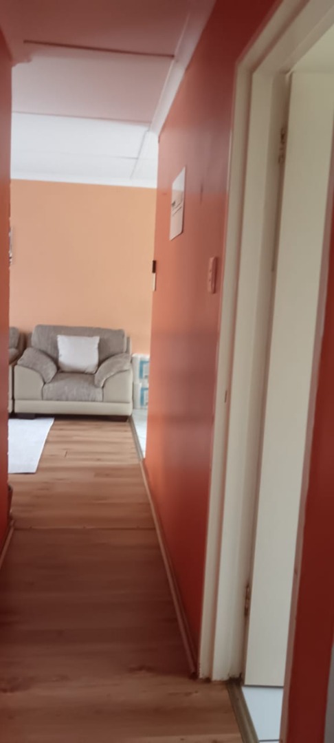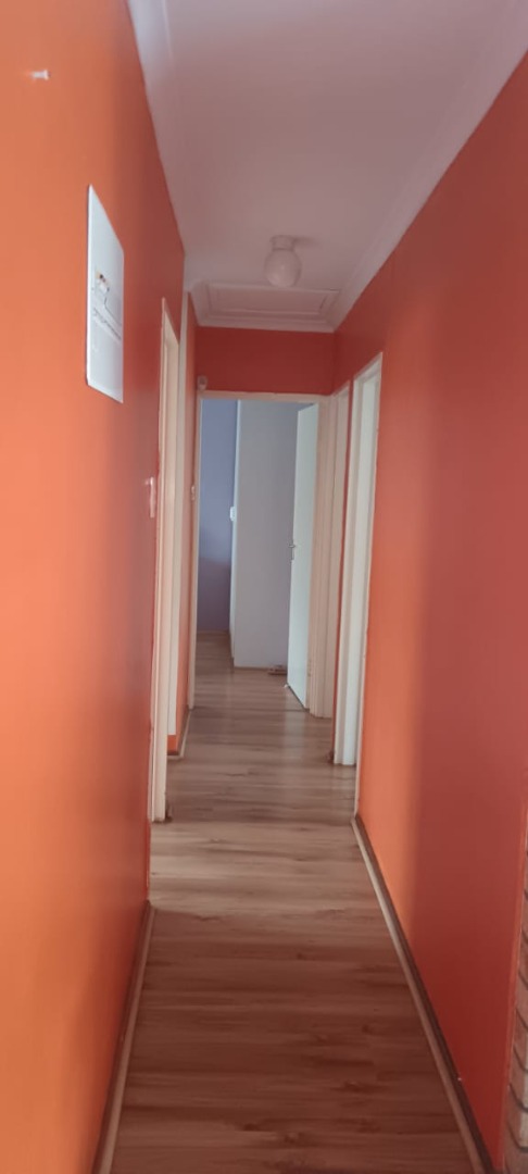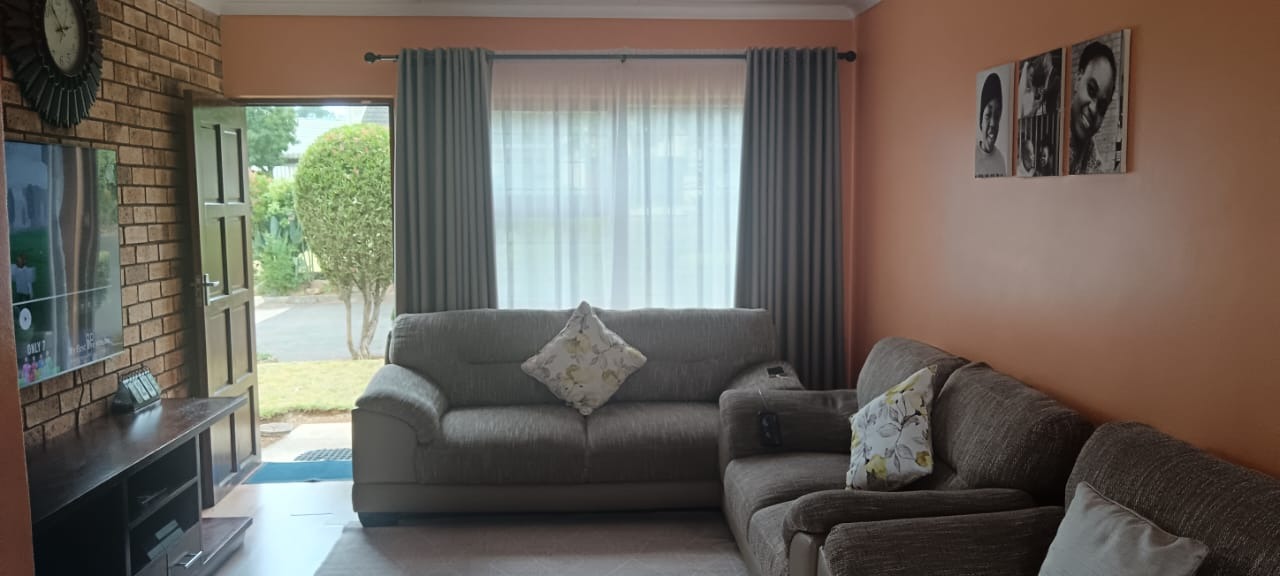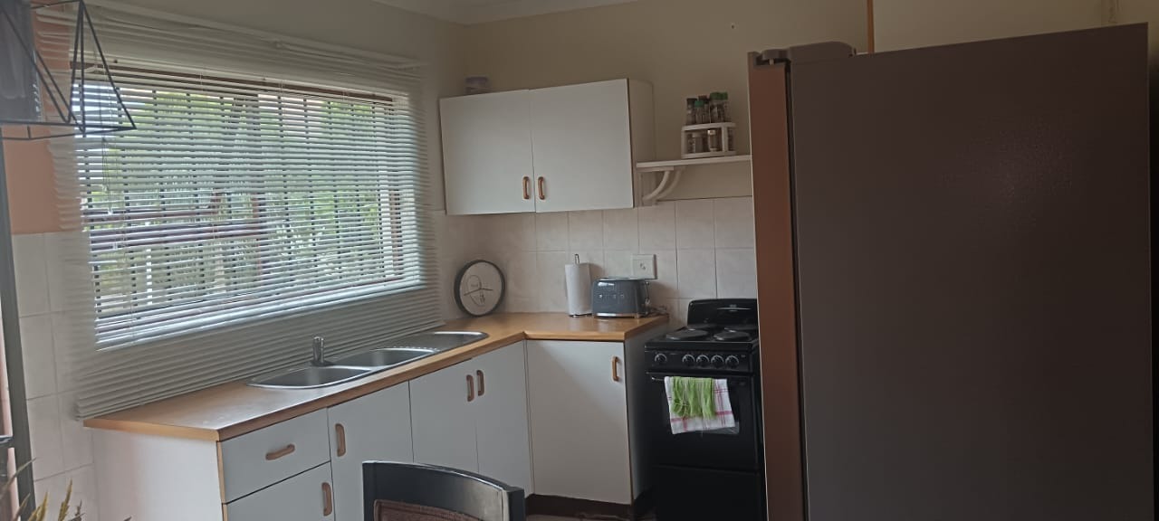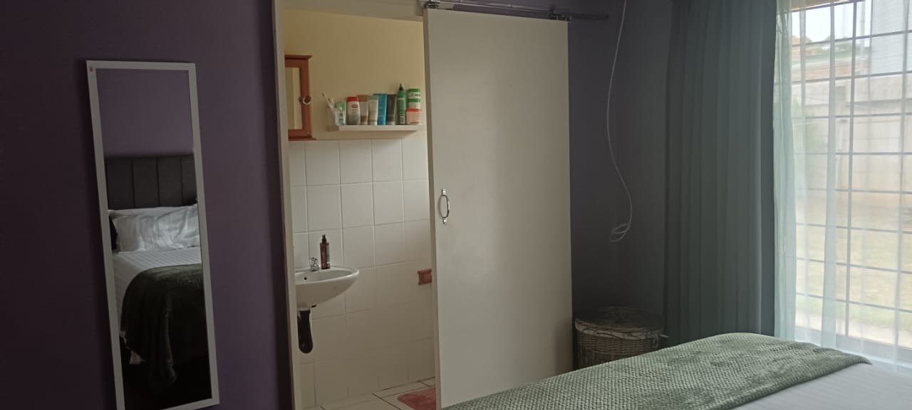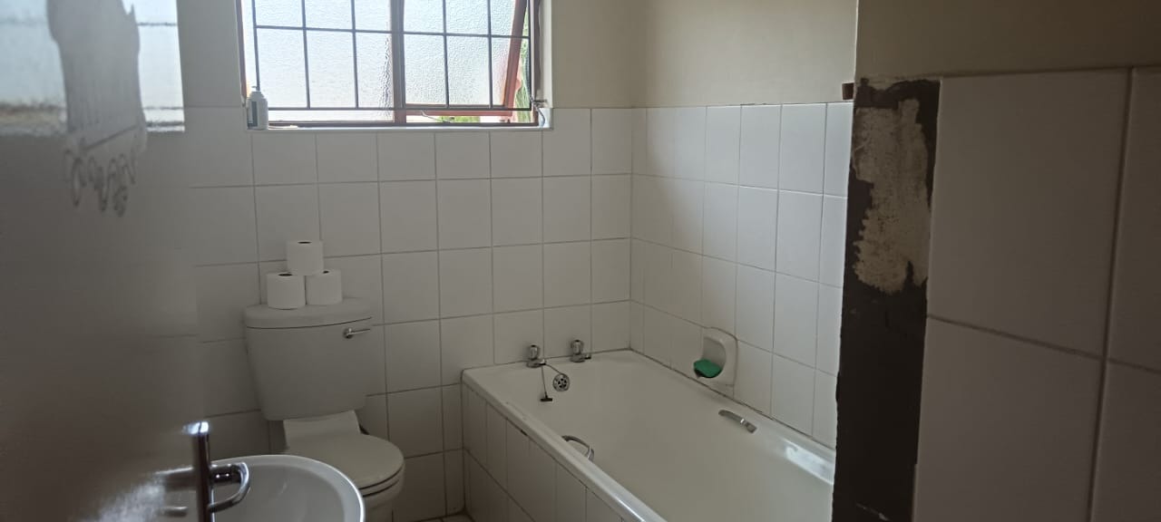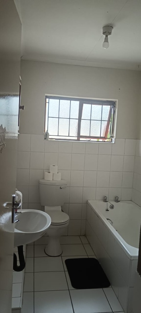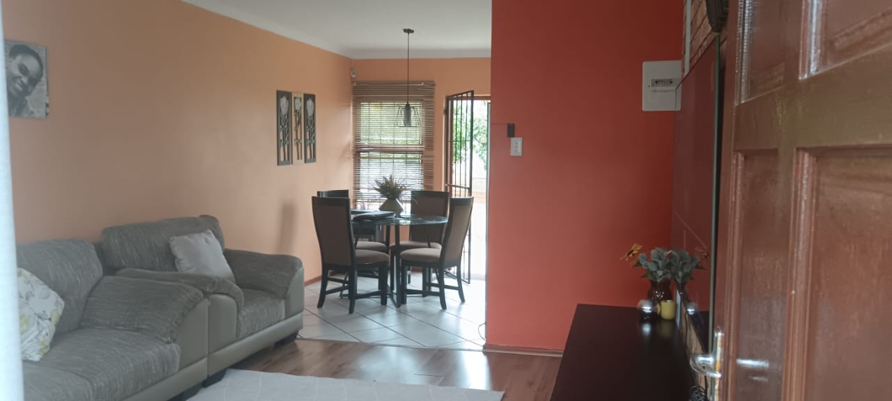 The property offers three bedrooms, with the main bedroom featuring an en-suite shower and toilet. The remaining two bedrooms share a bathroom with a bathtub and toilet. There is a spacious lounge, dining room, and a fully fitted kitchen, all leading out to a large, beautiful backyard—perfect for family living or future expansion.