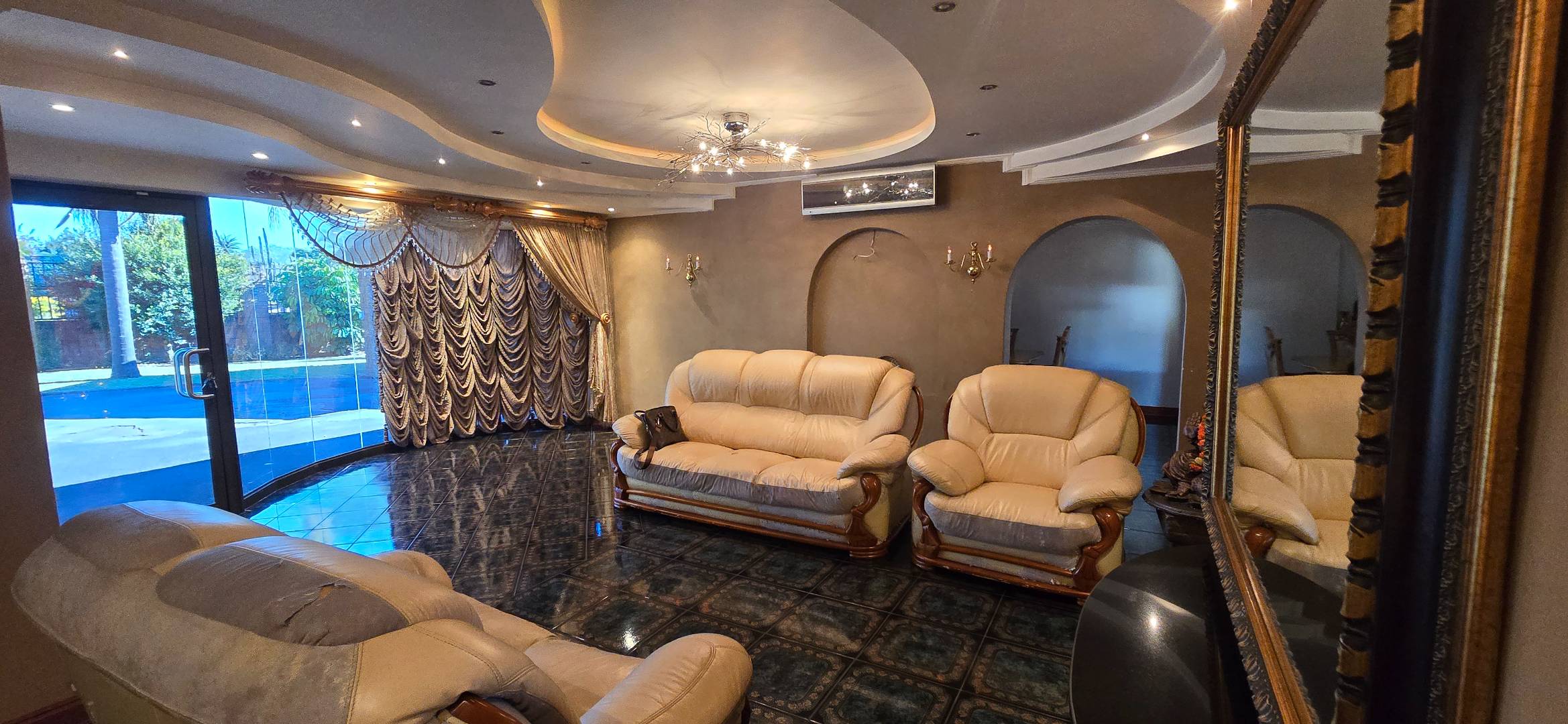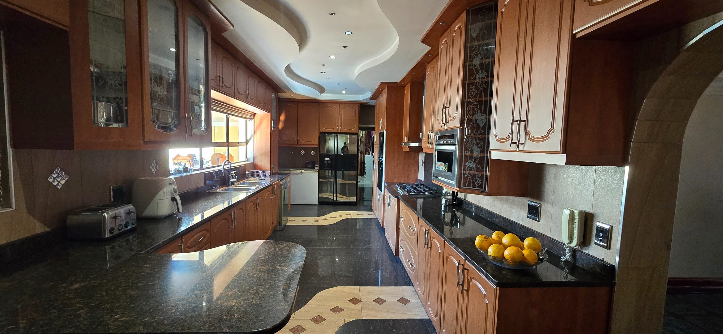 Set on a level 1858m² erf, this immaculate 4-bedroom home blends luxury and functionality in the heart of Cleland. Boasting a modern layout, it features a granite-top designer kitchen and a seamless flow to the spacious 2 lounges with cladded fireplace.