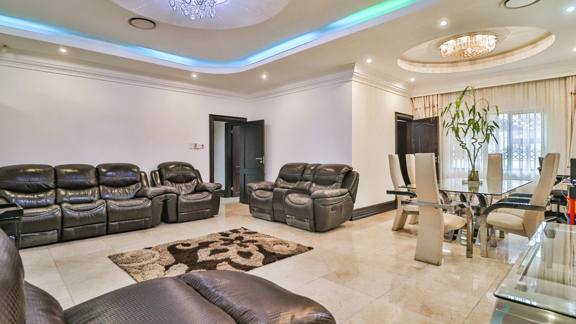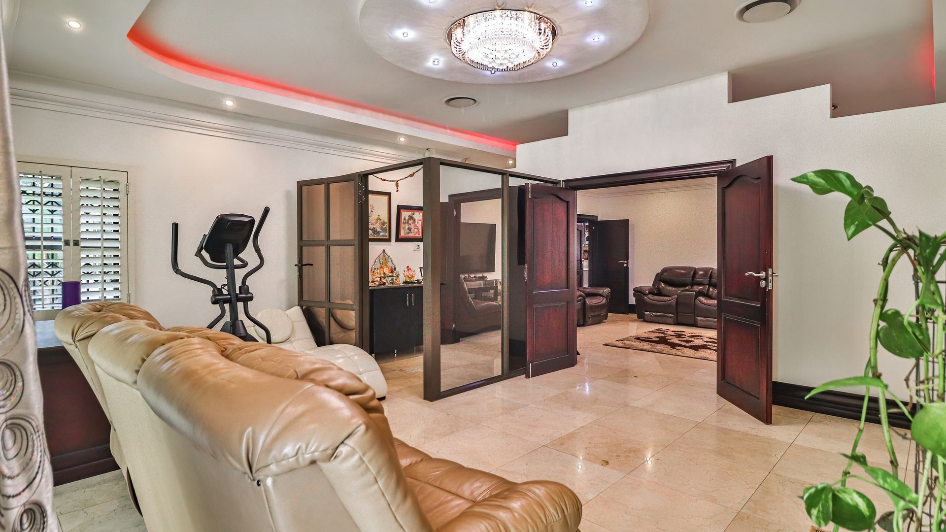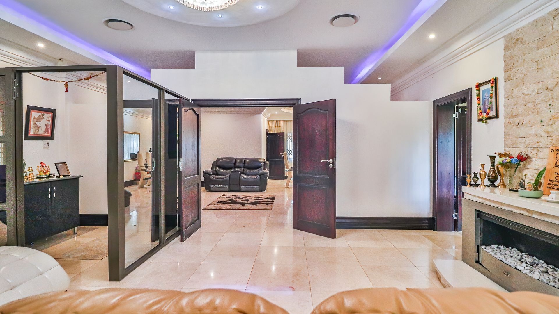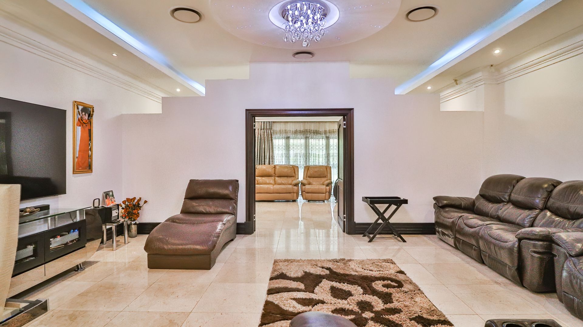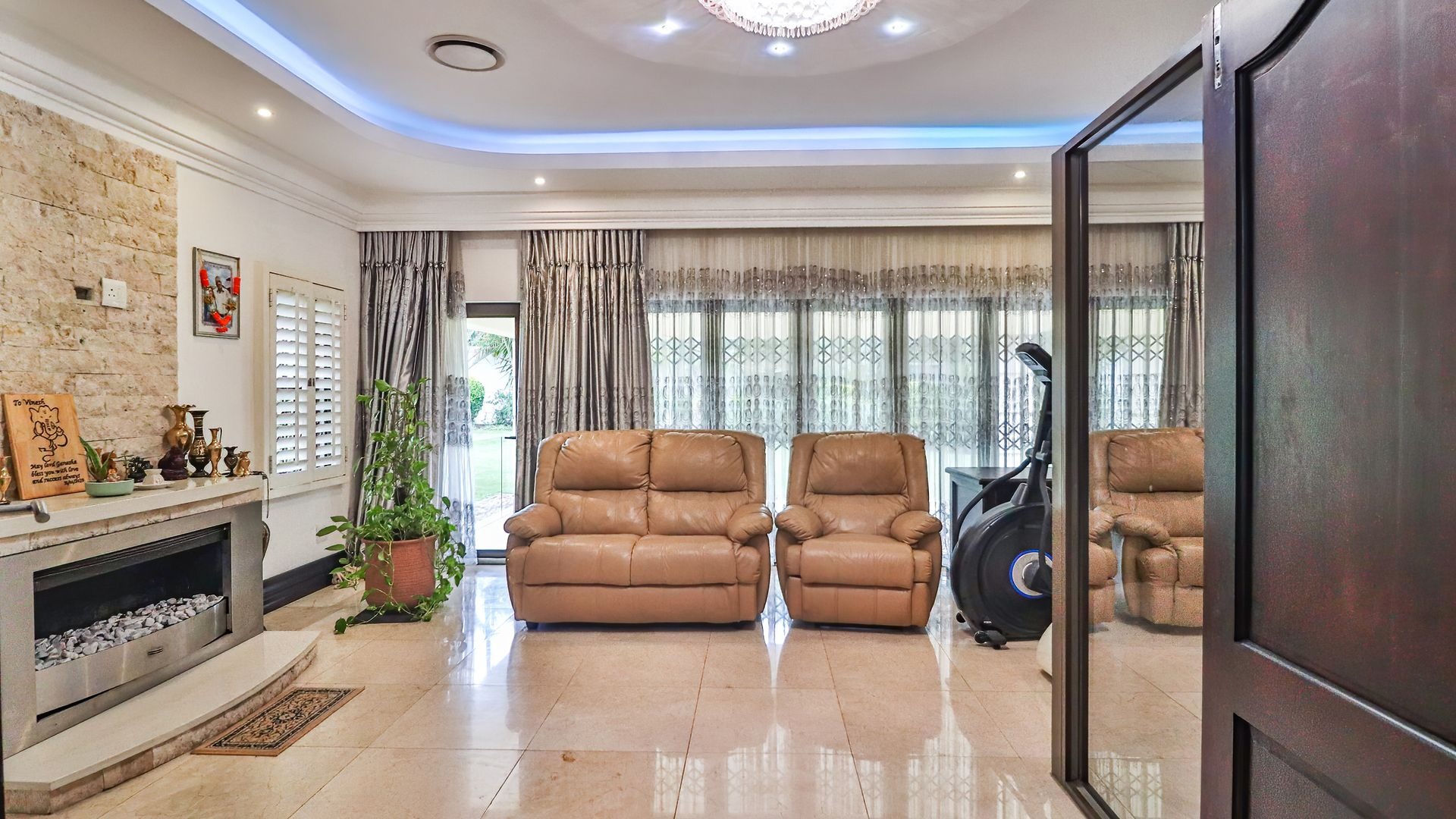 This exceptional residential property offers a blend of comfort, style, and expansive outdoor living. The home immediately impresses with its well-maintained exterior, featuring a classic tiled roof, light-coloured façade, and a secure entrance with an ornate gate. A spacious paved driveway leads to an attached double garage, complemented by additional parking, all set within a lush tropical garden that provides privacy and a welcoming ambience.