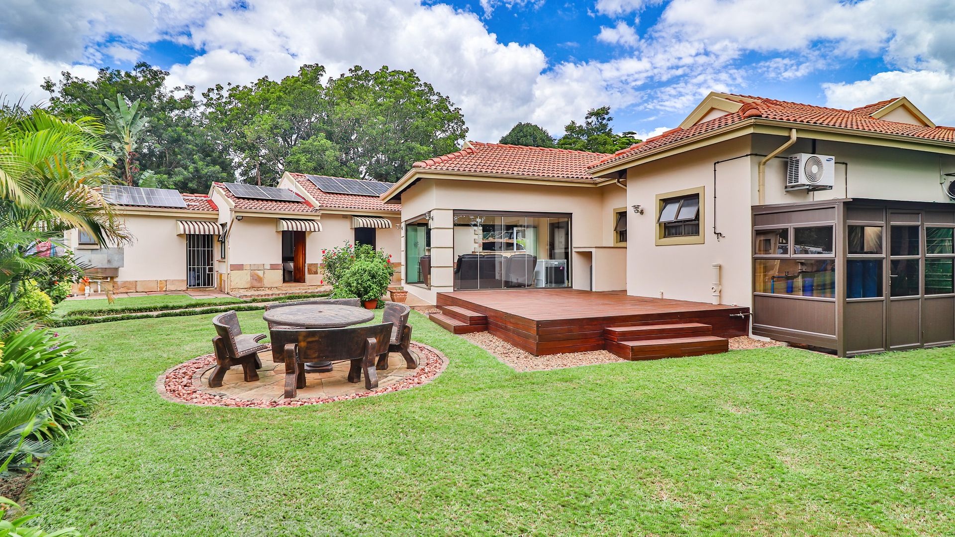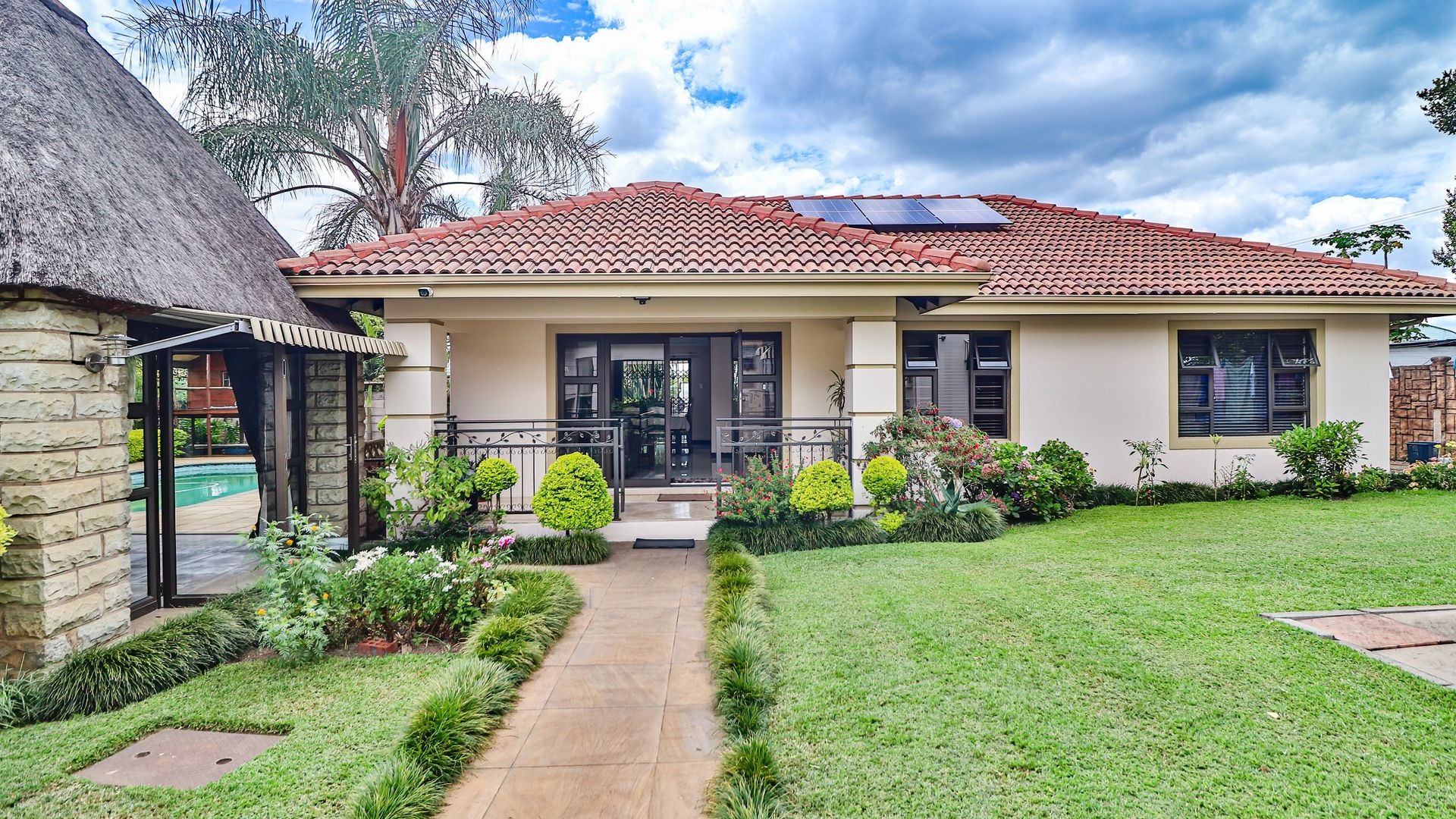 A notable addition is the second house on the property, offering flexible living arrangements. Sustainability and security are paramount, with the home equipped with solar panels for energy efficiency and a borehole for water resilience.