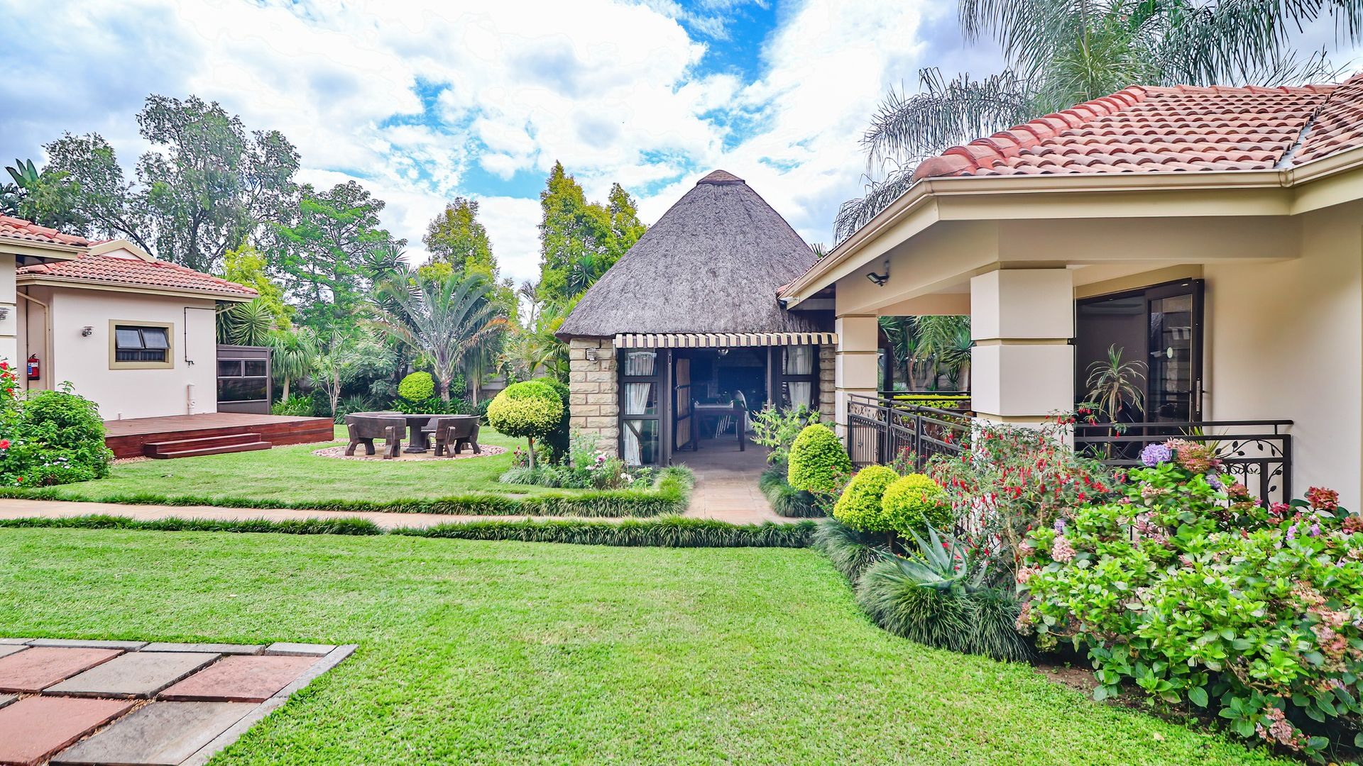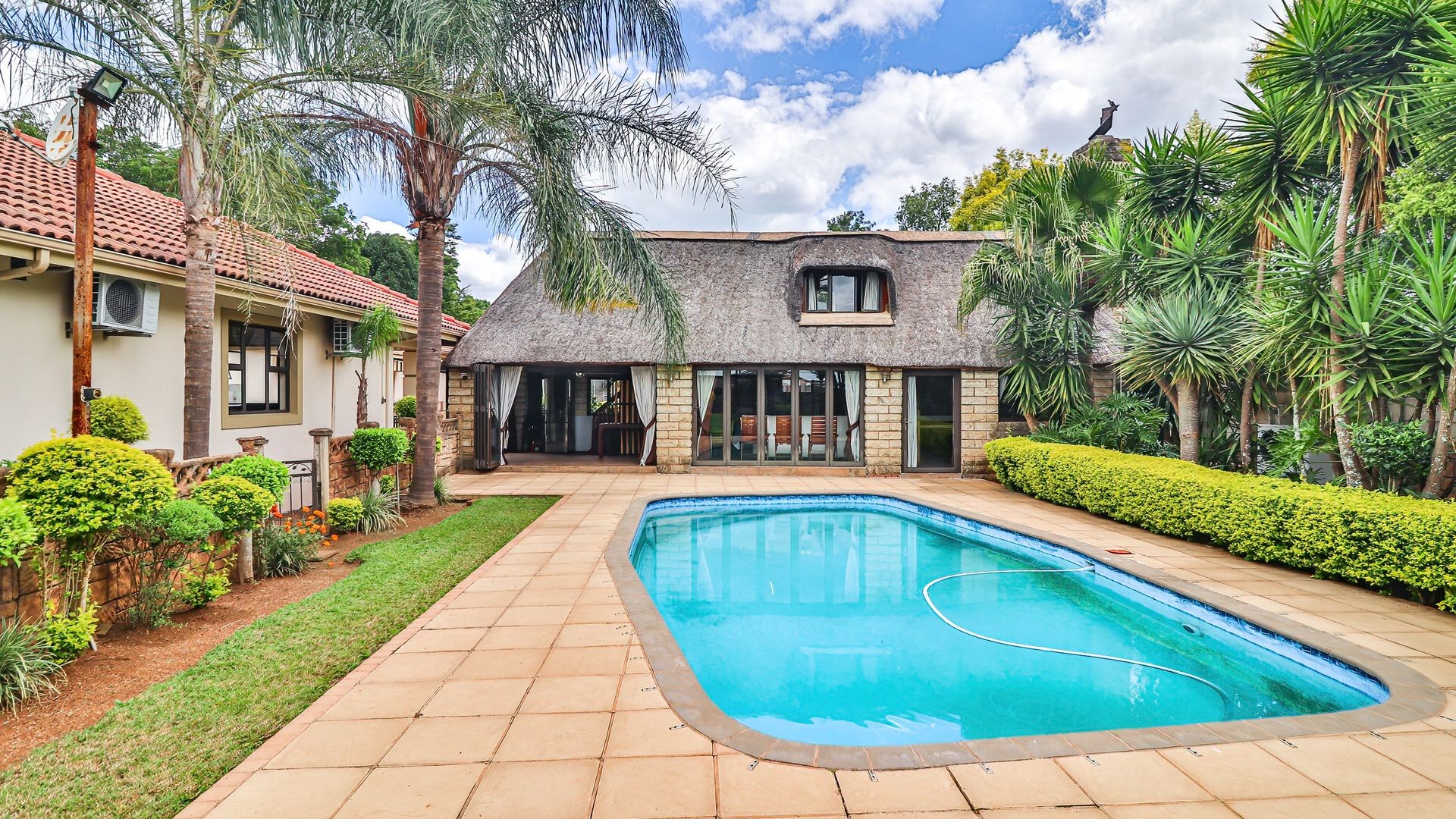 The property also features a charming thatched-roof entertainment lapa, complete with stairs leading up to a spacious loft - an ideal space for entertaining, relaxing, or even a creative retreat.