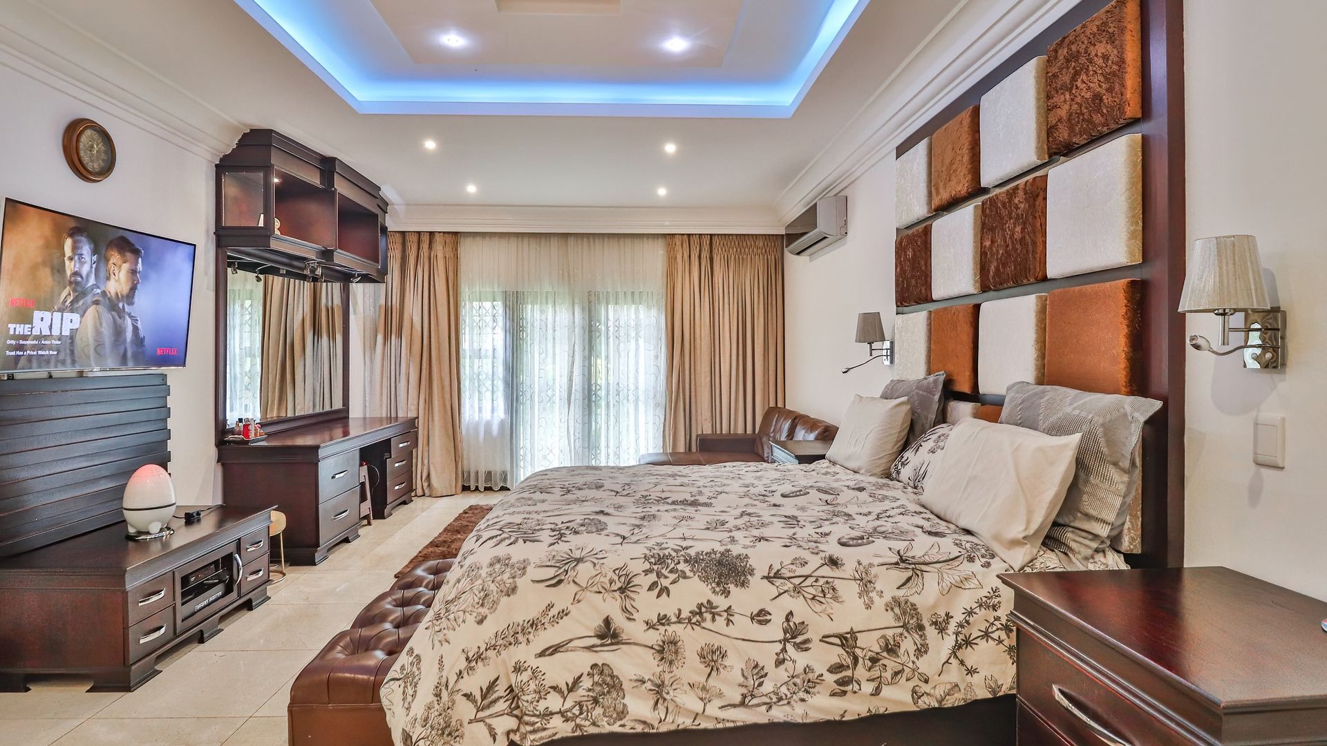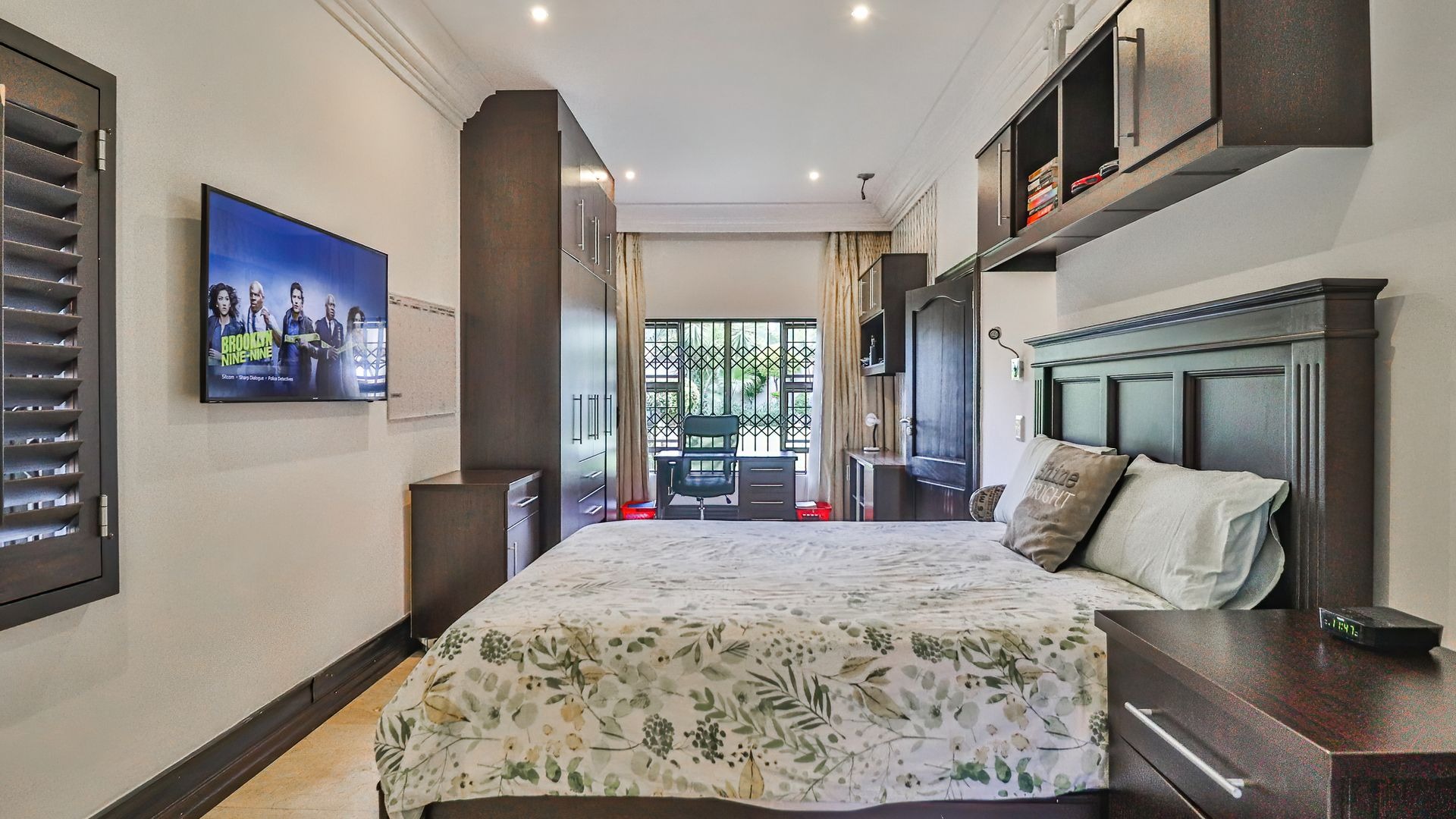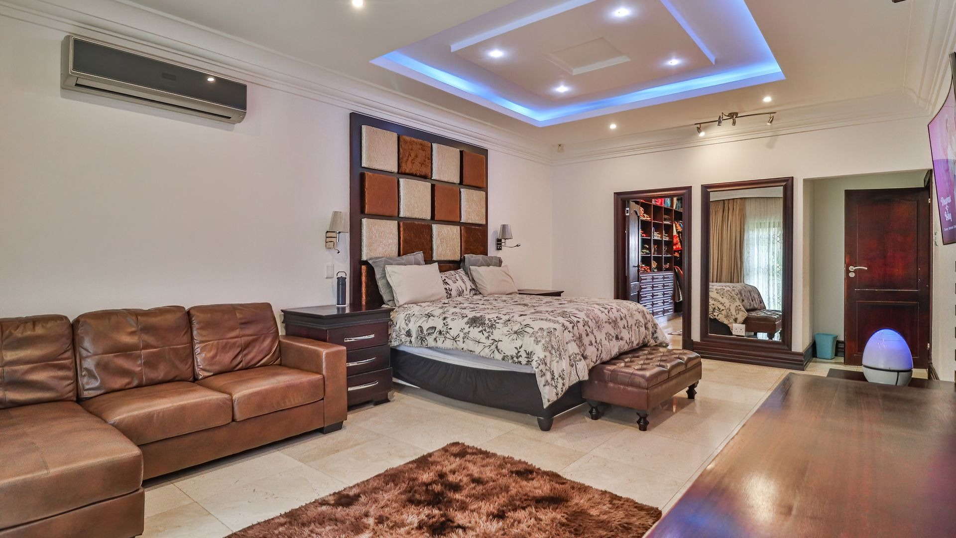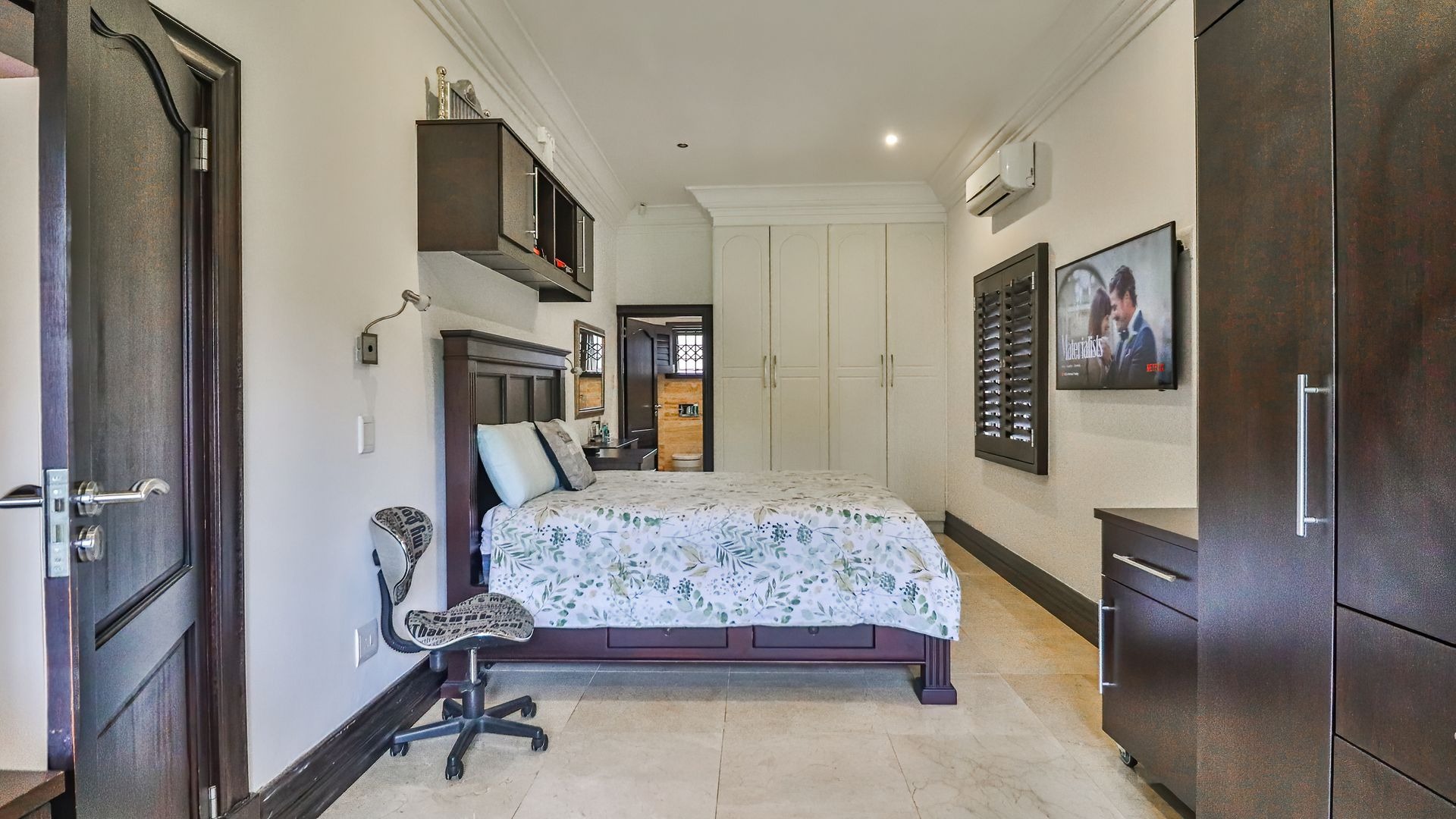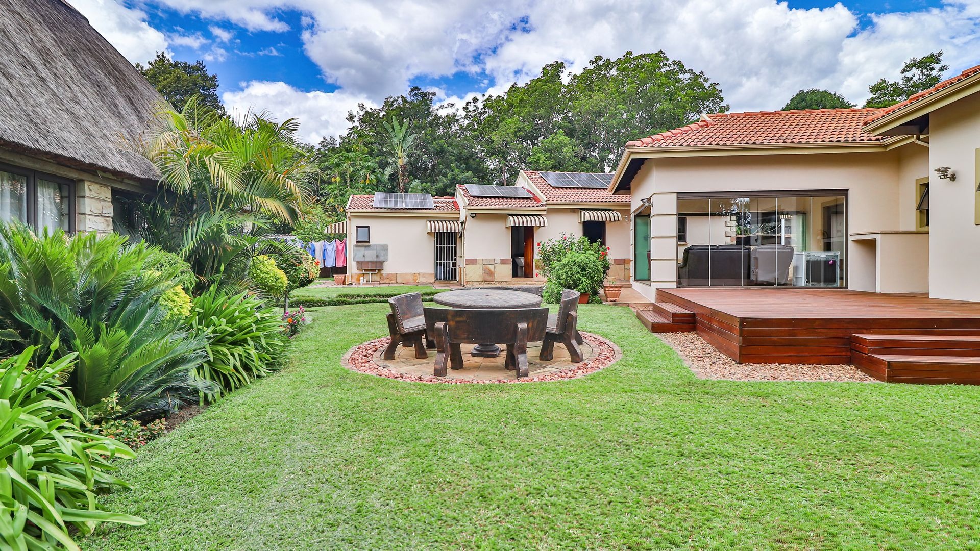 A notable addition is the second house on the property, offering flexible living arrangements. Sustainability and security are paramount, with the home equipped with solar panels for energy efficiency and a borehole for water resilience.