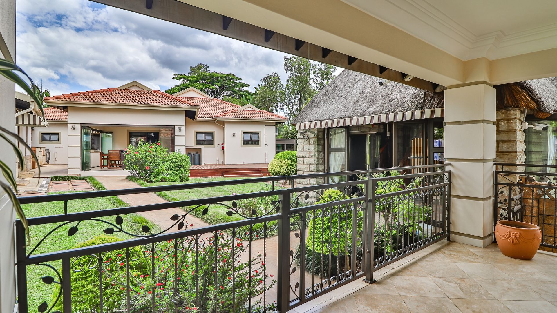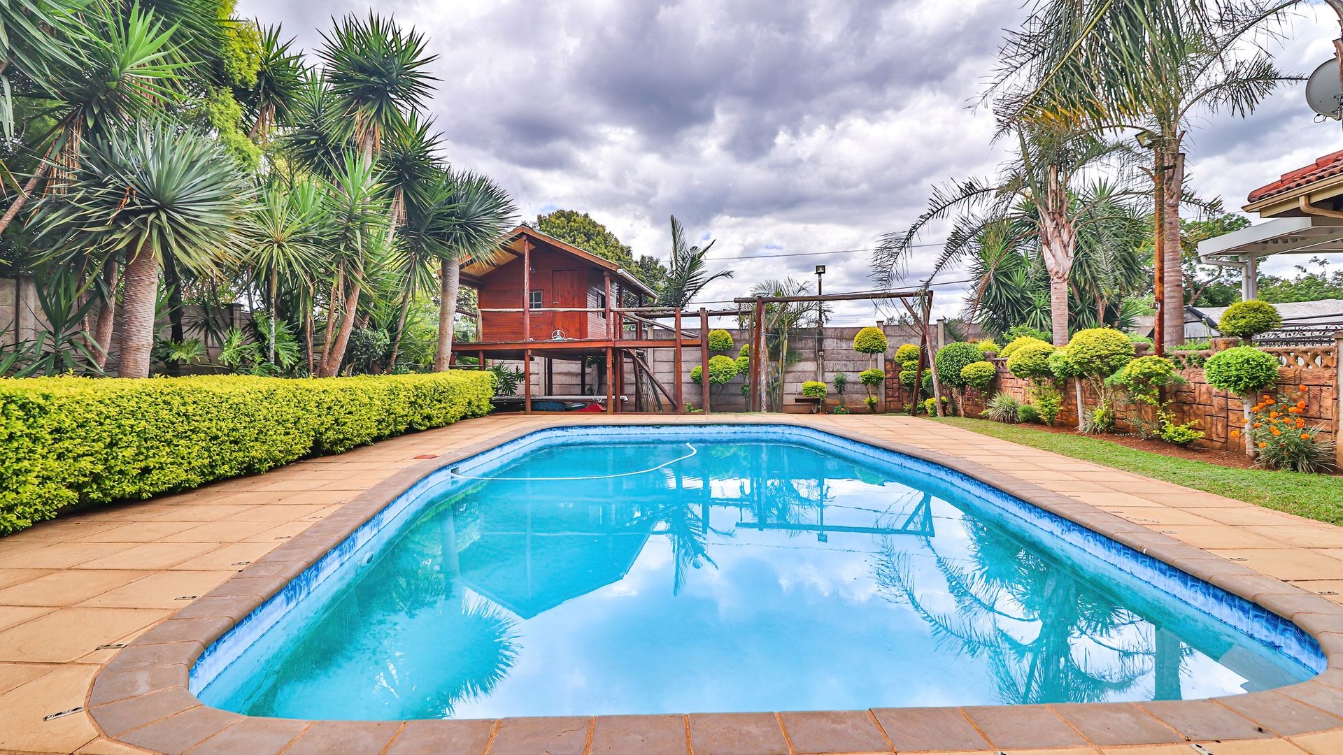 Outdoor living is a true highlight, with an expansive 2,235m2 erf offering a meticulously maintained garden and breathtaking panoramic views. Enjoy leisurely days by the inviting swimming pool, entertain guests on the spacious wooden deck, or relax on the modern covered patio, complete with glass railings and large sliding doors that create an effortless indoor-outdoor flow.