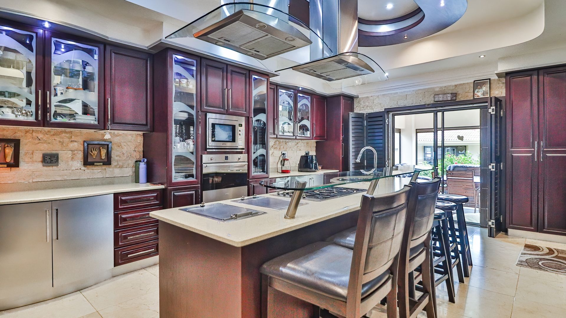 - Huge thatched entertainment area featuring a spacious loft, opening onto the pool and jungle gym.