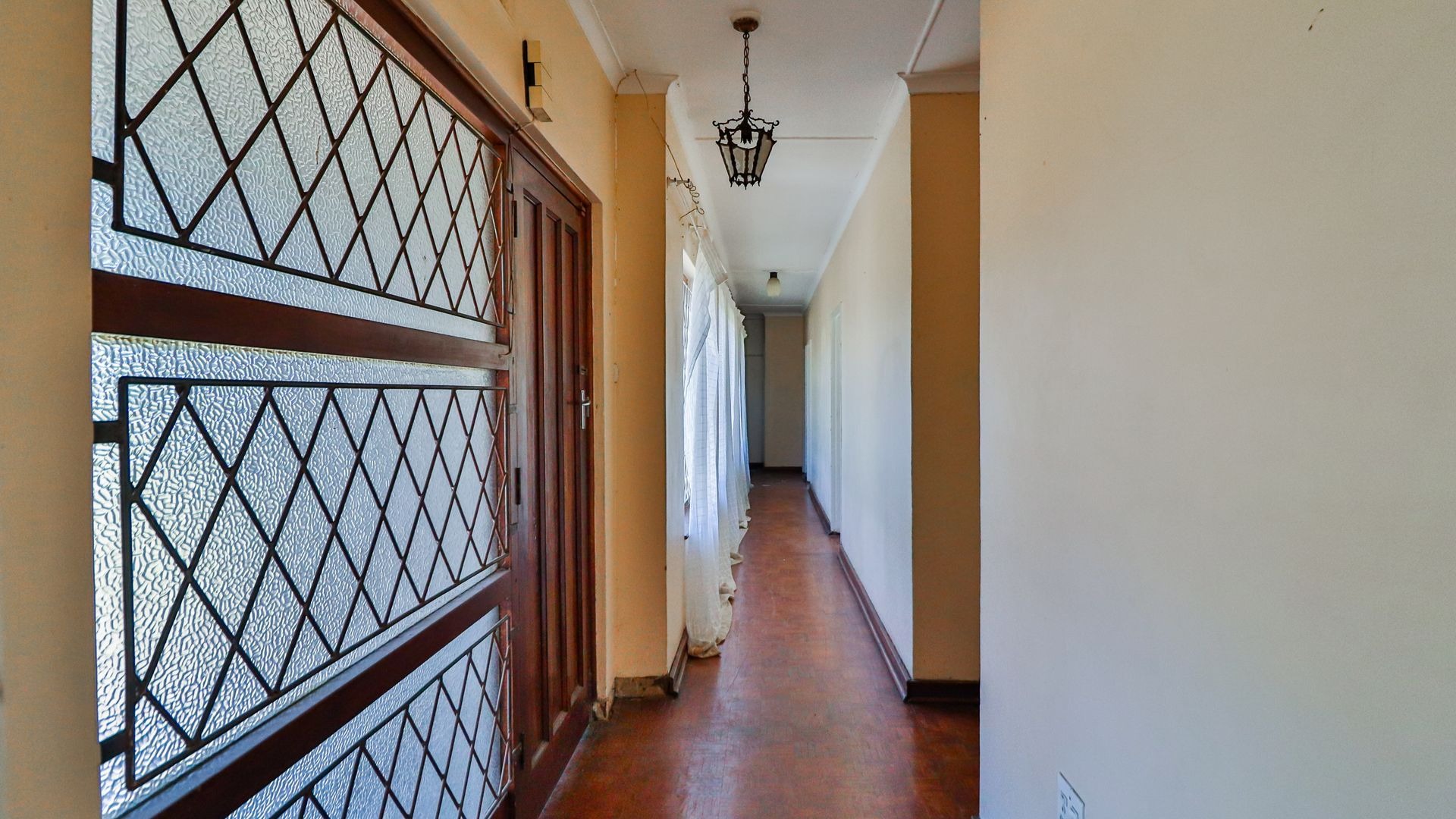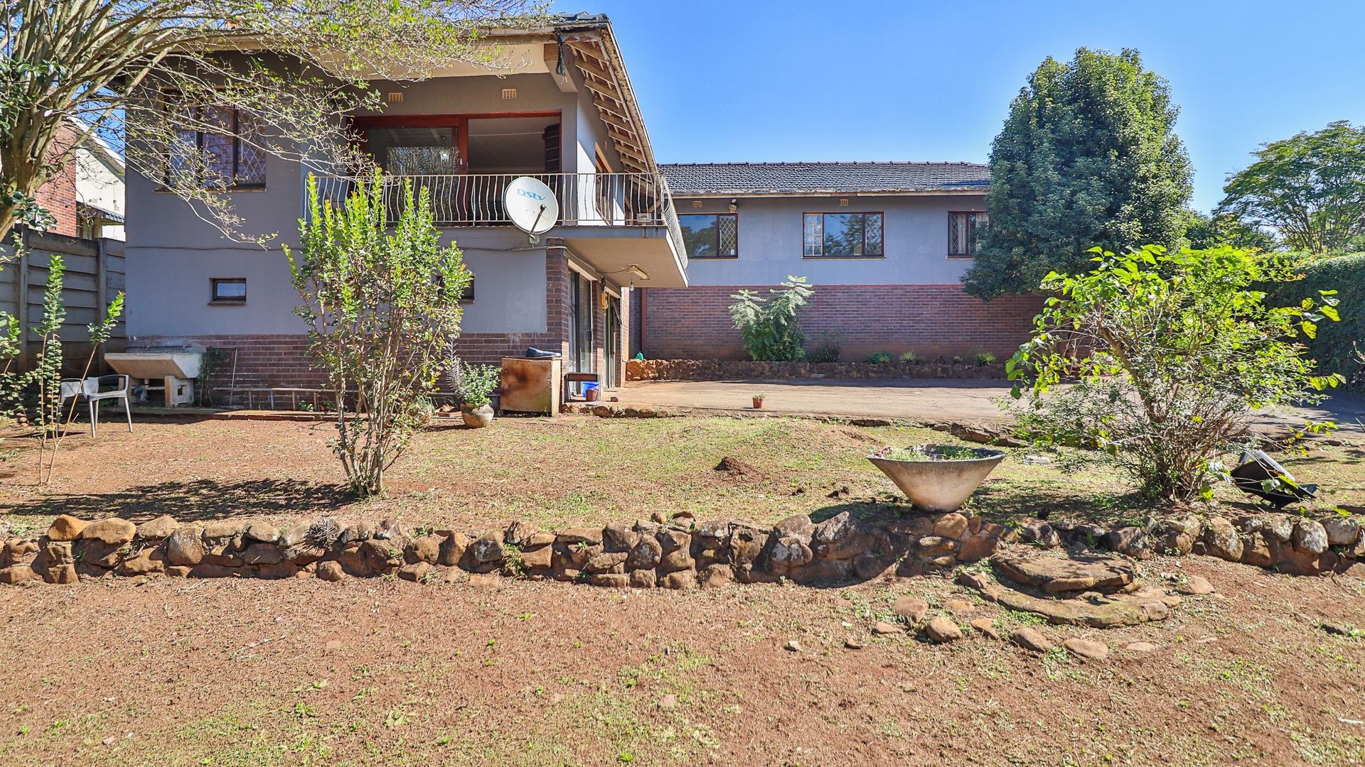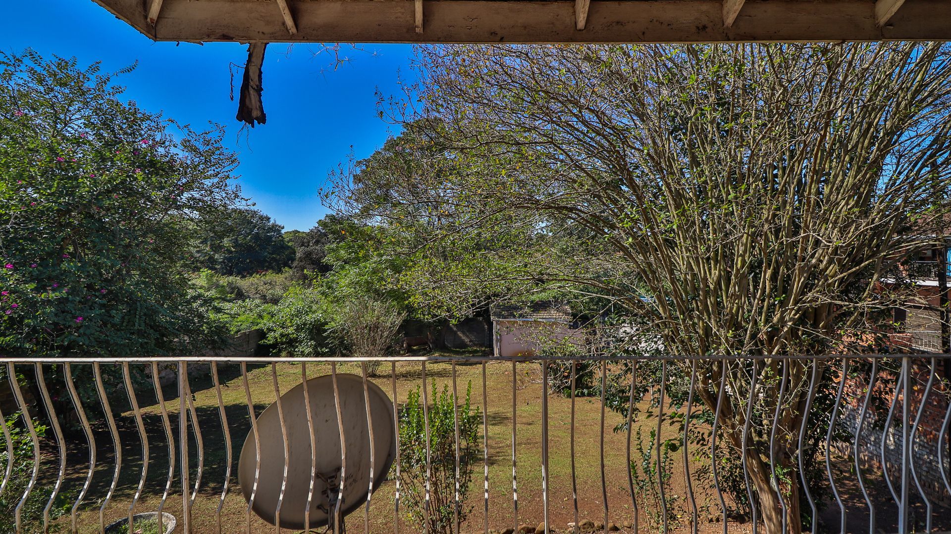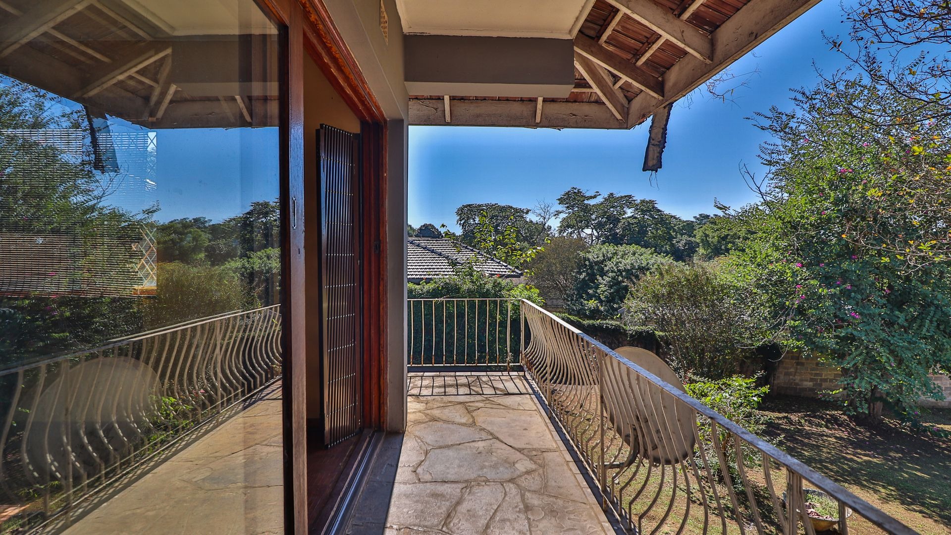 The upper level of the home features three spacious bedrooms, a study currently used as a fourth bedroom, a traditional kitchen and dining area, and a large lounge that opens onto a balcony overlooking the expansive garden.