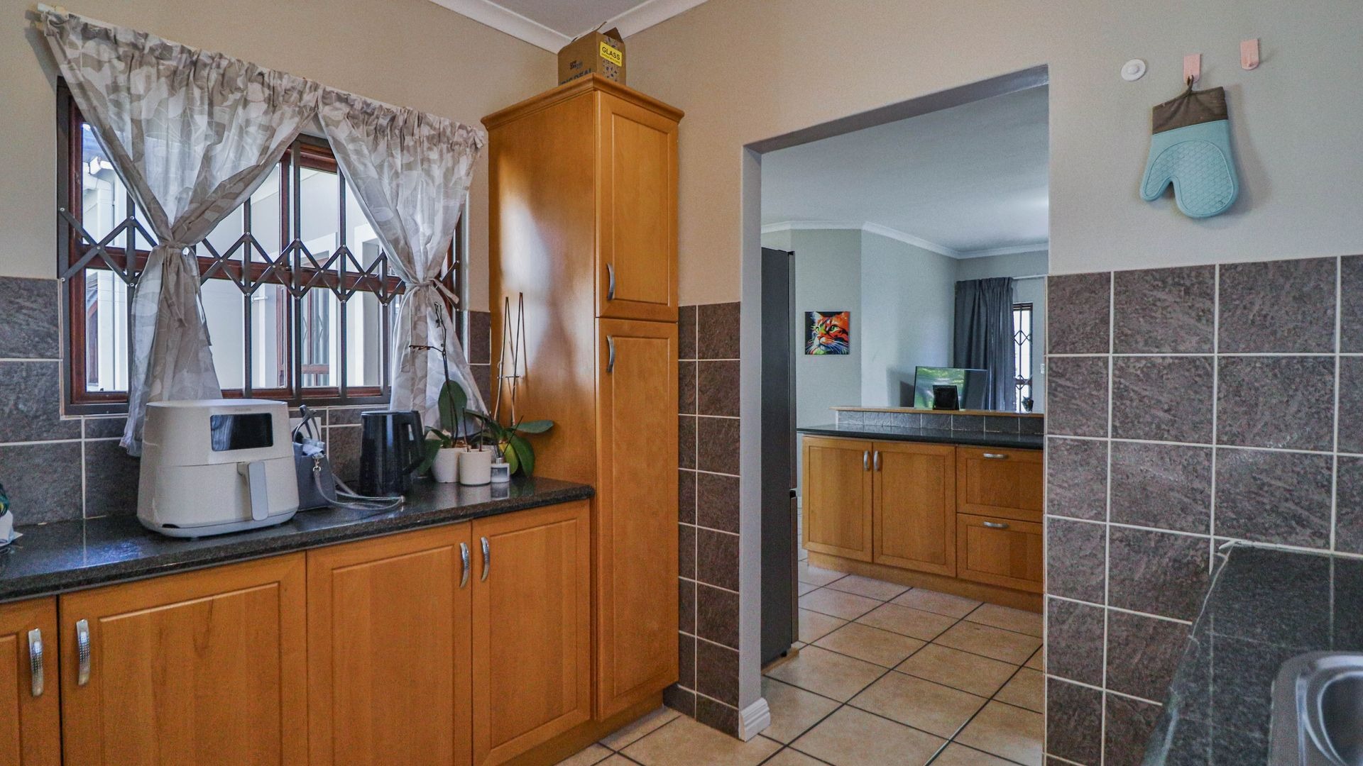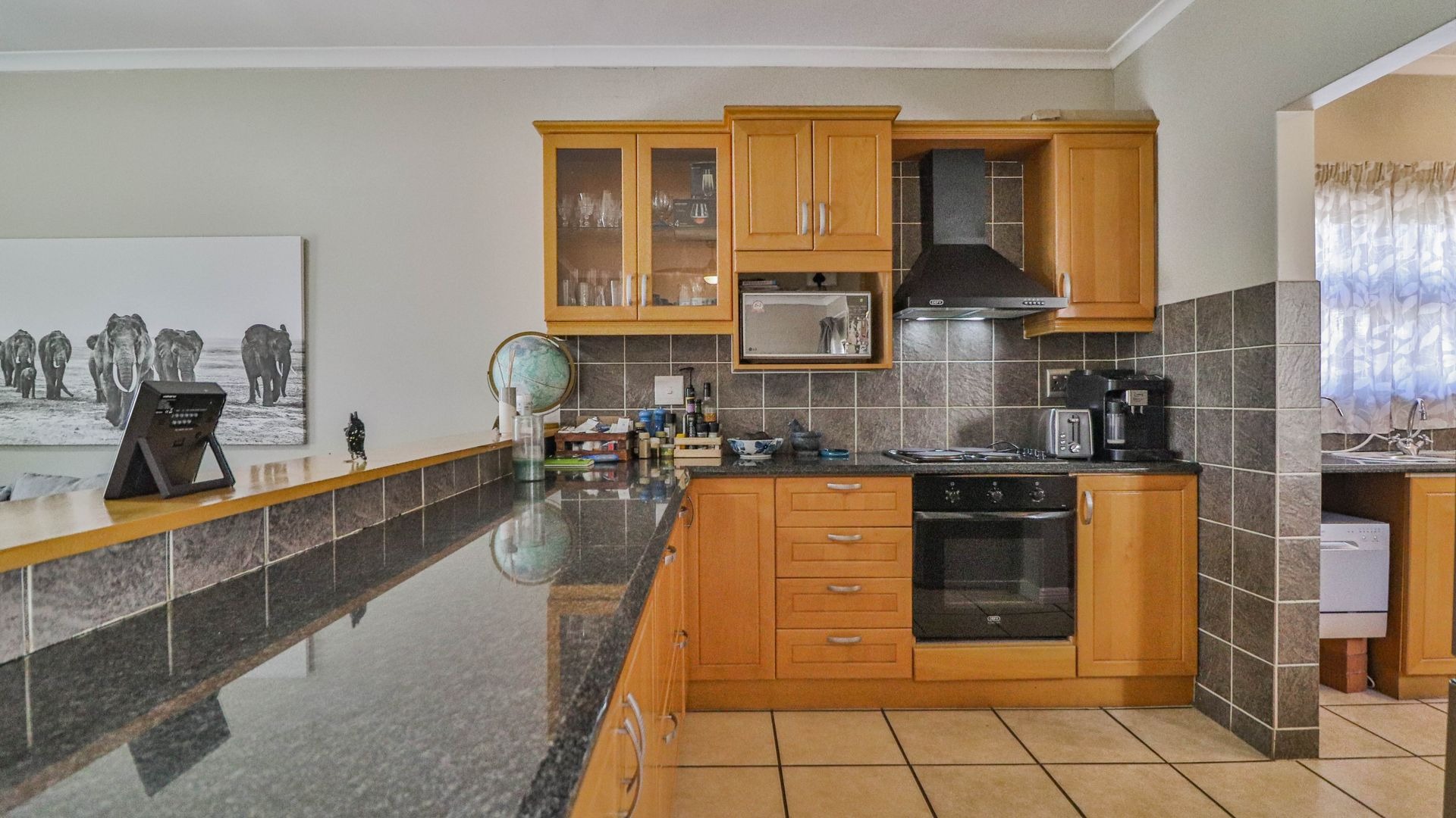 Tucked away in a quiet cul-de-sac with additional visitors’ parking, the home features a granite-top kitchen with electric hob, spacious tiled living areas, and a double garage with automated doors. The main bedroom includes a walk-in dressing area and en-suite bathroom, while the two additional bedrooms are serviced by a full family bathroom.