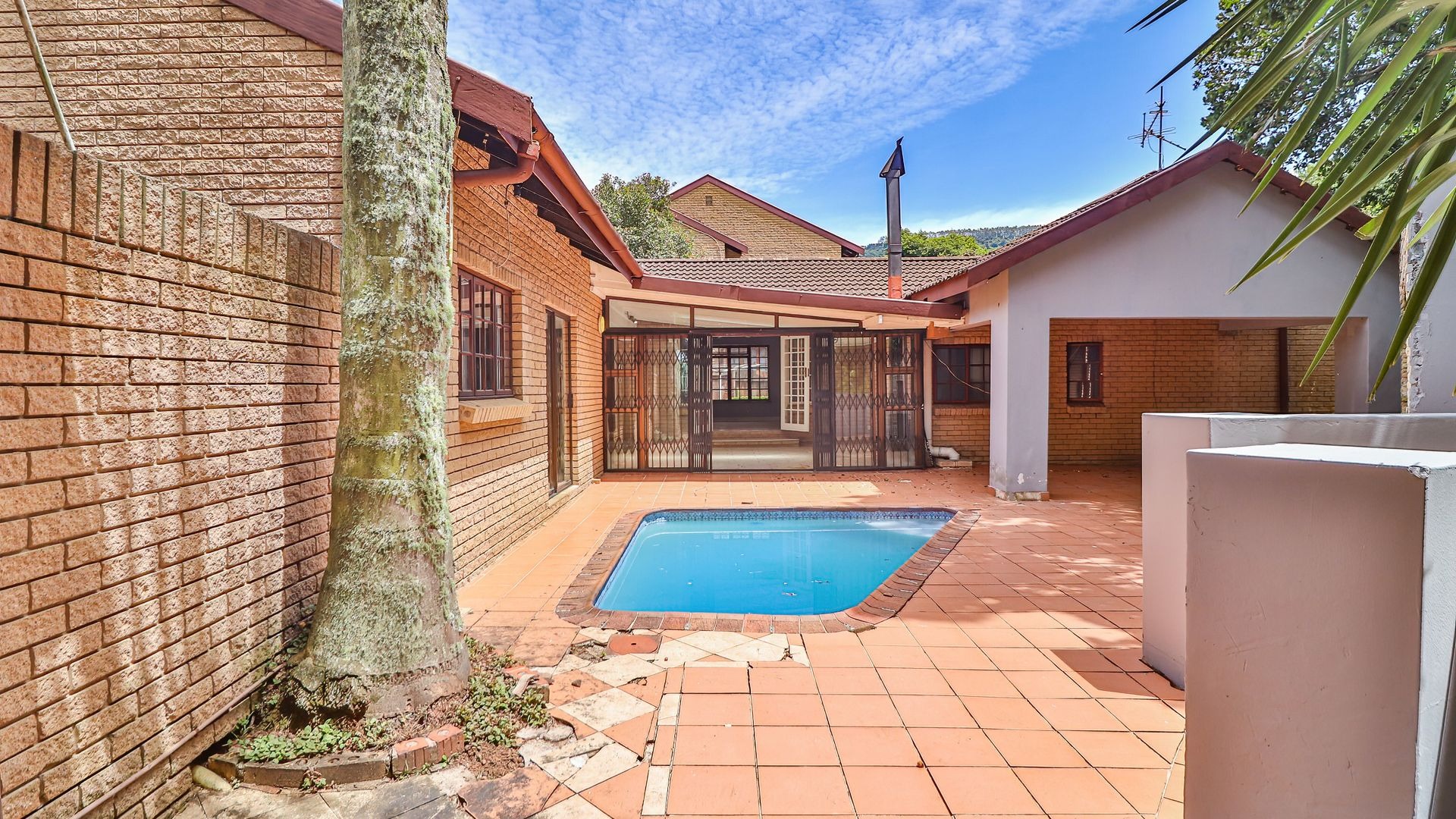 While multiple lounges and a dining room provide loads of space for entertaining indoors while sliding doors opens up to connect to the spacious entertainment area outside, complete with a splash pool and built-in braai, with the serene sounds of the stream that borders the garden, creating a truly magical setting.