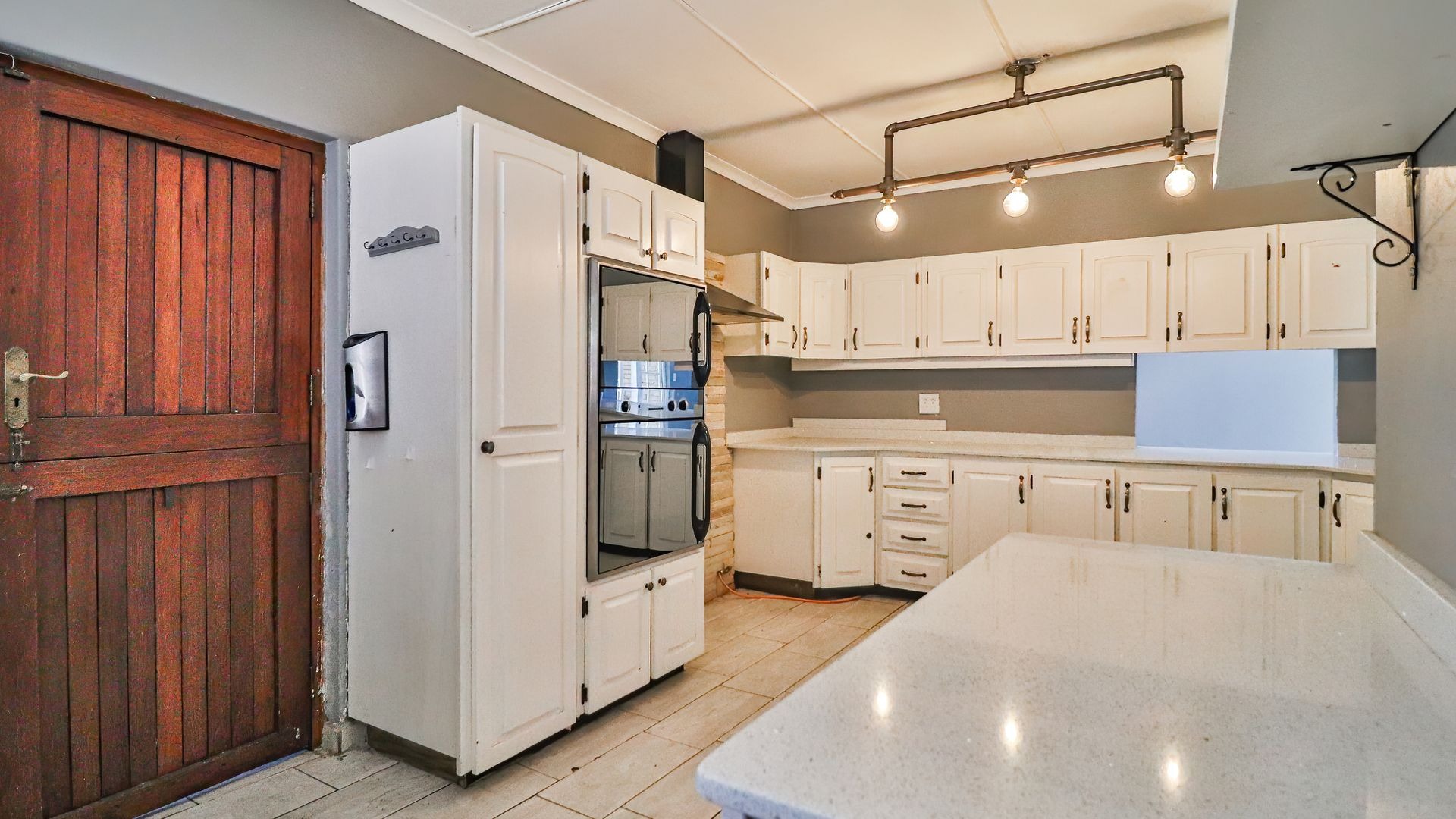 The kitchen is a chef's dream with Caesar stone counter-tops, an eye-level oven and a separate laundry/scullery.