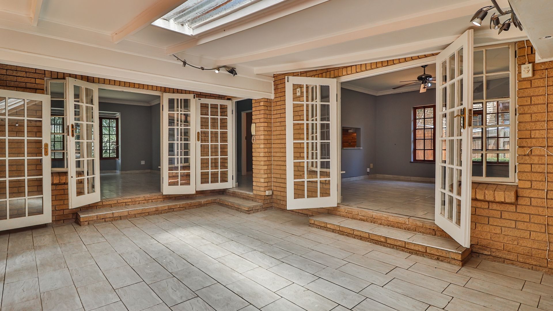 While multiple lounges and a dining room provide loads of space for entertaining indoors while sliding doors opens up to connect to the spacious entertainment area outside, complete with a splash pool and built-in braai, with the serene sounds of the stream that borders the garden, creating a truly magical setting.