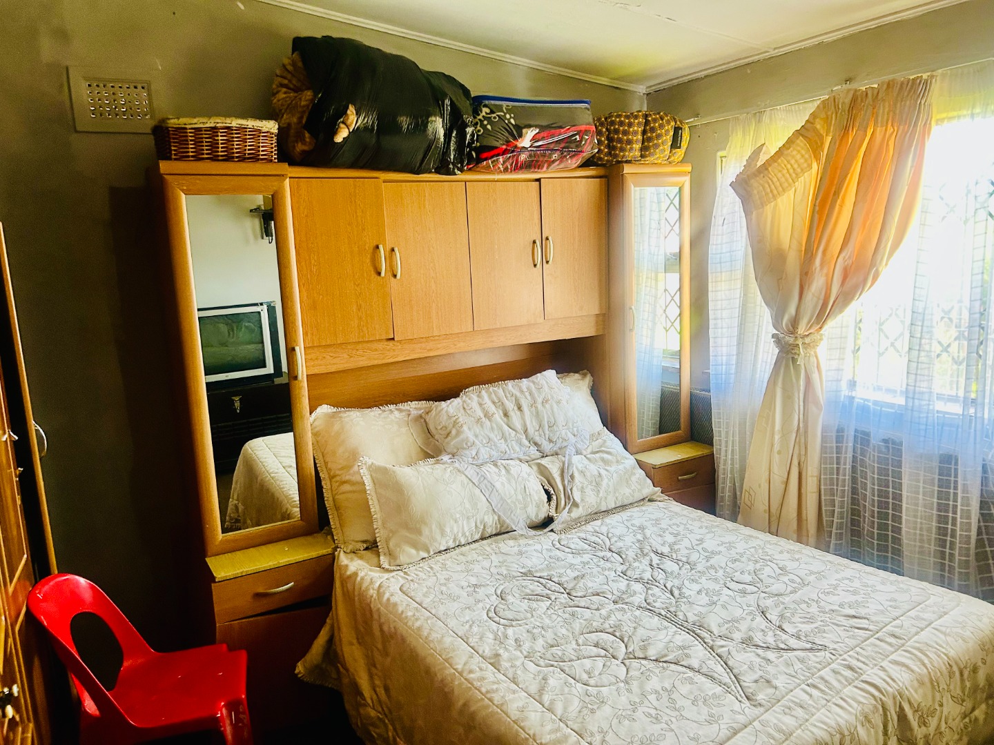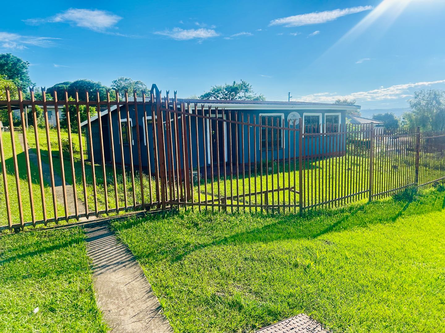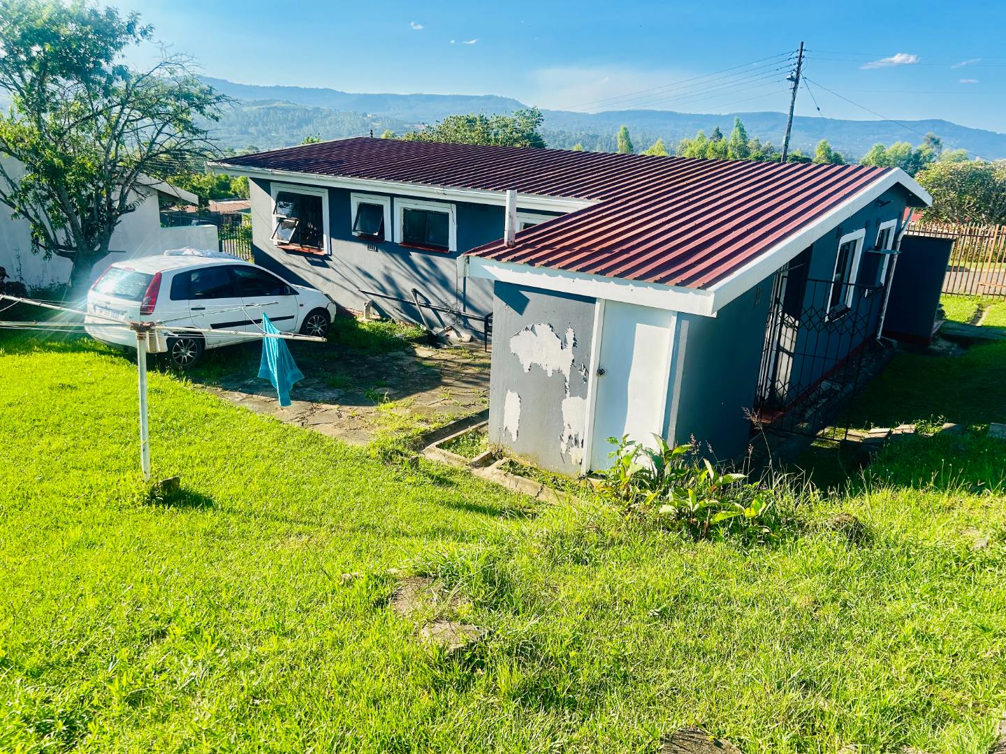The spacious yard is fully enclosed with palisade fencing, offering both privacy and security, and provides plenty of space for children or pets to enjoy. Parking is available for up to three vehicles, and the home is set against a pleasant mountain backdrop.