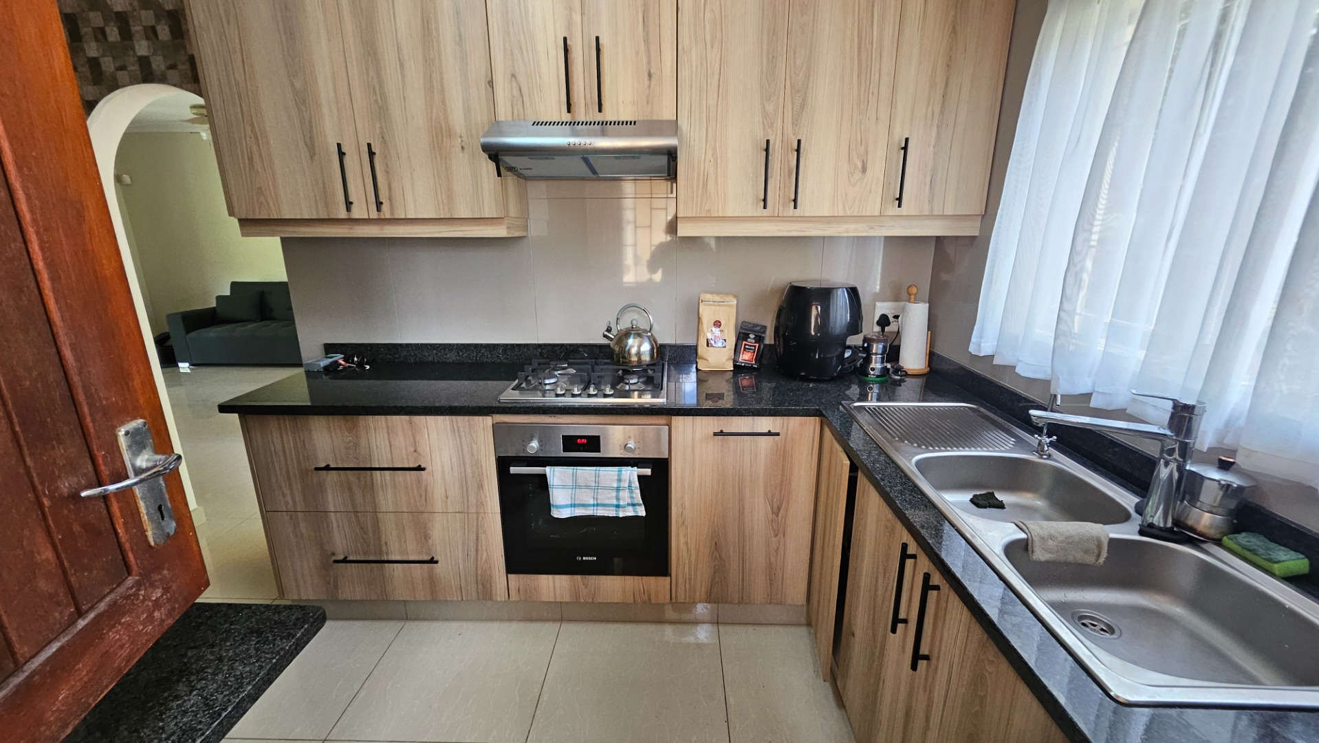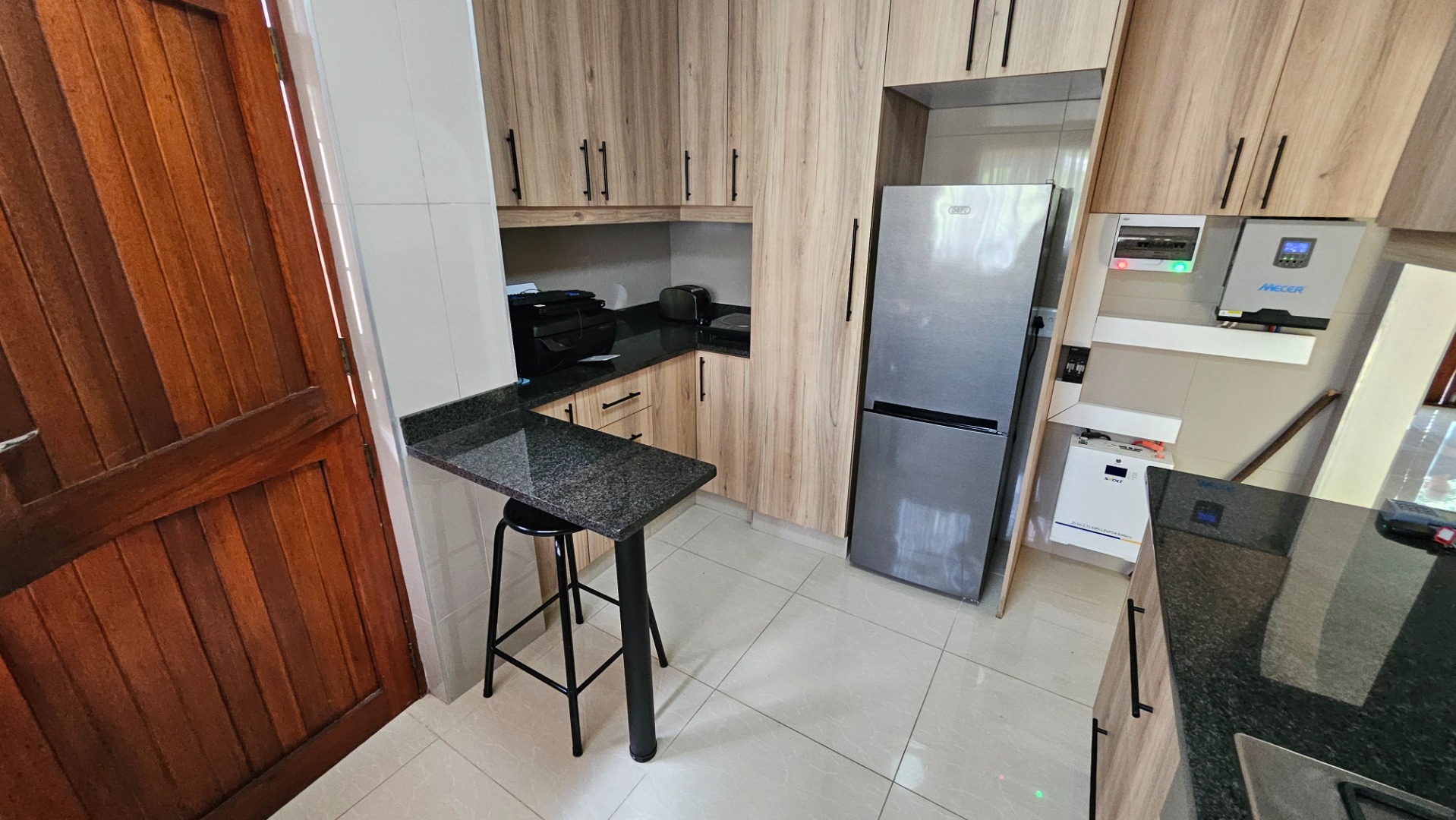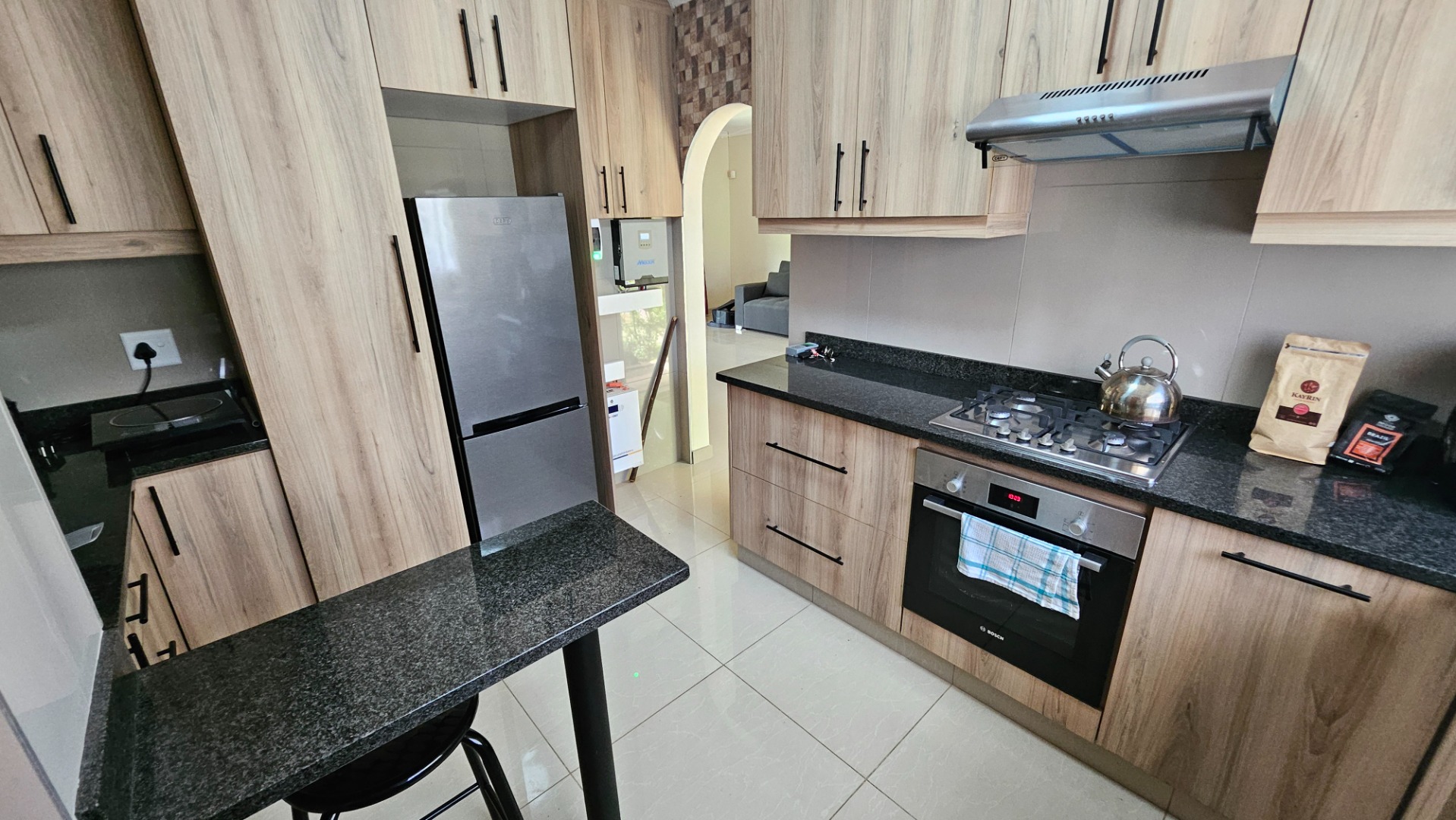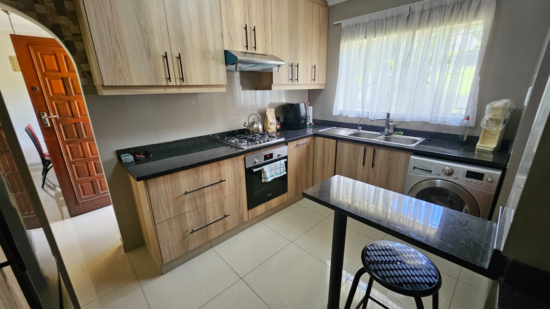 Porcelain tiles run throughout, giving the home a fresh, modern feel, and the new kitchen is a real highlight — well planned with plenty of cupboards, a gas hob, electric oven, breakfast nook, and a water purifier. An inverter keeps the whole home running during outages, adding an extra layer of convenience.