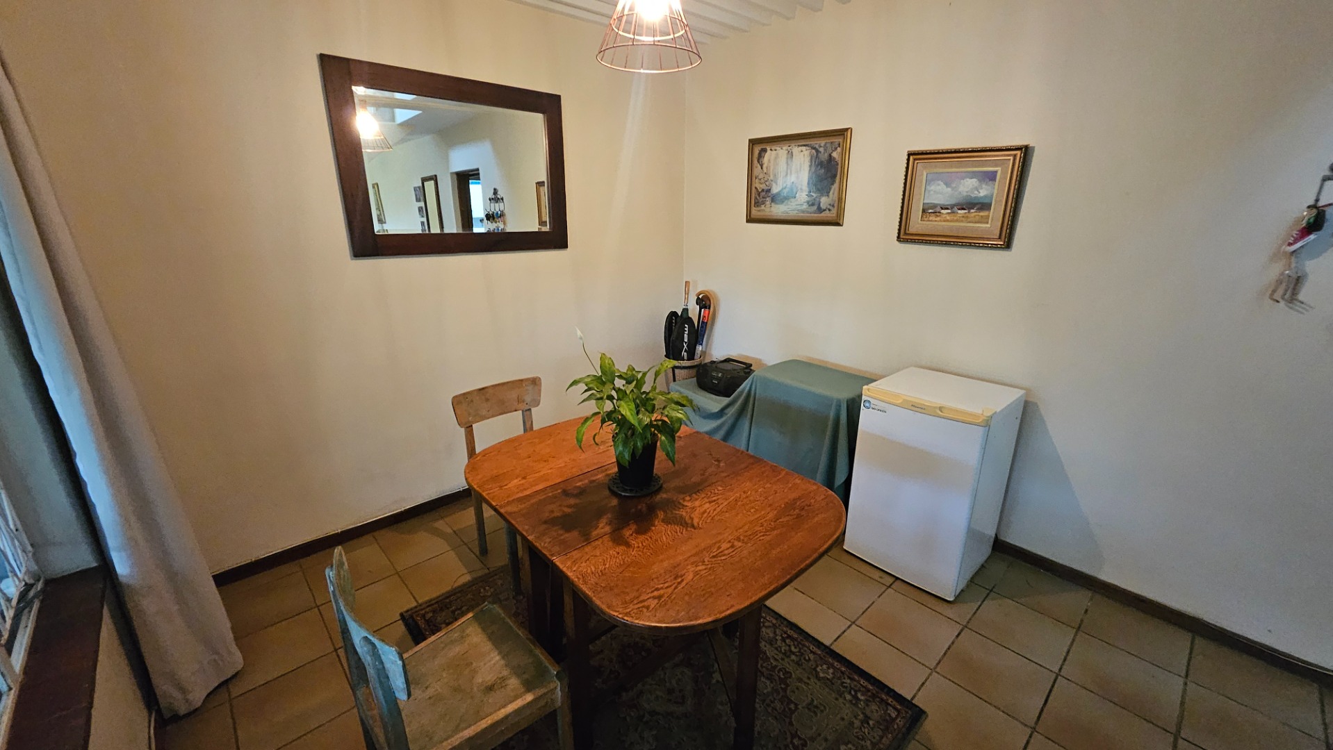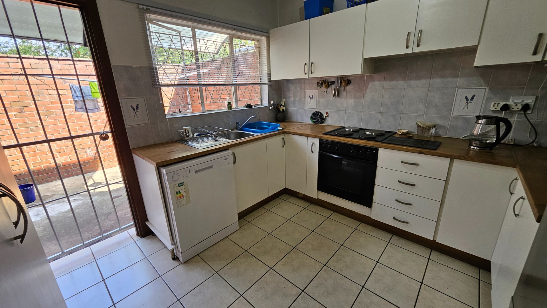 The lower level features the living space, with a comfortable lounge and a dining room that flow seamlessly onto a spacious entertainment deck and a well-established, fully enclosed garden, perfect for relaxed outdoor living. The kitchen is fully fitted with ample cupboards, a built-in oven and hob, and plumbing for a dishwasher or washing machine. It also opens to a secure courtyard with a washing line. A guest toilet and basin are conveniently located downstairs.