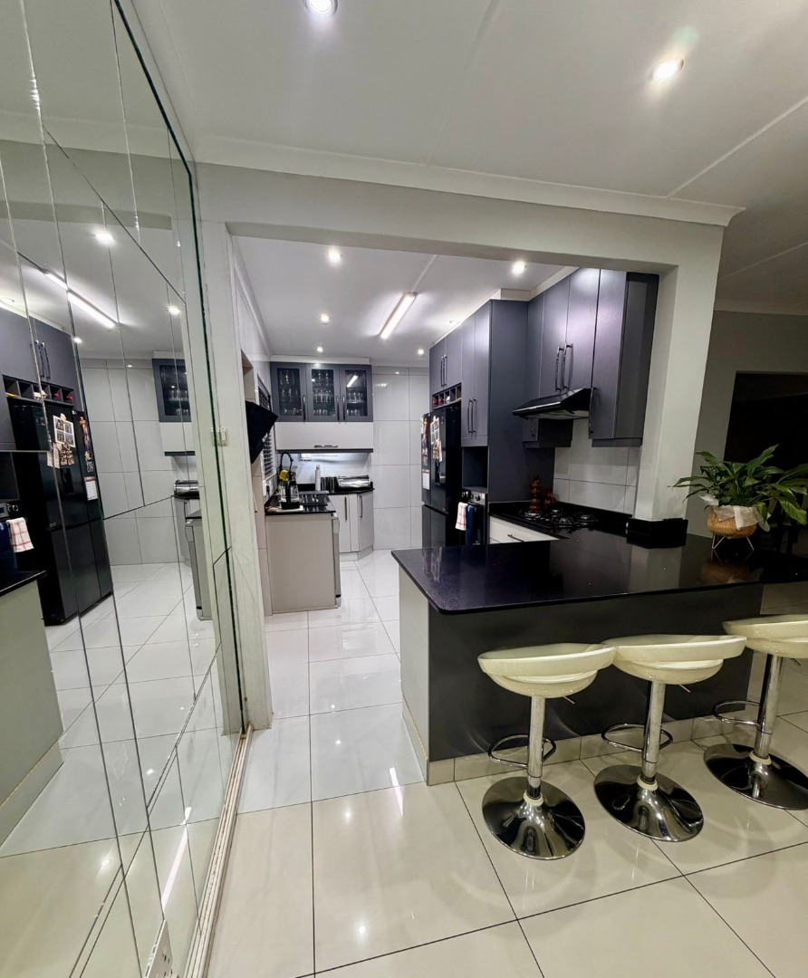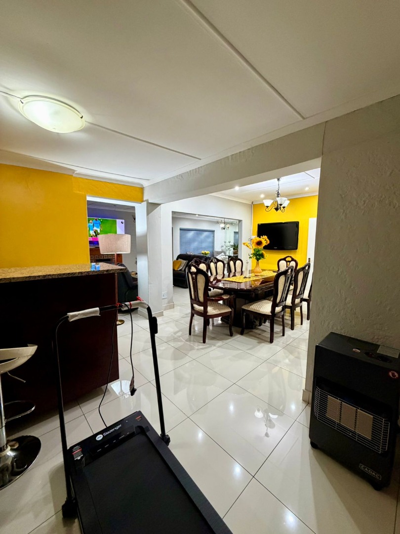 The layout is ideal for effortless indoor-outdoor living, with direct access to the backyard and pool area from both the kitchen and the bar area’s patio doors.