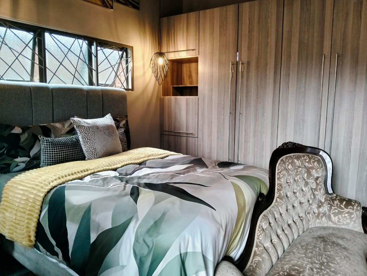 Third house: A bachelor unit complete with an en-suite bathroom, built-in wardrobe, and a compact modern kitchen with built-in finishes.