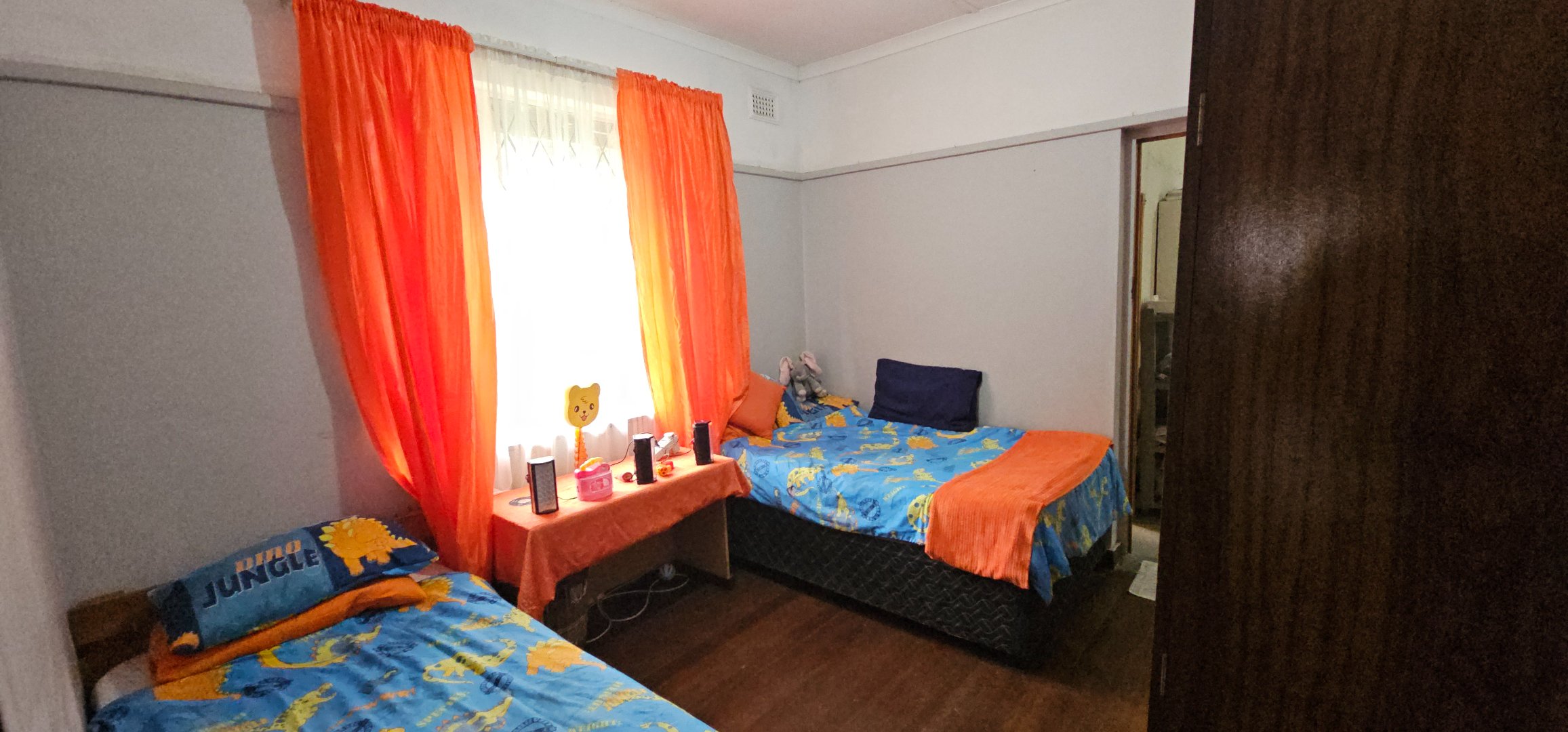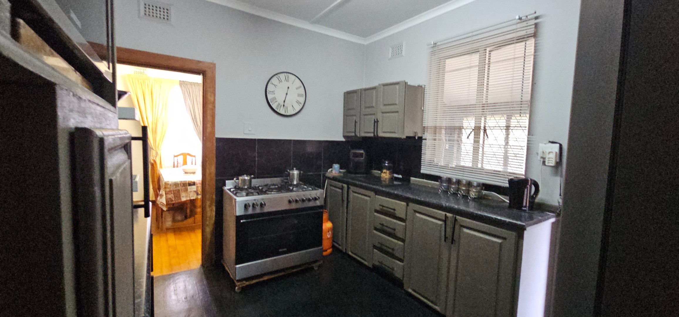 Discover this inviting four-bedroom, two-bathroom family home nestled in the established suburb of Lester Park. Boasting a generous 994m2, this property offers ample space for comfortable living and outdoor enjoyment. The exterior presents a well-maintained lawn and a practical covered parking area, complemented by an additional outbuilding that could serve as a garage or extra storage. Security features like gates and burglar bars are visible, providing peace of mind.