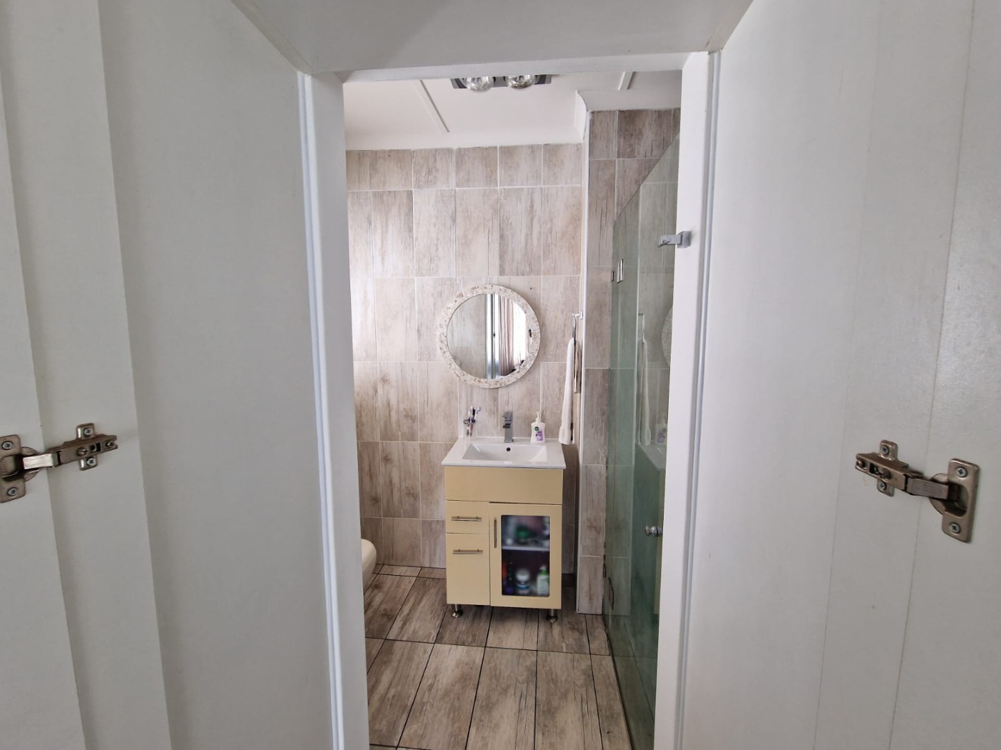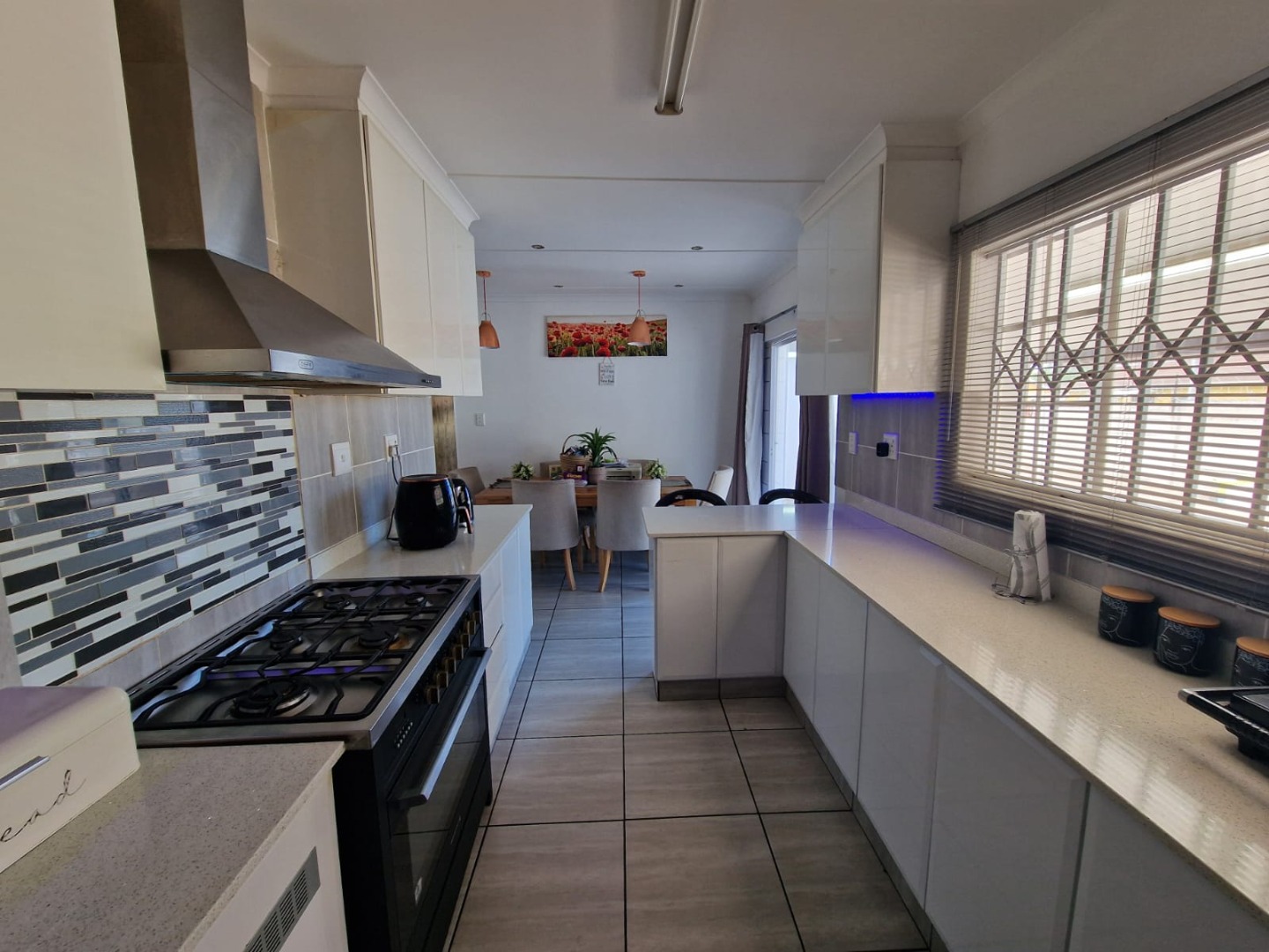 This immaculate, air-conditioned, and spacious property features three well-sized bedrooms with built-in cupboards, serviced by two modern bathrooms. The stylish kitchen is fitted with a quality gas stove, ideal for modern family living.